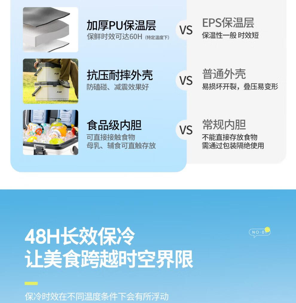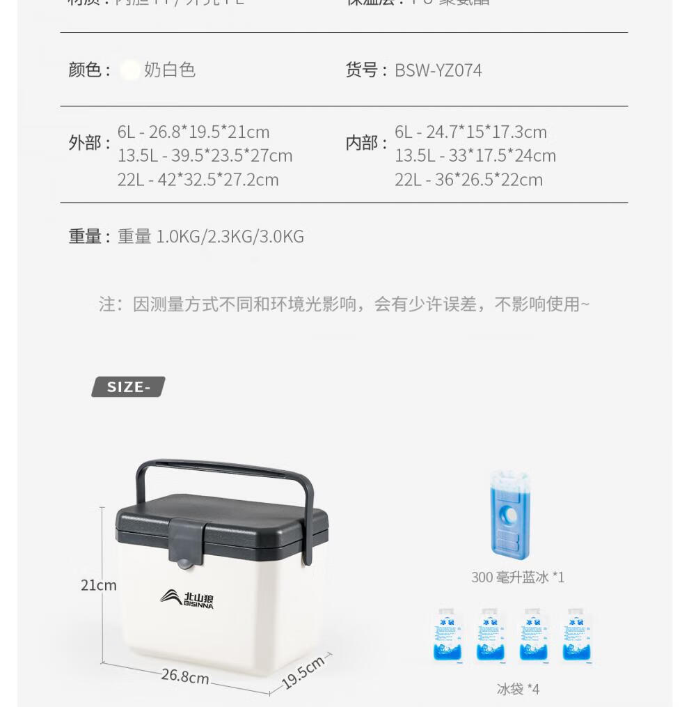 Beishan Lang Insulated Box Food Special Commercial Stall Refrigerator Outdoor Camping Car Refrigerator Fishing Fresh Box 13.5L_White Gray (PU Insulation Layer) Long-lasting Cold Keeping 24 Hours 1