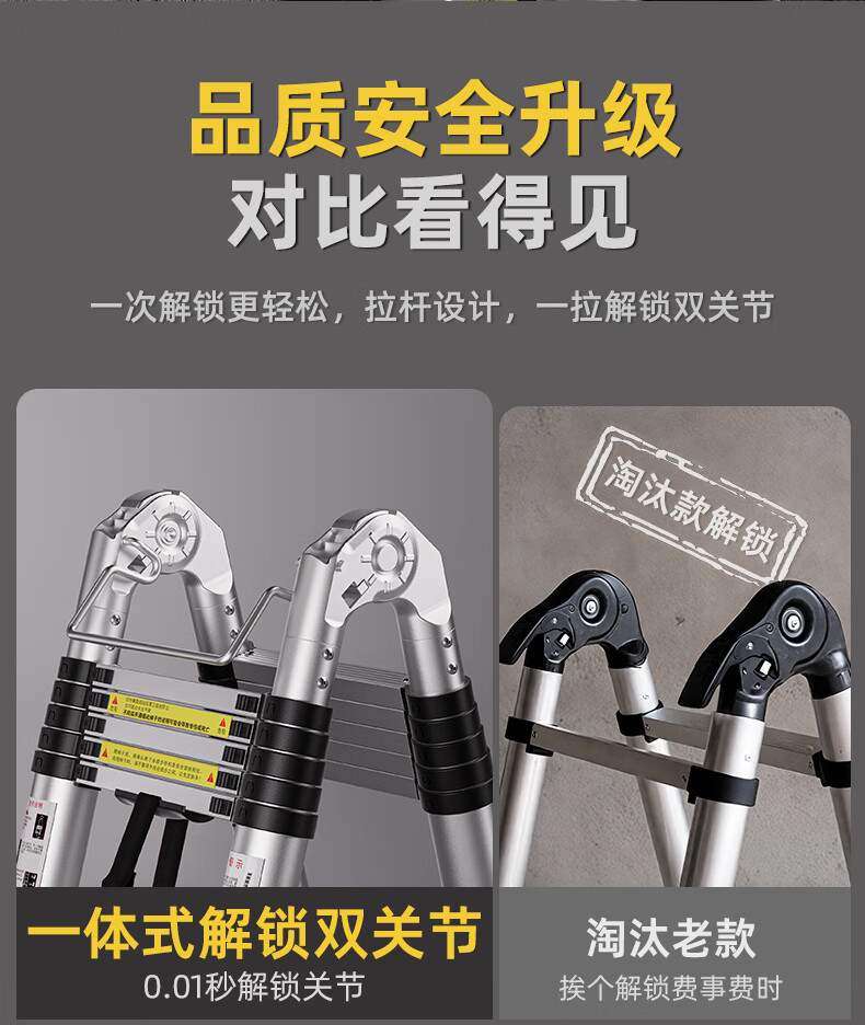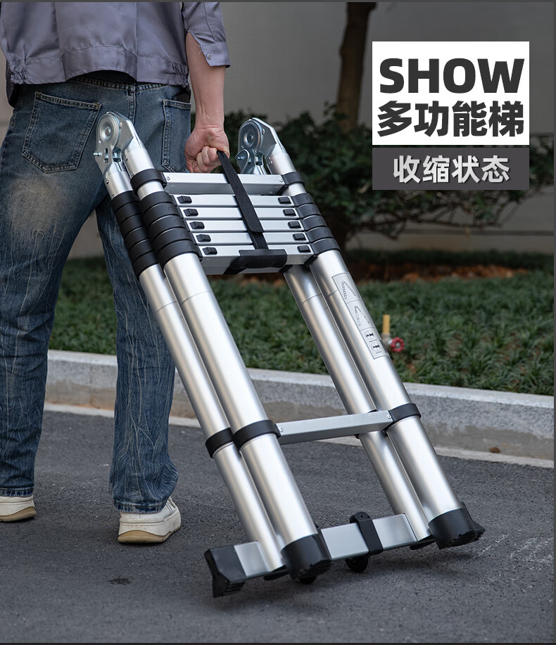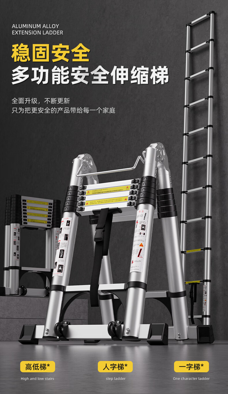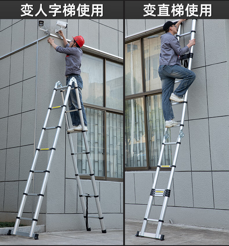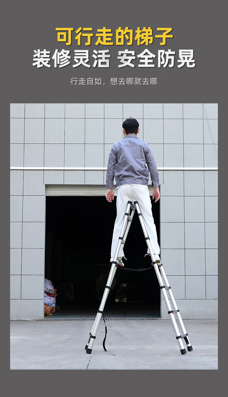 Walking herringbone ladder telescopic ladder folding ladder home attic aluminum alloy telescopic ladder engineering lifting industrial ladder aluminum alloy herringbone ladder 3.8 meters extra thick anti-sway