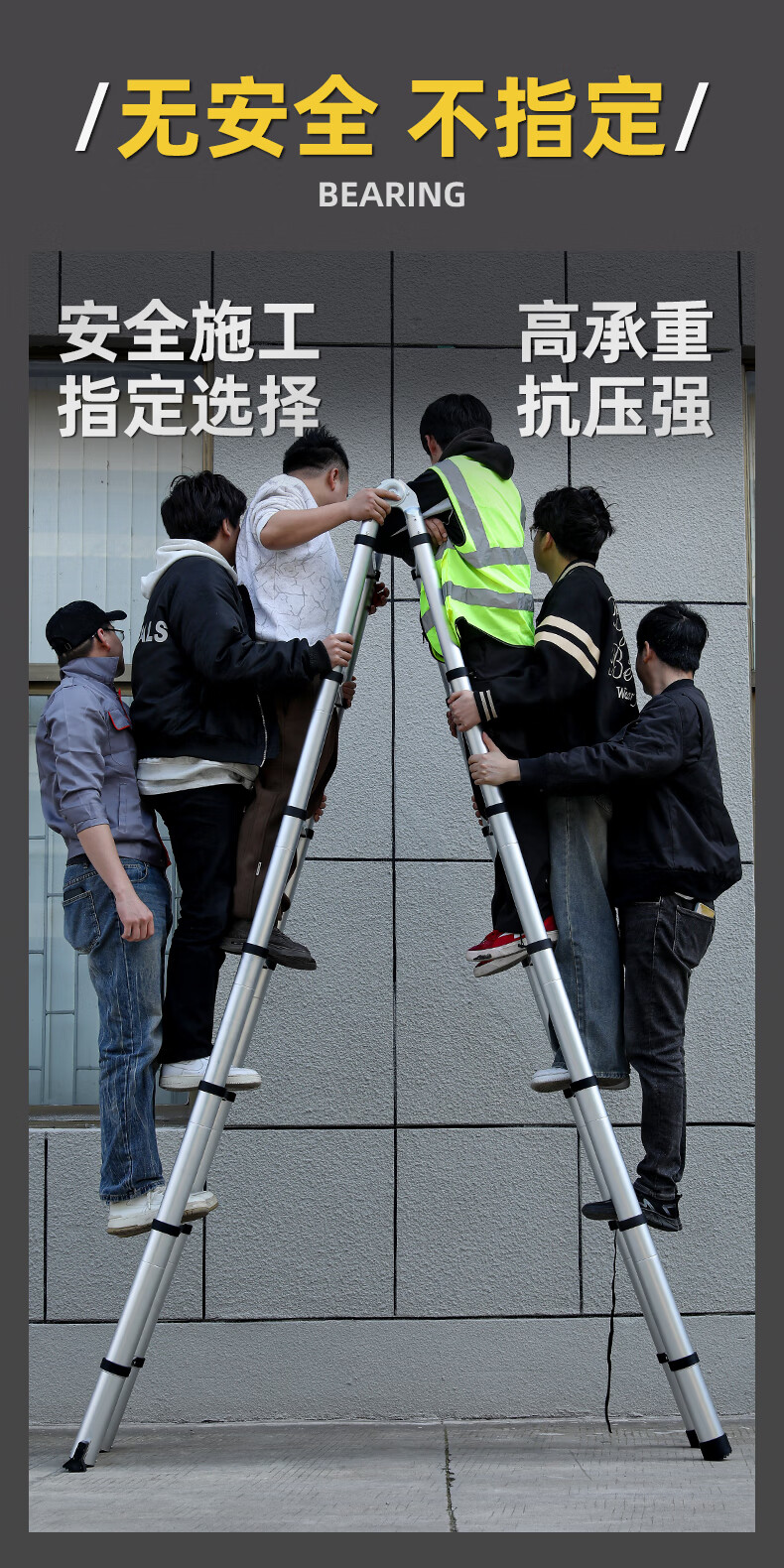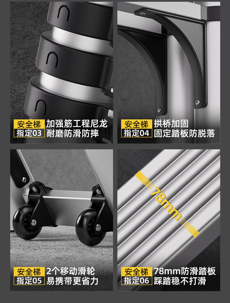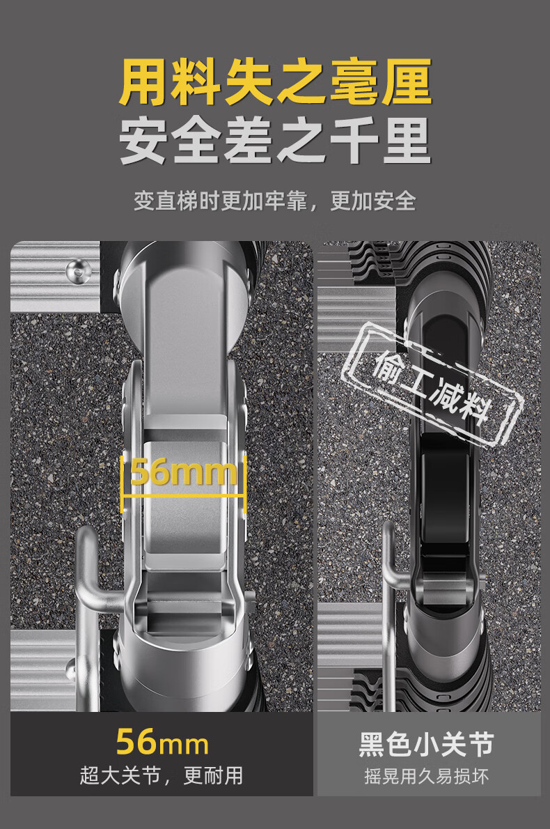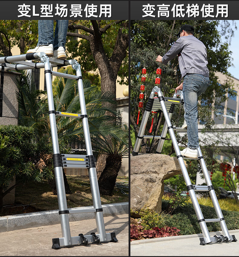 Walking herringbone ladder telescopic ladder folding ladder home attic aluminum alloy telescopic ladder engineering lifting industrial ladder aluminum alloy herringbone ladder 3.8 meters extra thick anti-sway