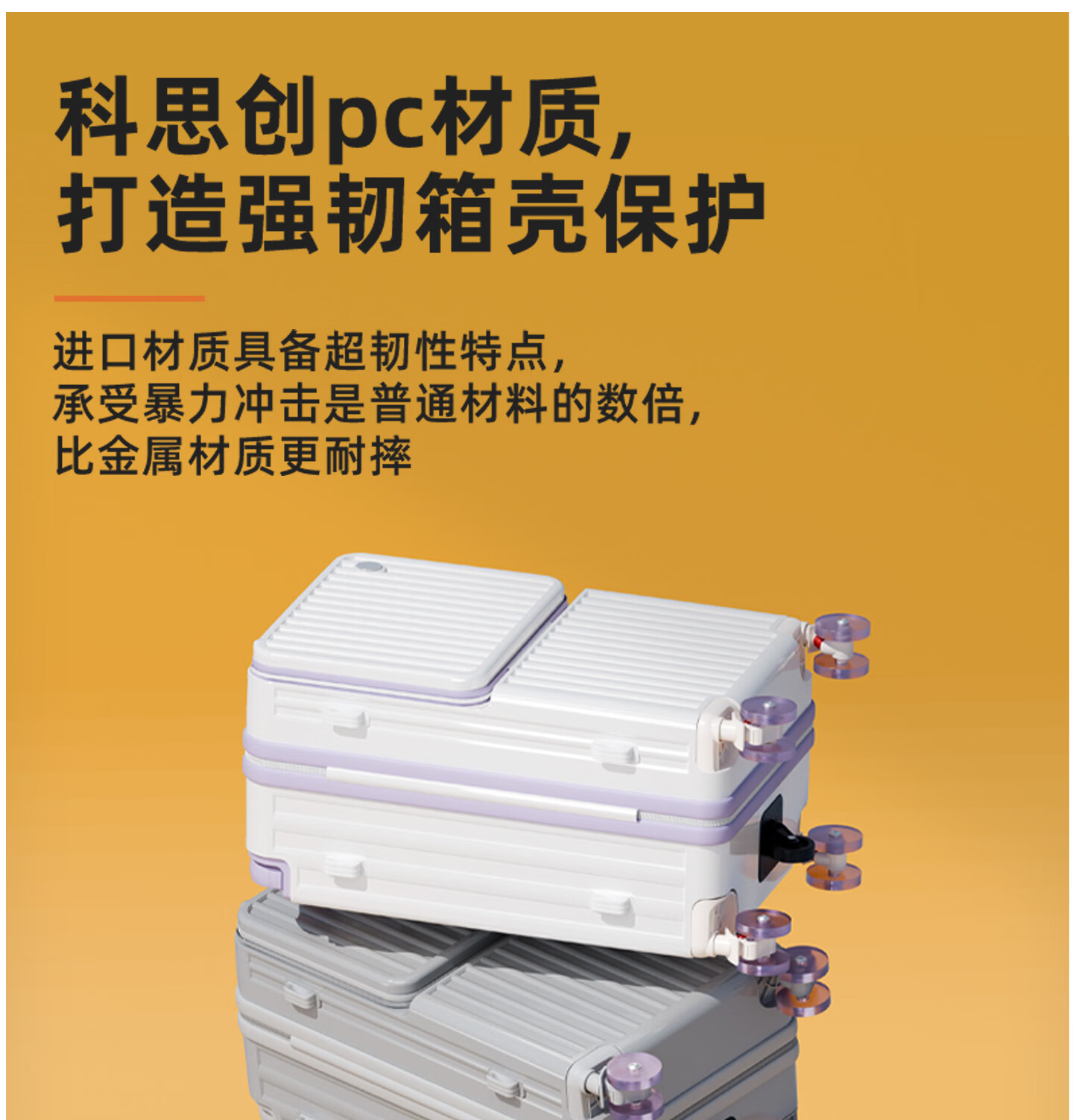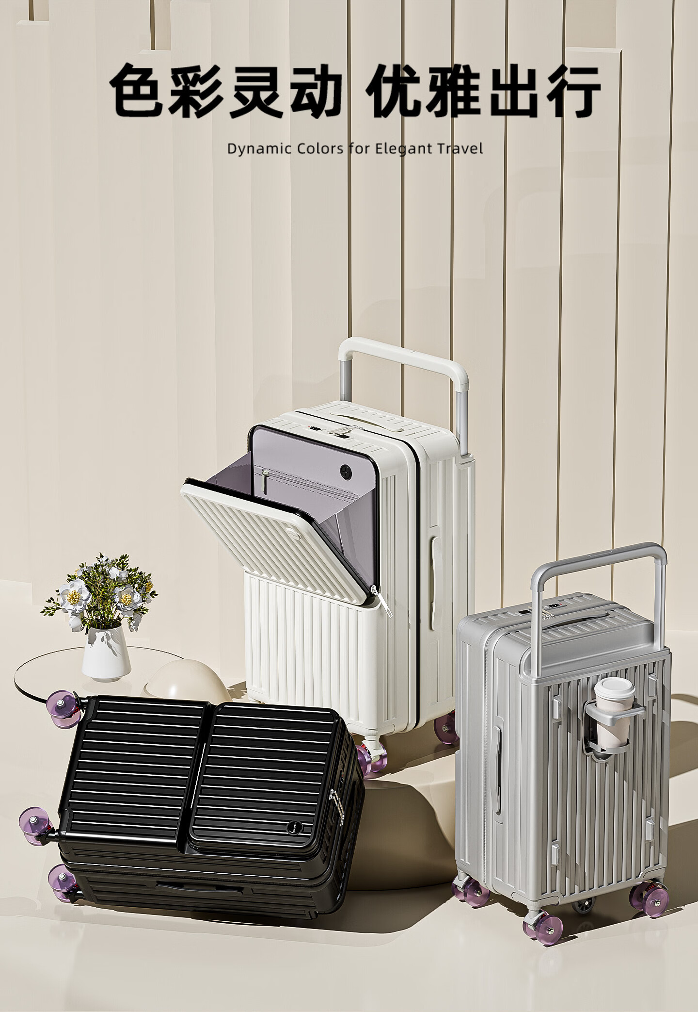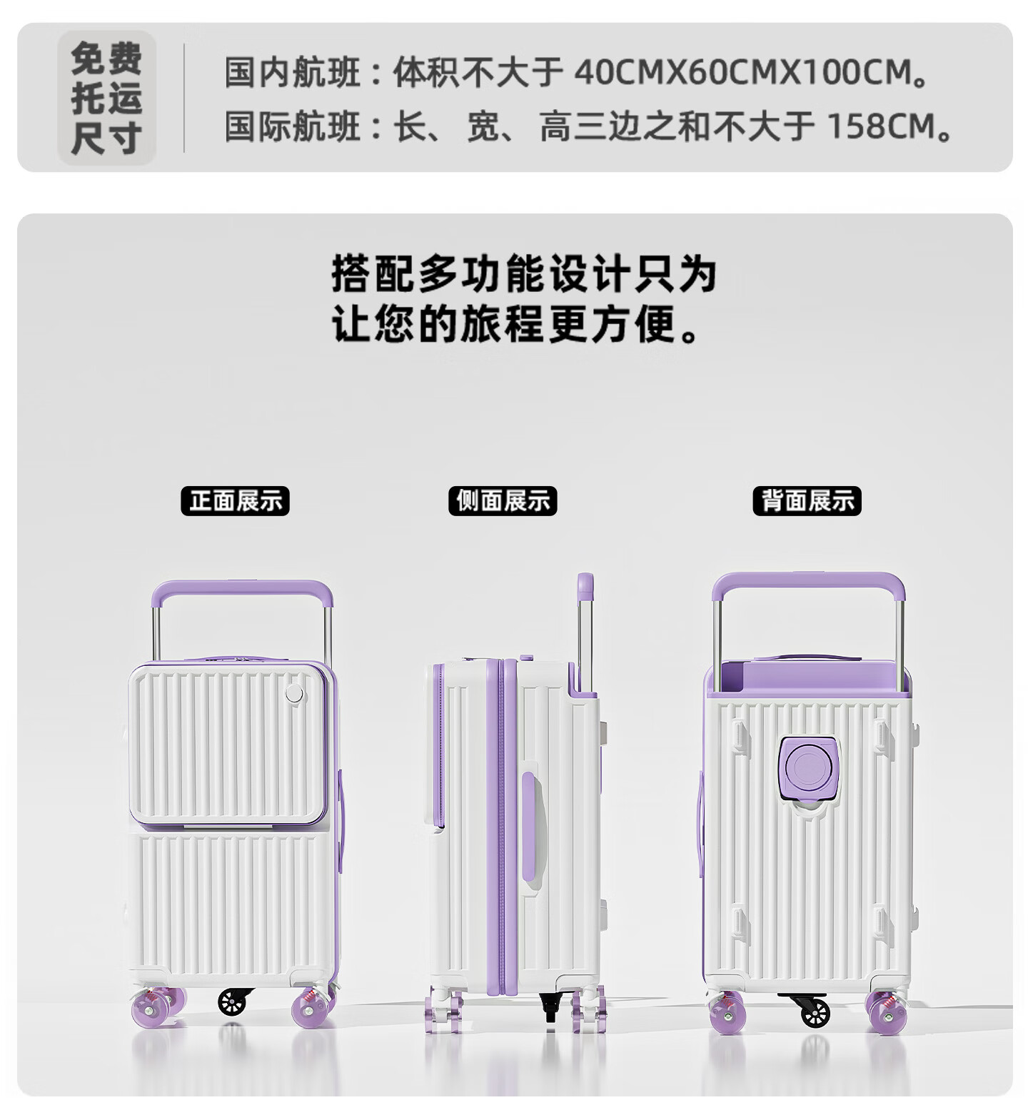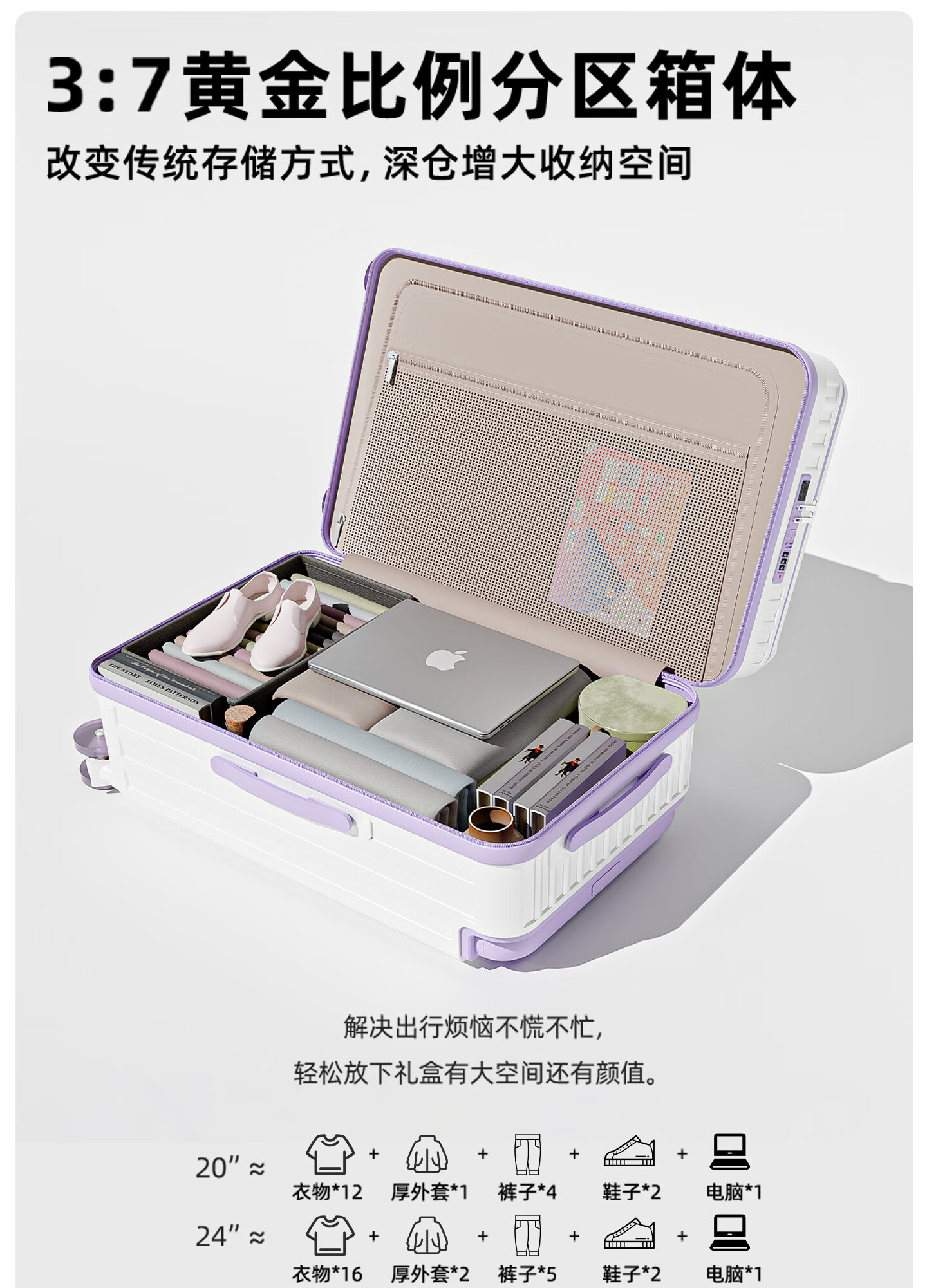 ZOLODON front-opening large-capacity skate wheel suitcase 2025 new 20-inch boarding case password box suitcase trolley case foggy purple white silent skate wheel + thickened PC material + computer can be placed 20 inches wide trolley + explosion-proof zipper + shock-absorbing four-wheel universal wheel