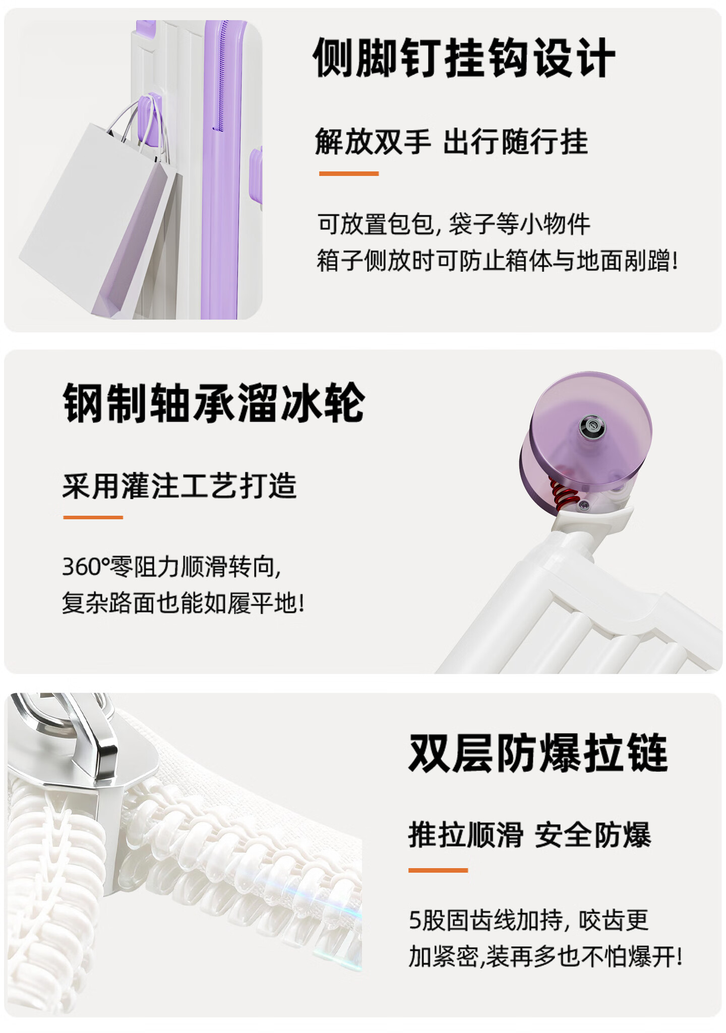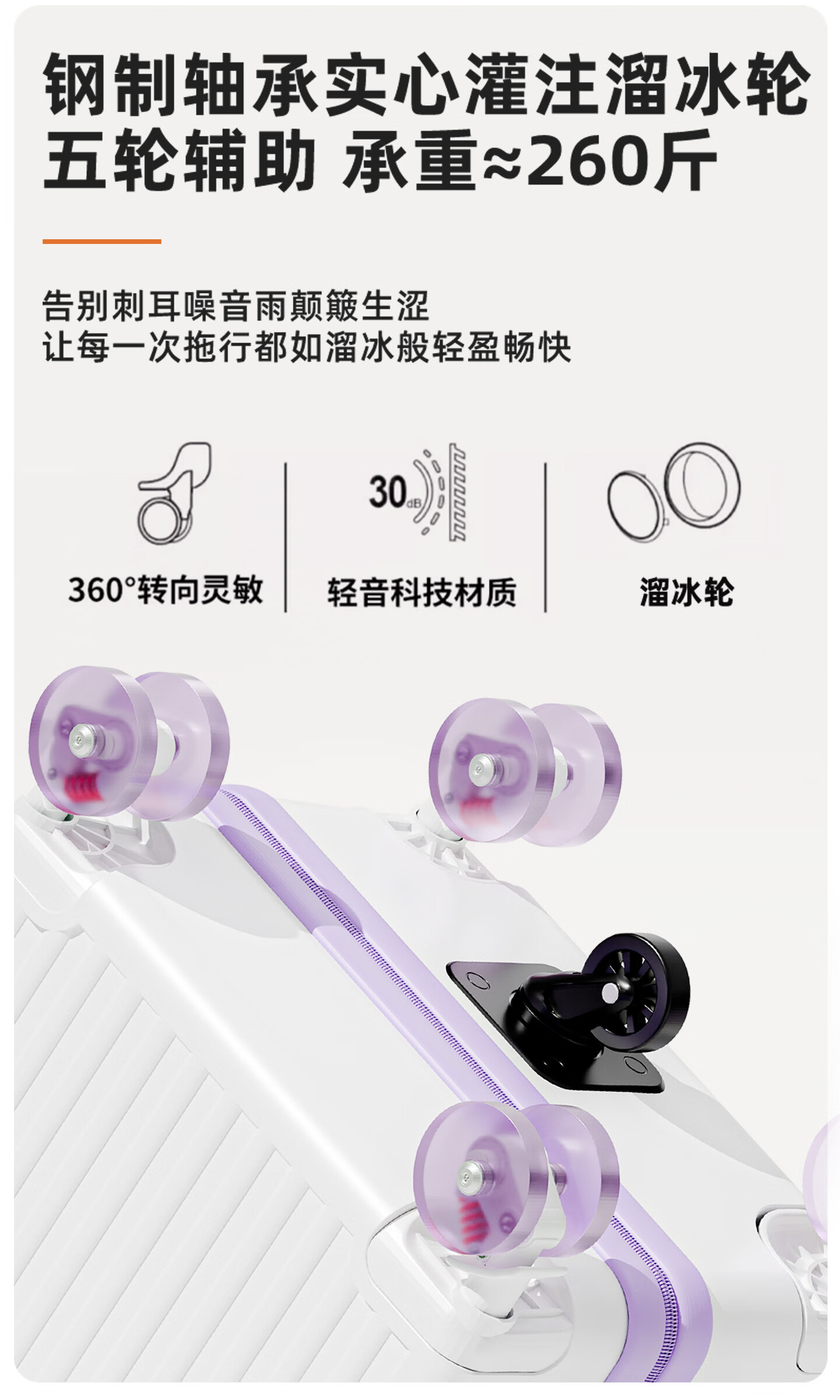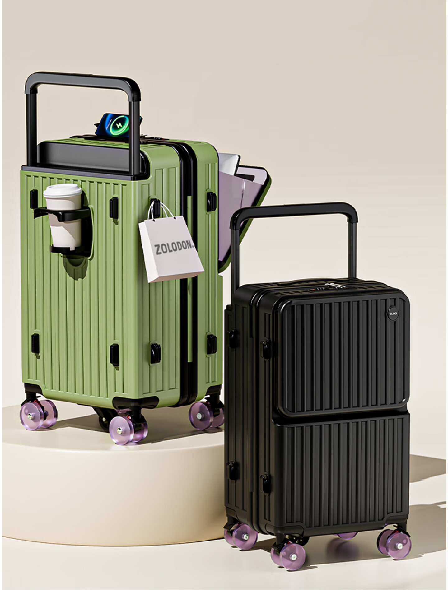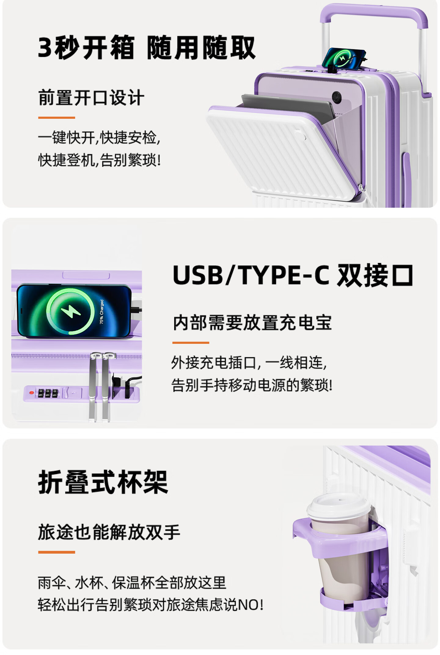 ZOLODON front-opening large-capacity skate wheel suitcase 2025 new 20-inch boarding case password box suitcase trolley case foggy purple white silent skate wheel + thickened PC material + computer can be placed 20 inches wide trolley + explosion-proof zipper + shock-absorbing four-wheel universal wheel