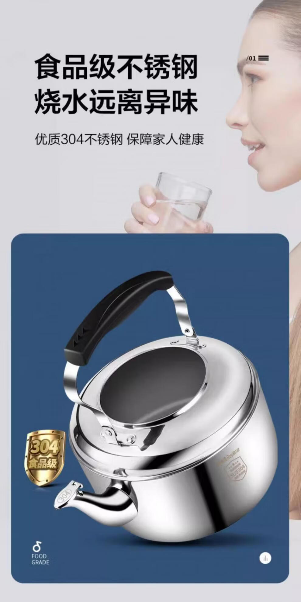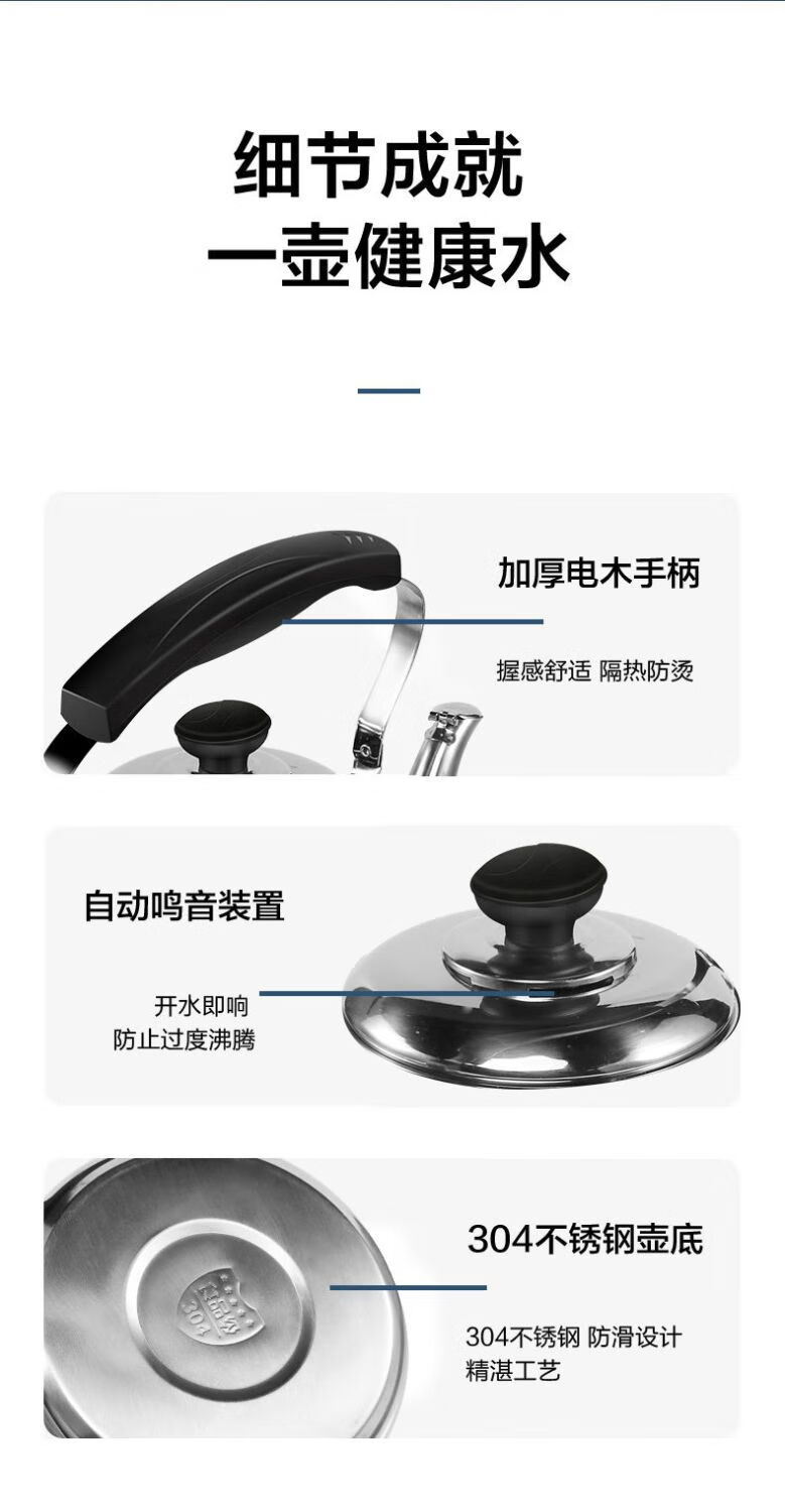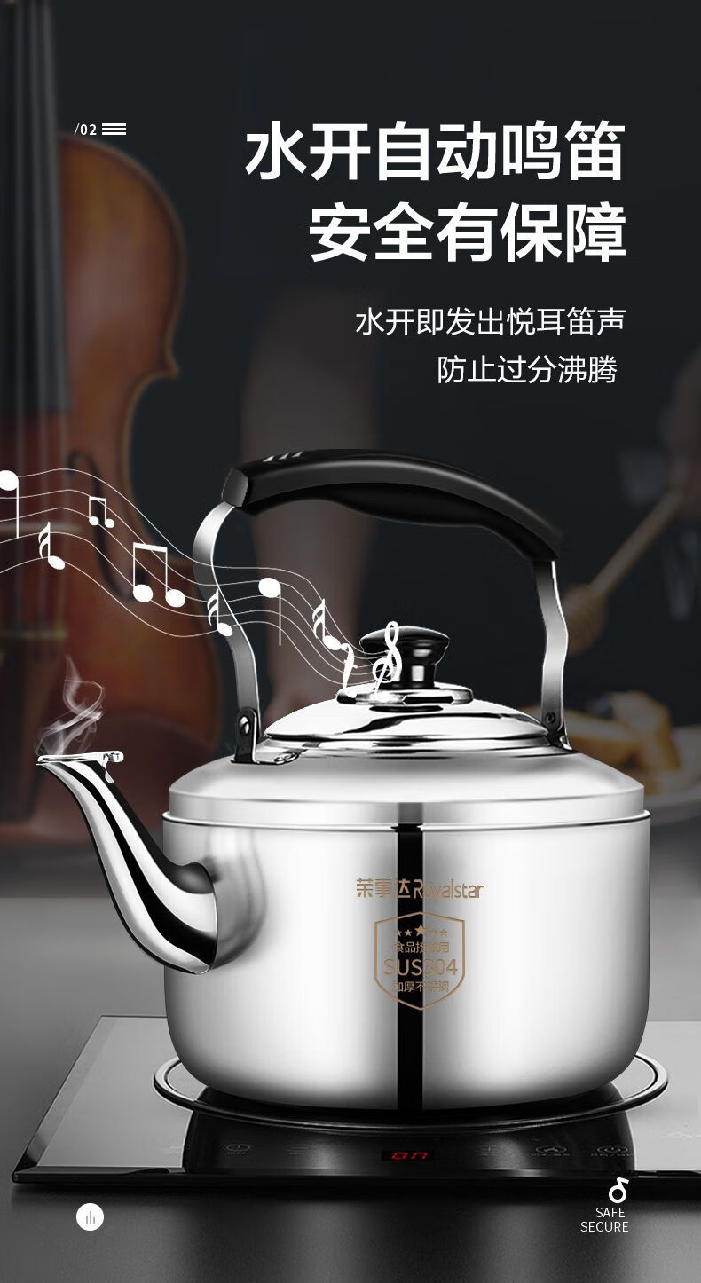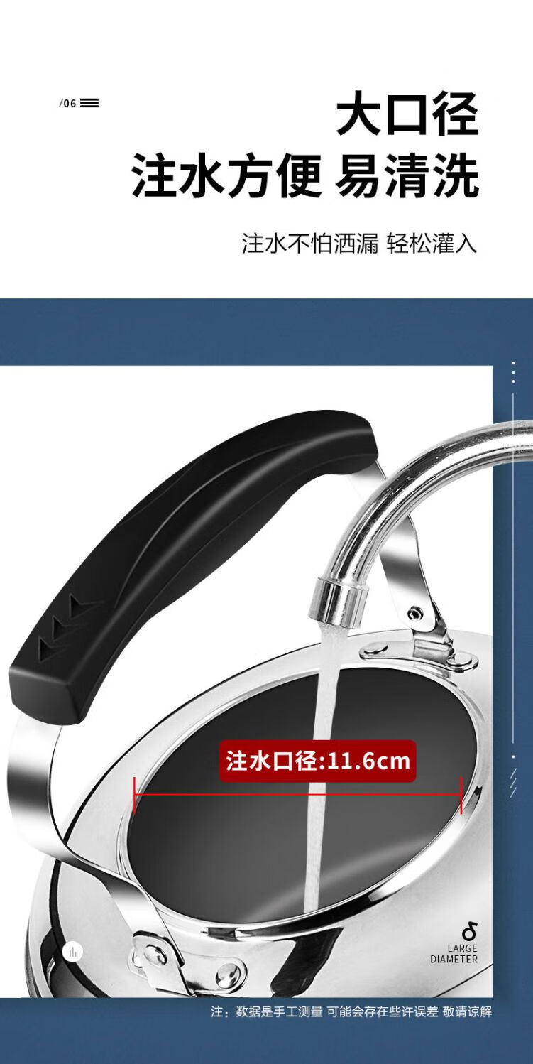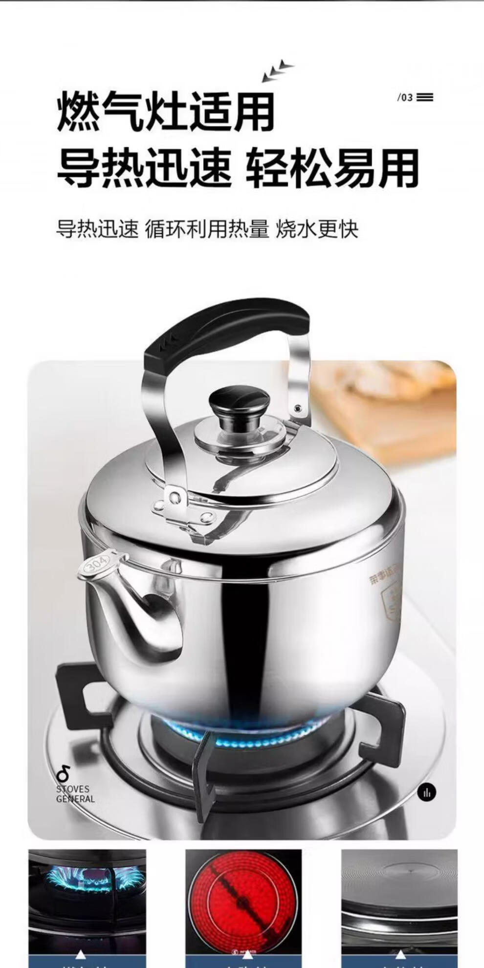 DL Fat Donglai same style gas kettle open flame household firewood 304 stainless steel large capacity induction cooker whistle 304 stainless steel whistle upgraded extra thick version 5.5L 4L (inclusive)-6L (inclusive)