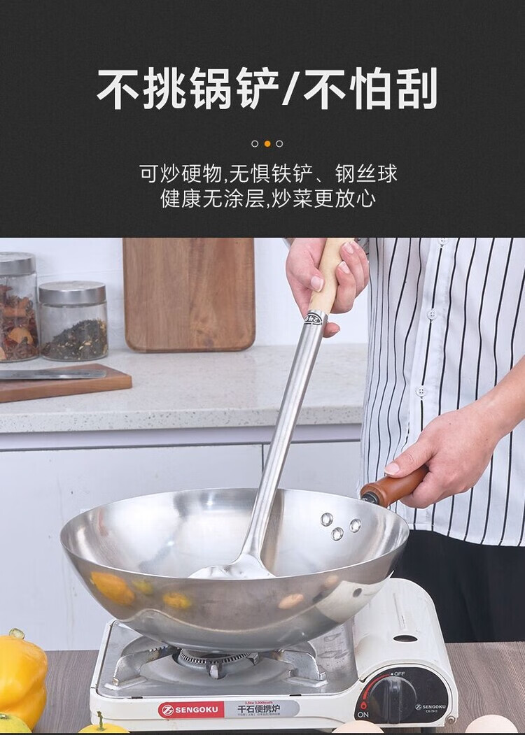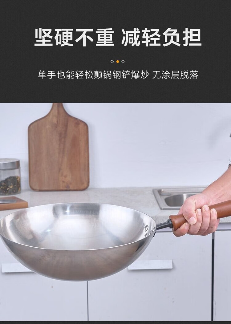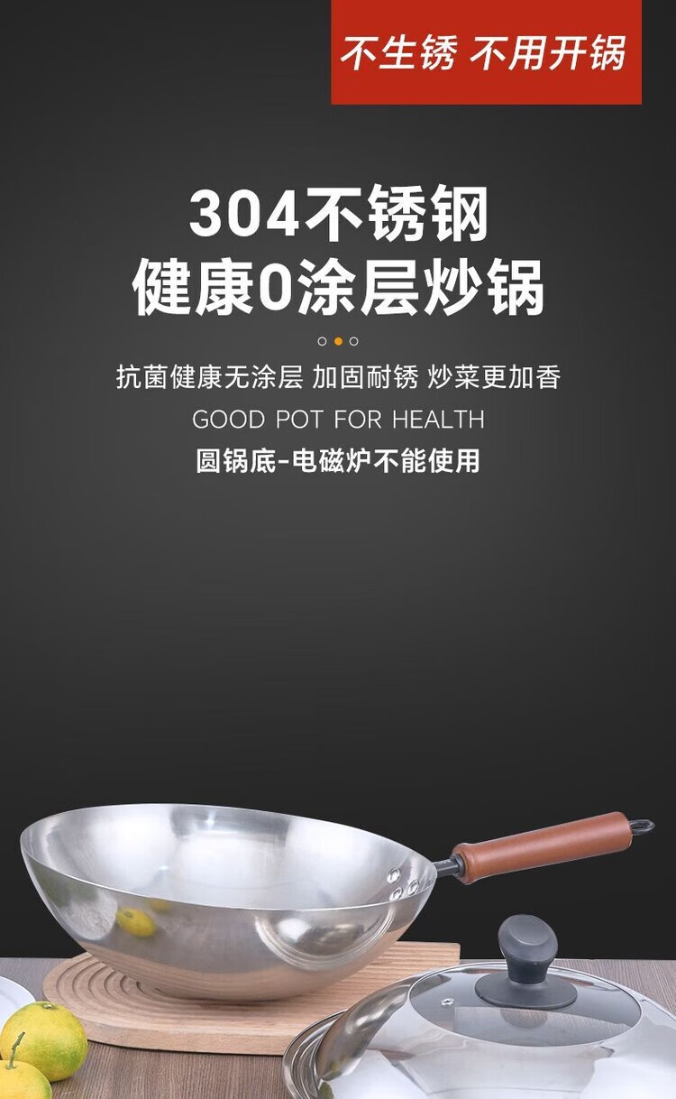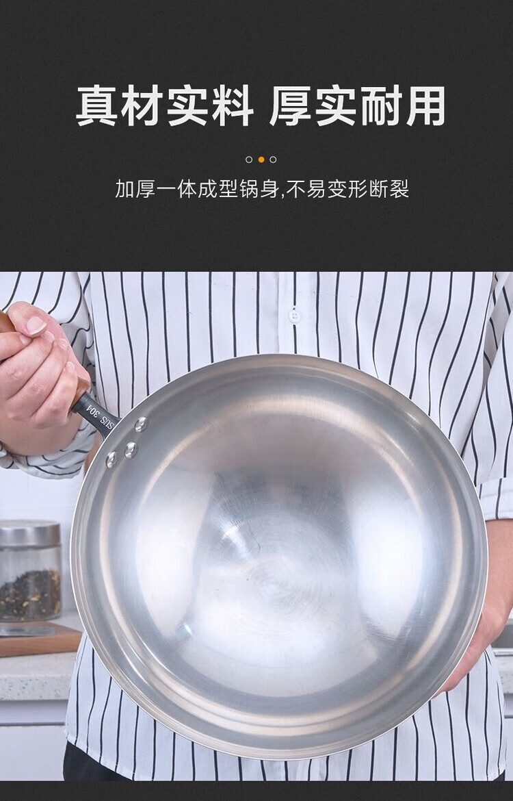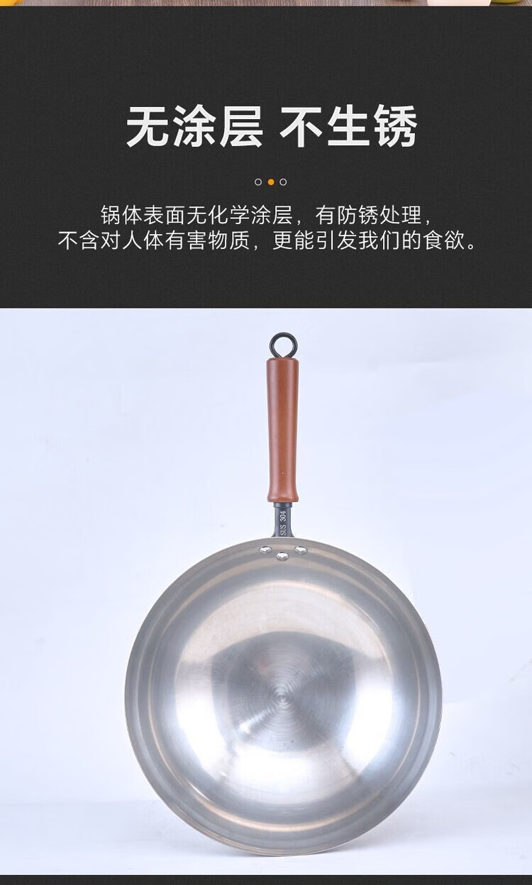 Heirloom stainless steel 304 wok single handle uncoated non-stick household wok thickened and light 32cm single handle 304 wok 1 inch