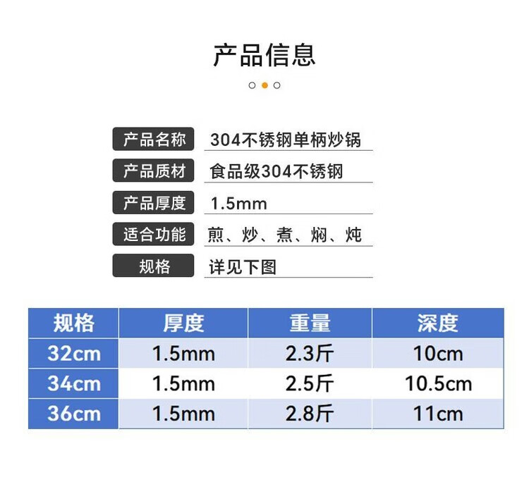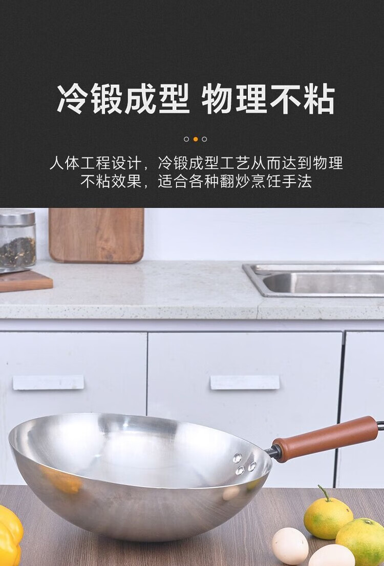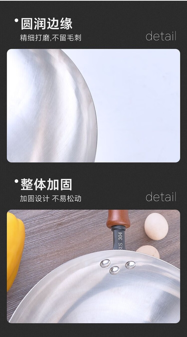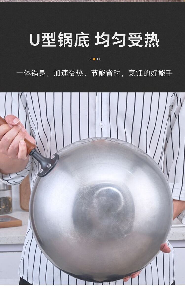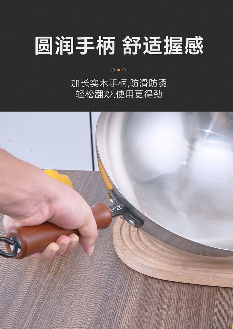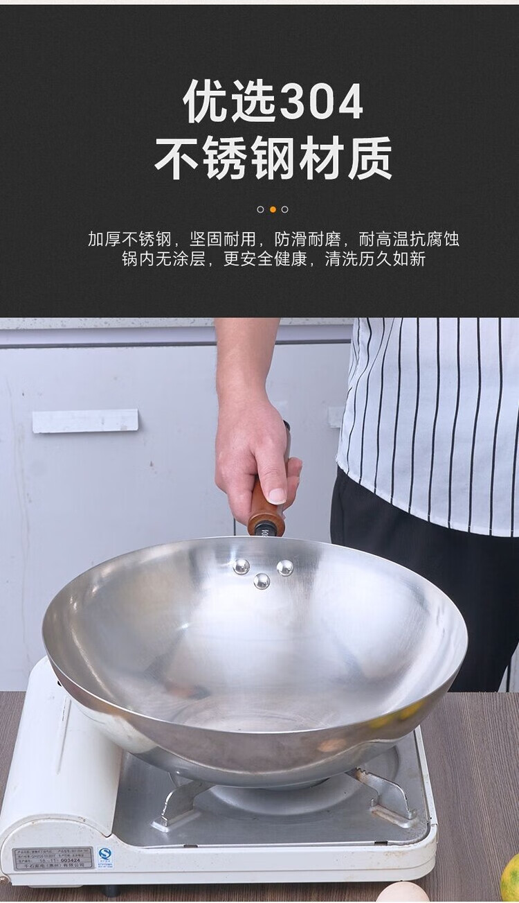 Heirloom stainless steel 304 wok single handle uncoated non-stick household wok thickened and light 32cm single handle 304 wok 1 inch