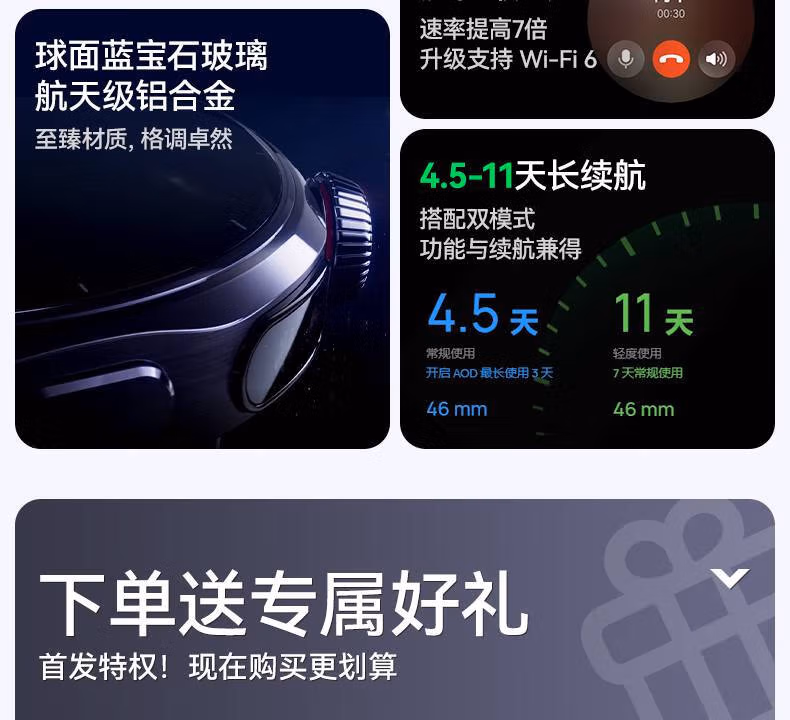Huawei watch WATCH5 smart watch, high-end smart sports watch, independent call, heart rate check, blood pressure and blood sugar assessment, business men and women, Christmas birthday gift, male god high-definition 46mm sky black + black titanium watch strap