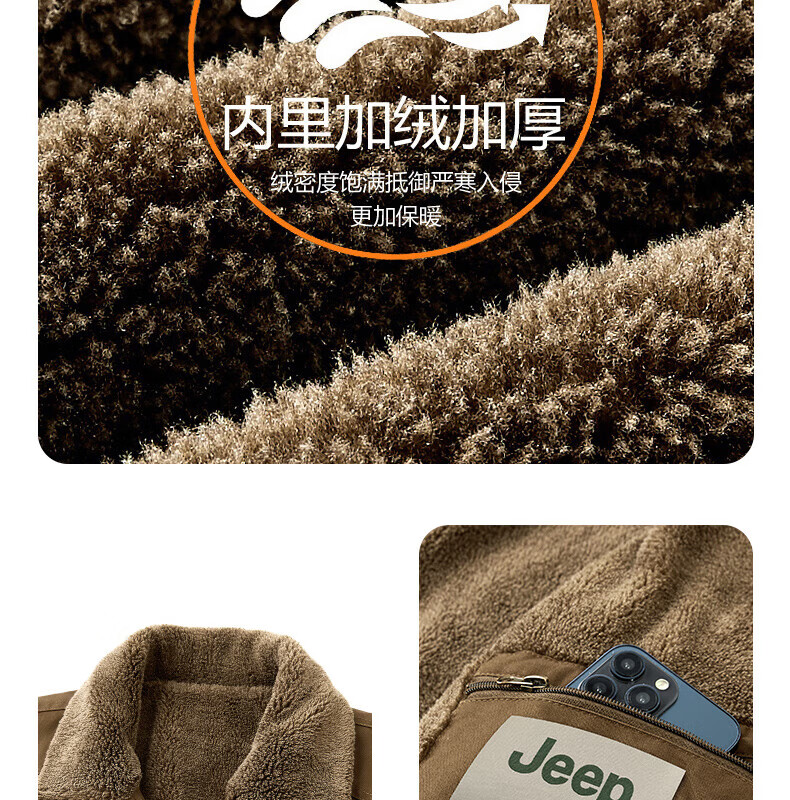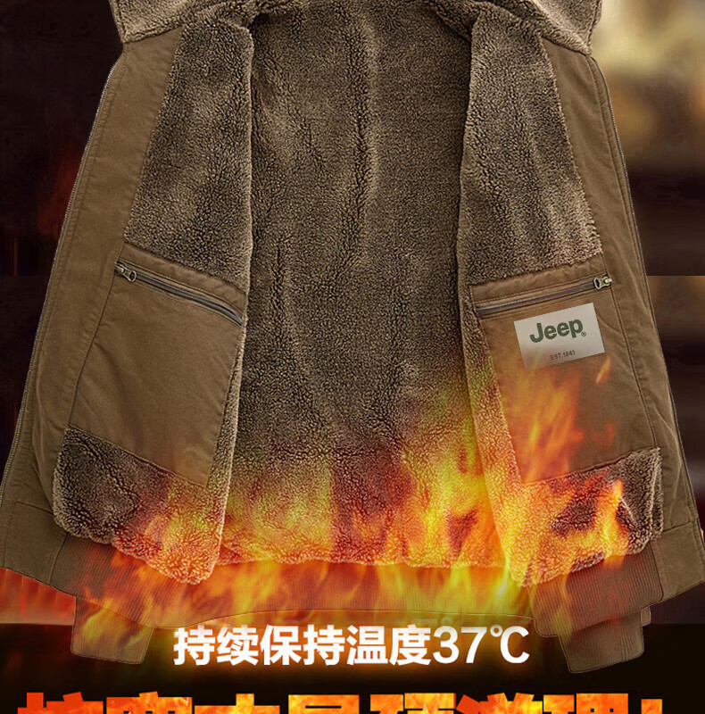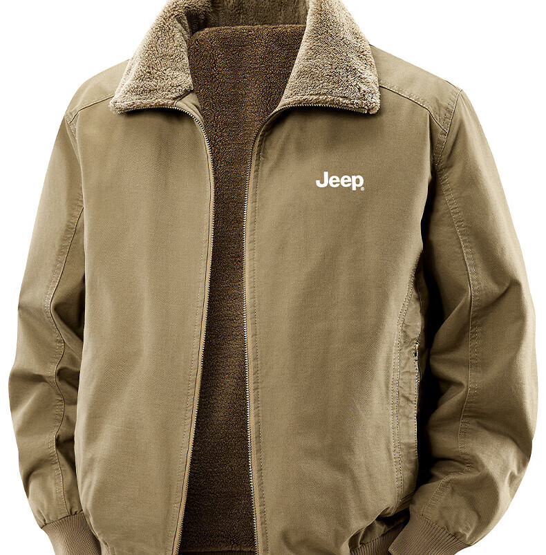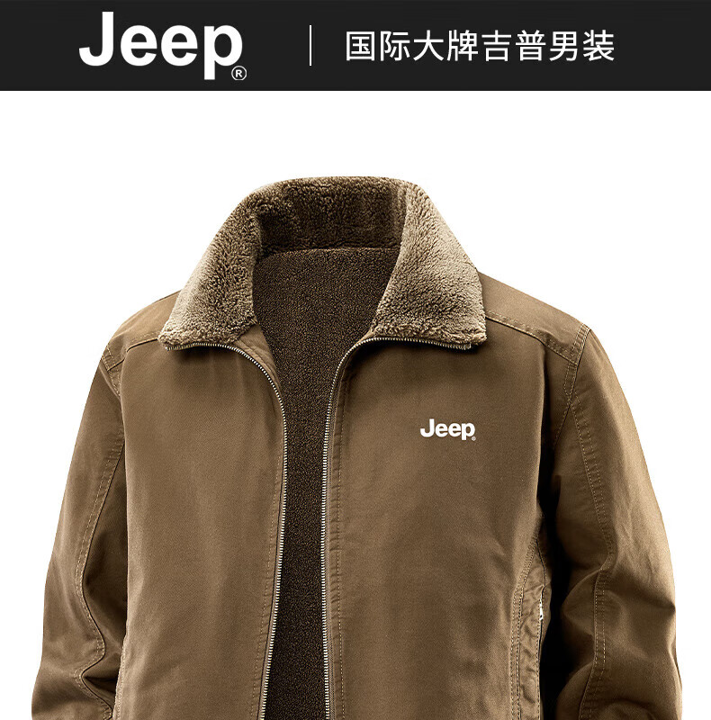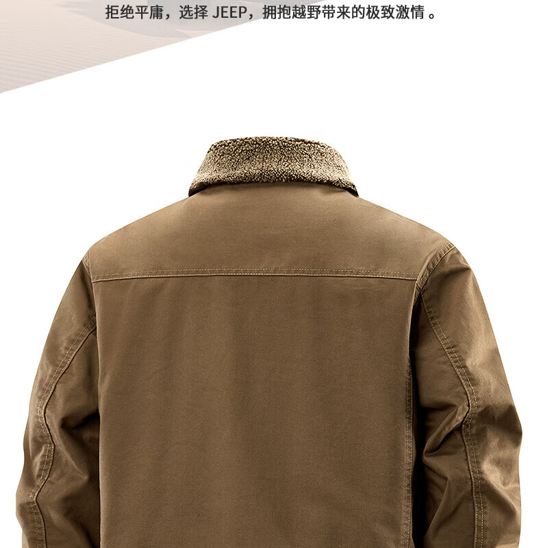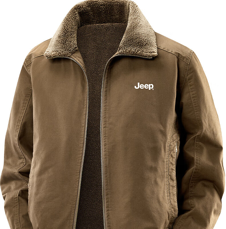 JEEP American genuine high-end jacket autumn and winter men's lapel lamb velvet loose casual warm plus velvet cotton jacket trendy retro brown-100% cotton plus velvet official authentic 2XL