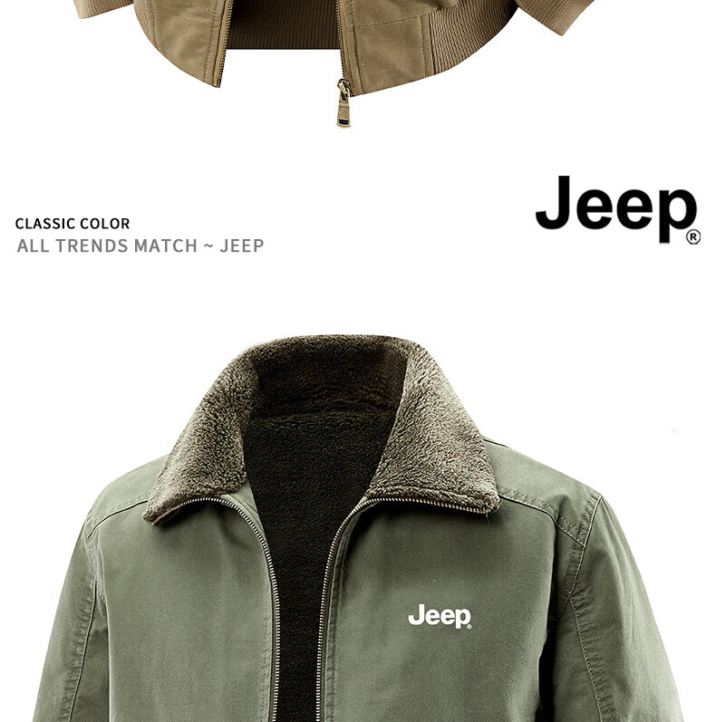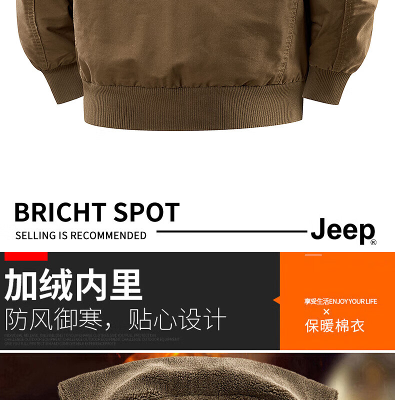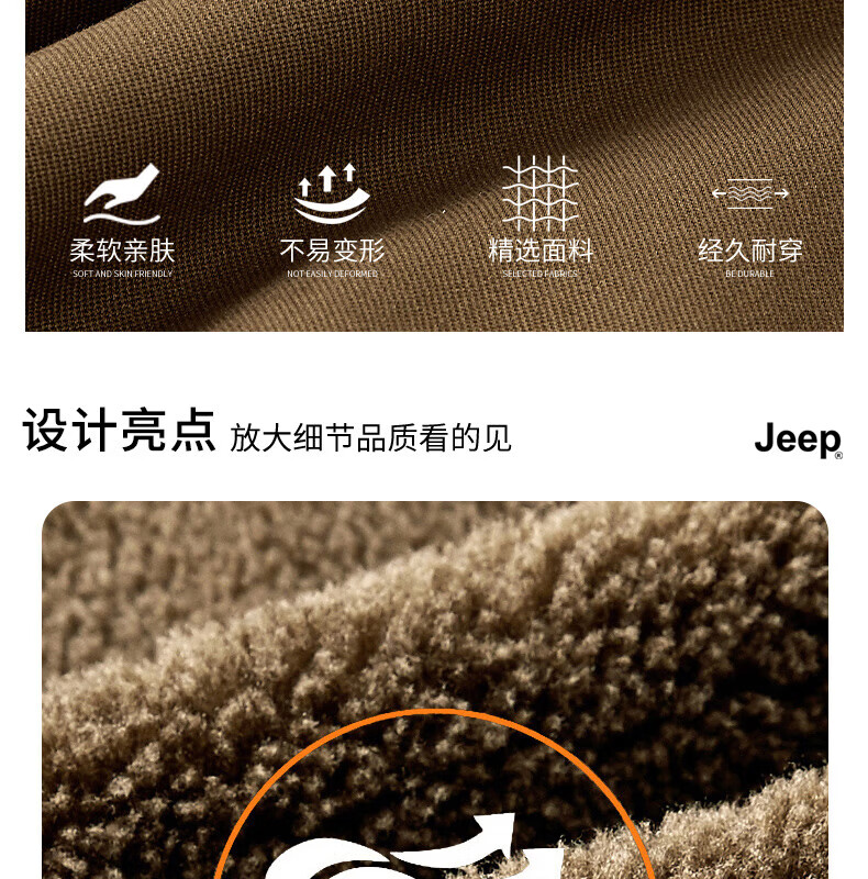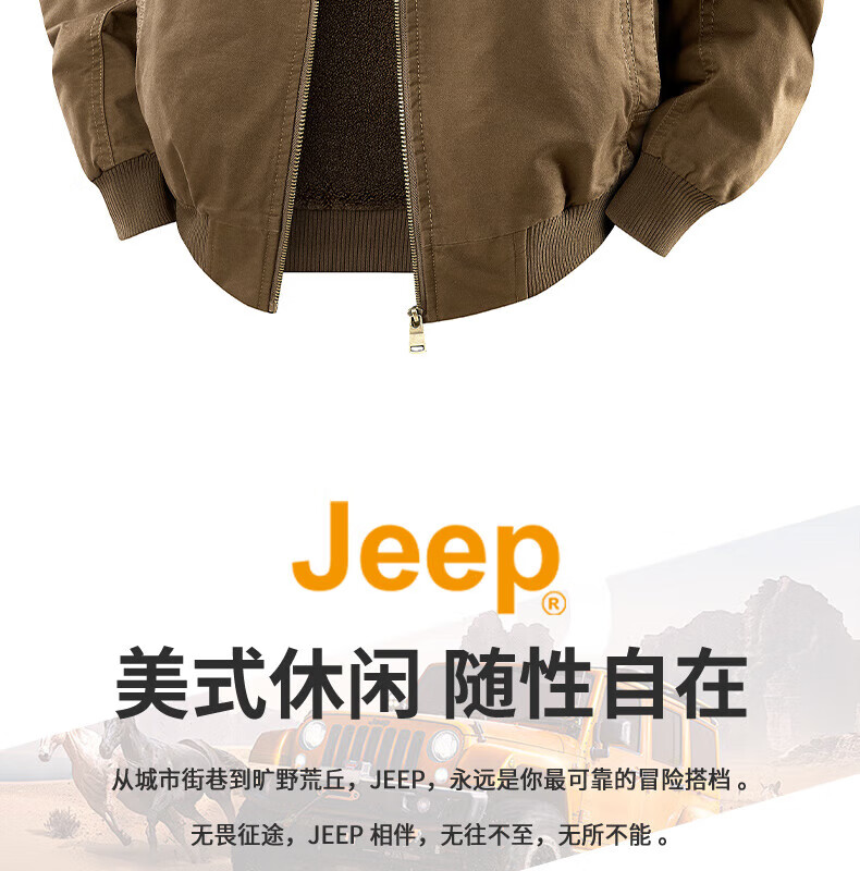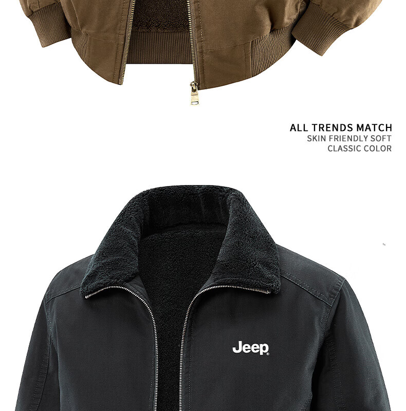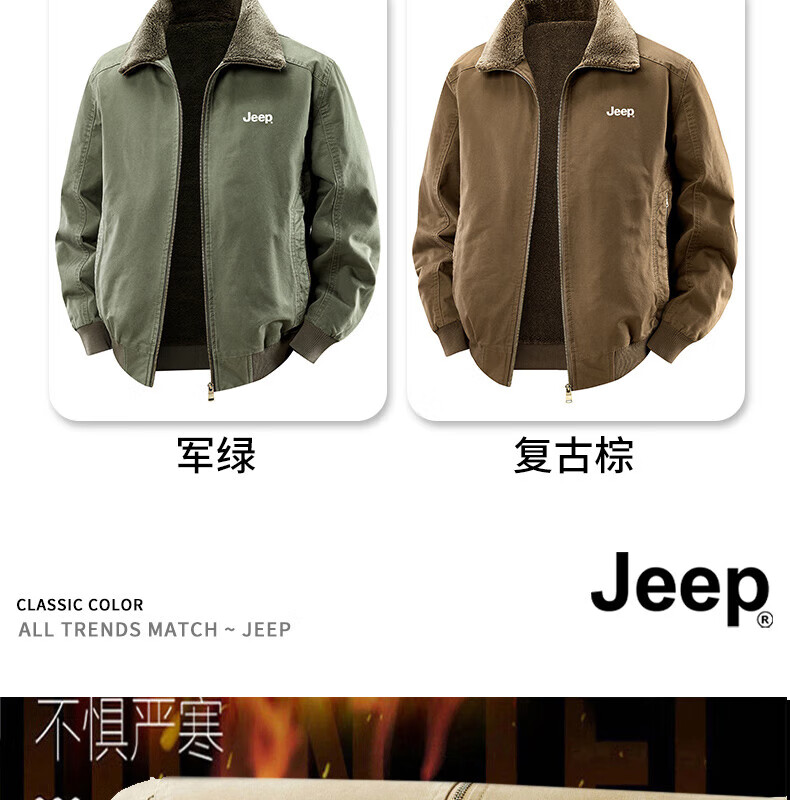 JEEP American genuine high-end jacket autumn and winter men's lapel lamb velvet loose casual warm plus velvet cotton jacket trendy retro brown-100% cotton plus velvet official authentic 2XL