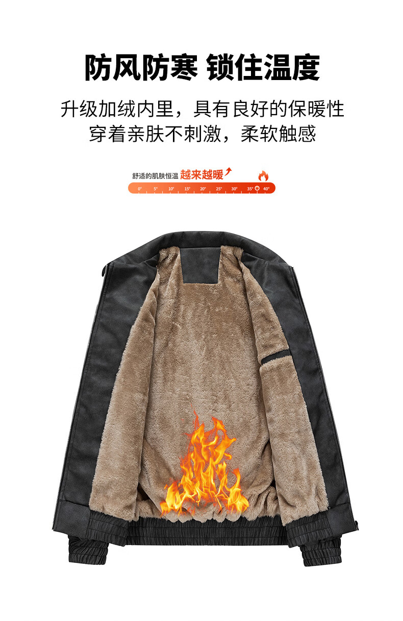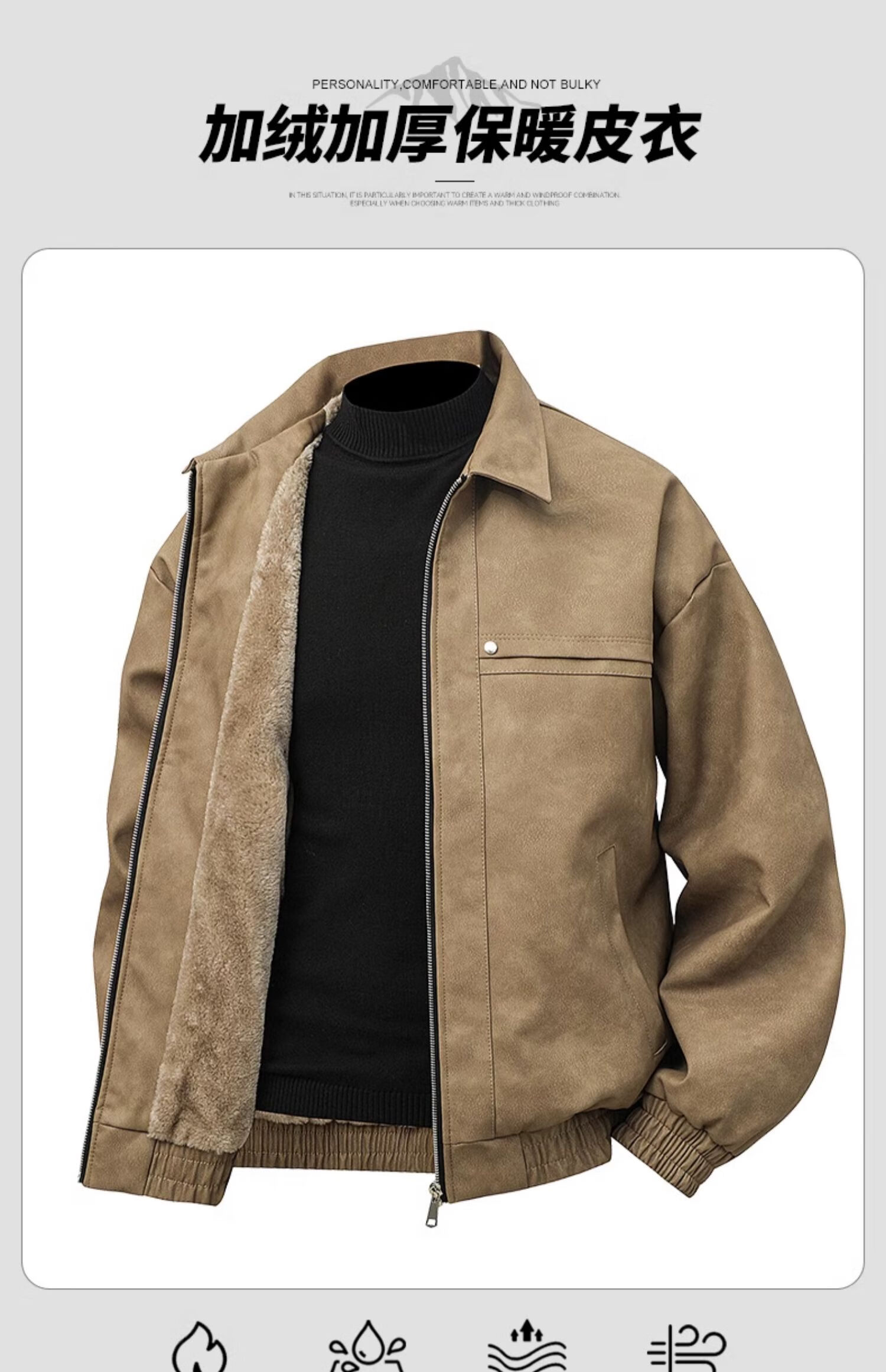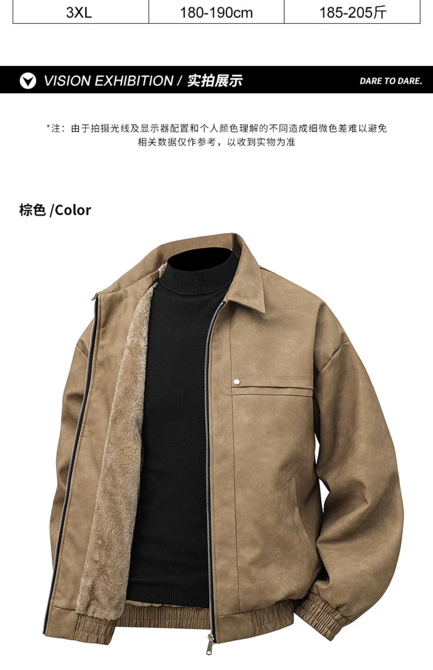 Baleno S&K series leather jacket for men in autumn and winter, thickened velvet, warm windproof lapel, loose jacket, coat top, 2472 brown, regular XL, recommended 145kg-165kg