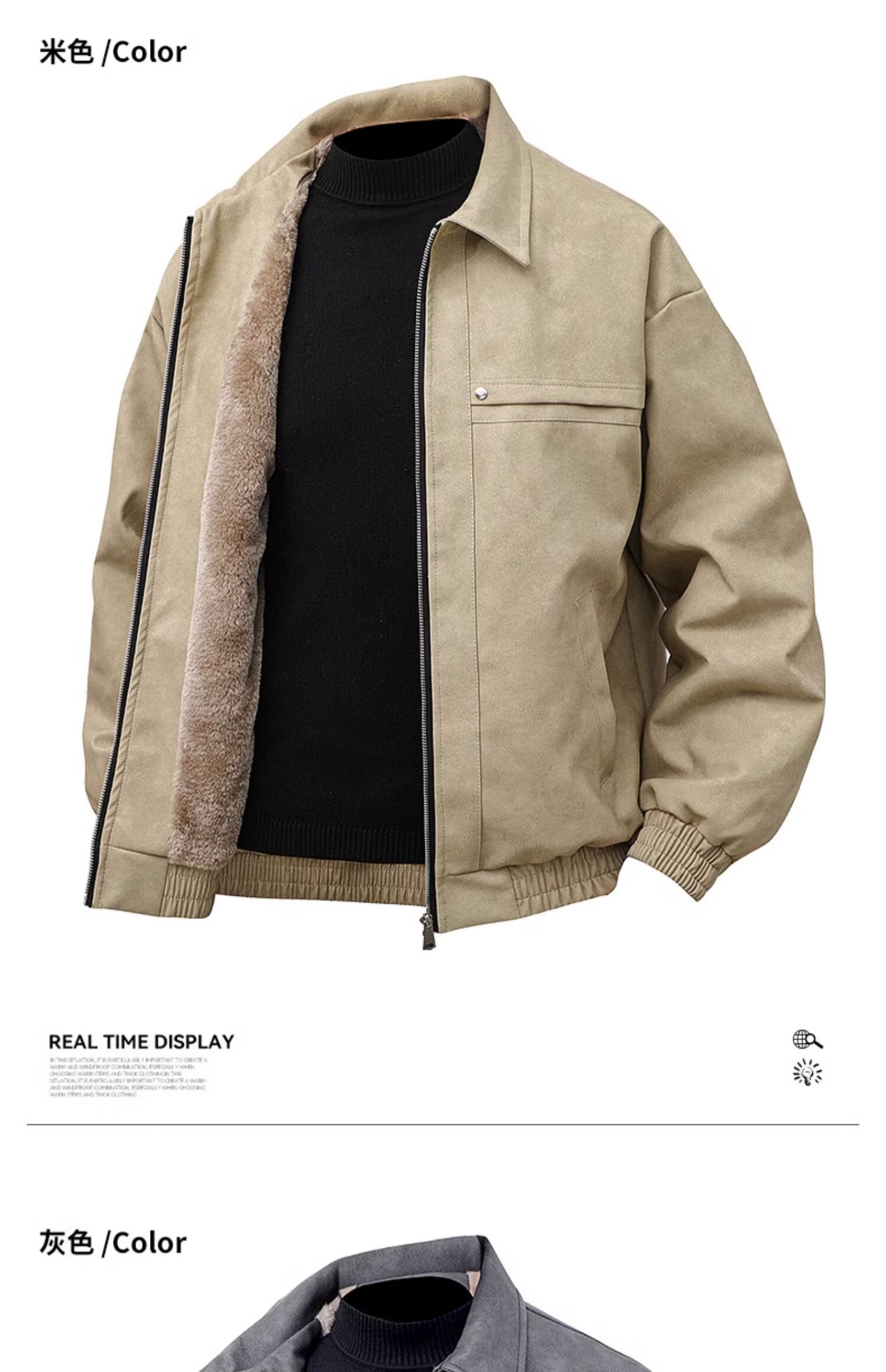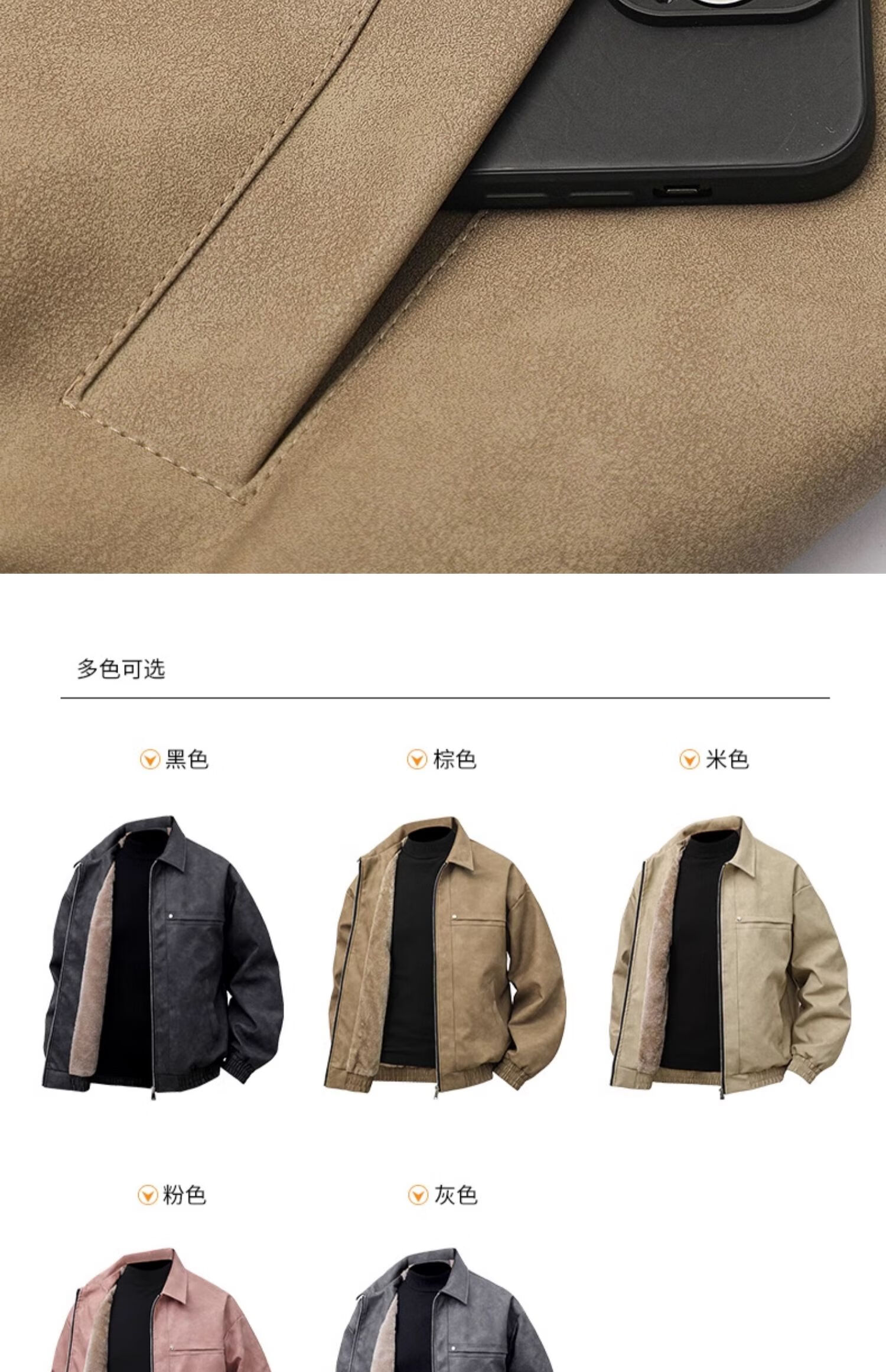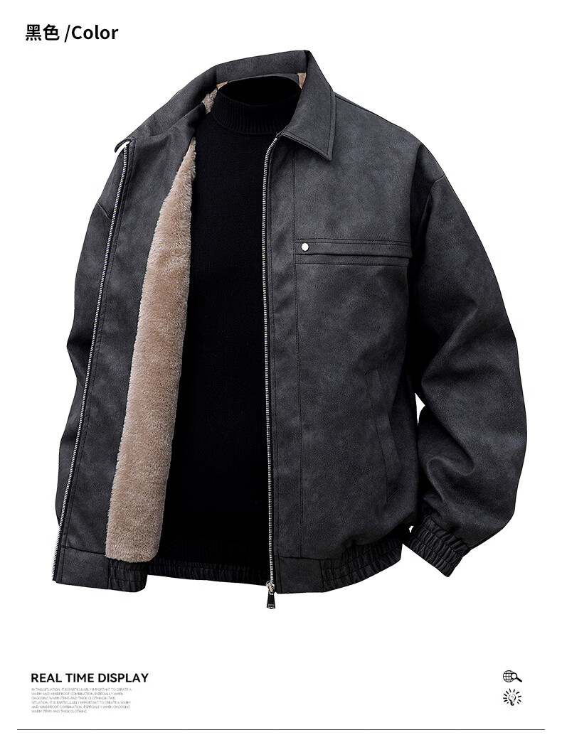 Baleno S&K series leather jacket for men in autumn and winter, thickened velvet, warm windproof lapel, loose jacket, coat top, 2472 brown, regular XL, recommended 145kg-165kg