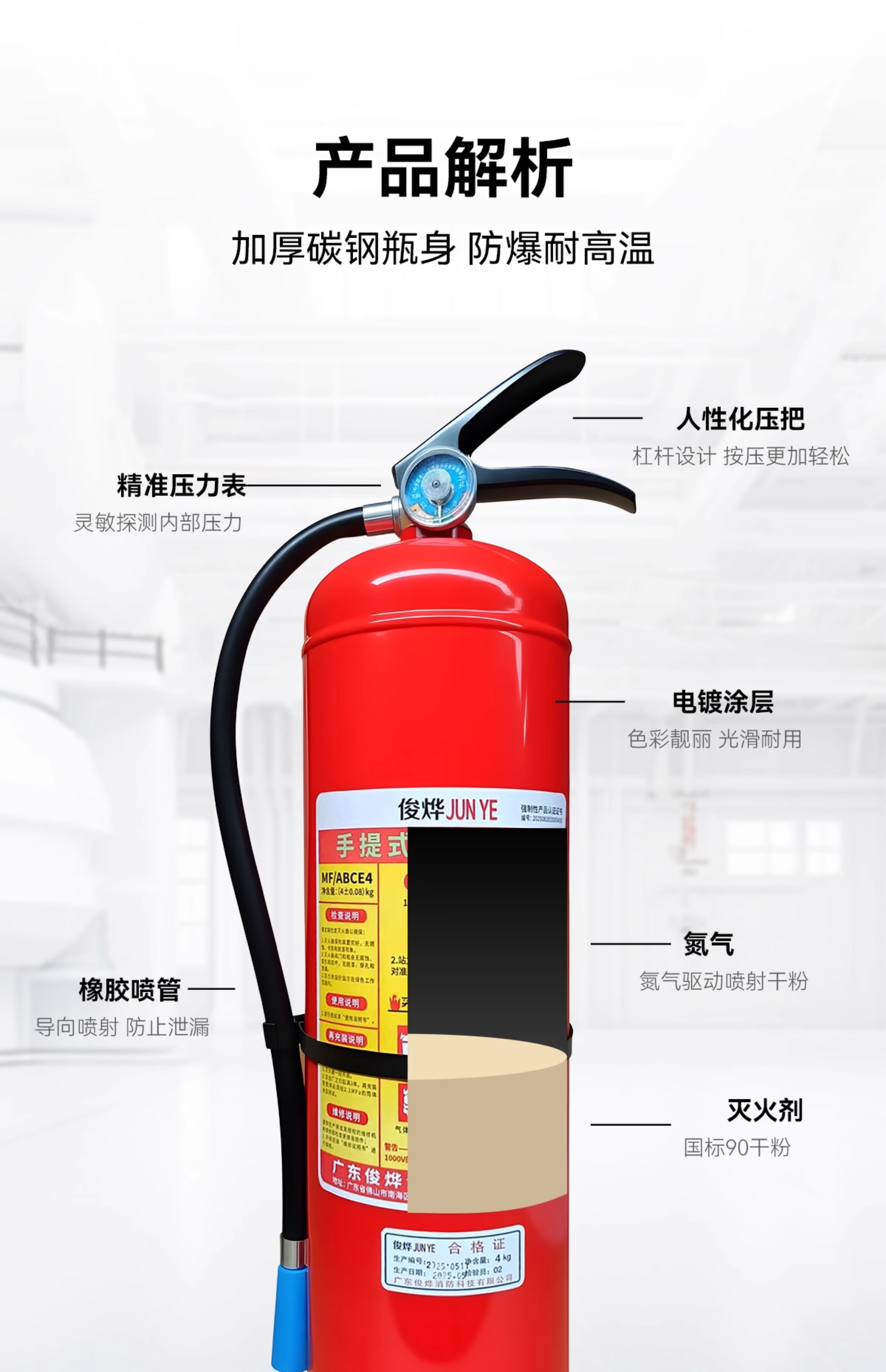 Junye 2025 new fire extinguisher 4kg portable dry powder for shops new national standard 4kg explosion-proof fire fighting equipment for stores new national standard produced in the past month