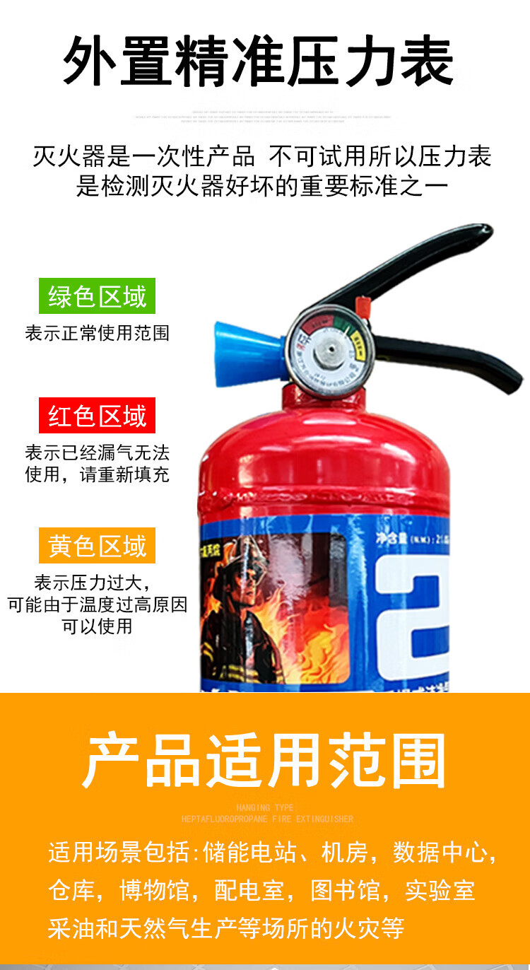 Hanging hexafluoropropane fire extinguisher portable machine room ultra-clean gas automatic 2kg3KG4kg6KG8kg 6KG portable clean gas 3c certification