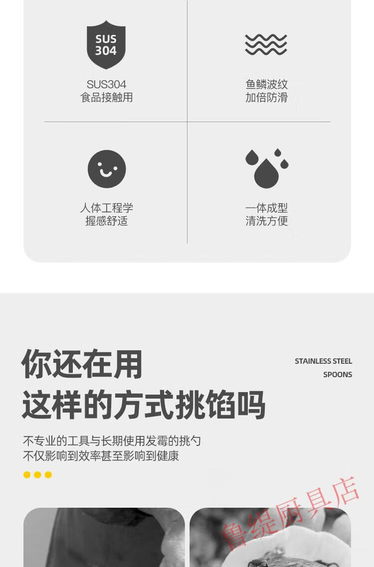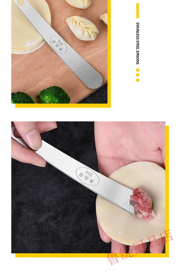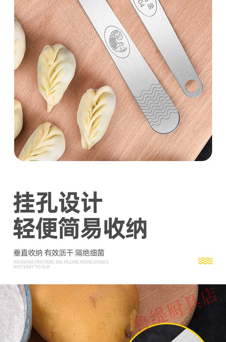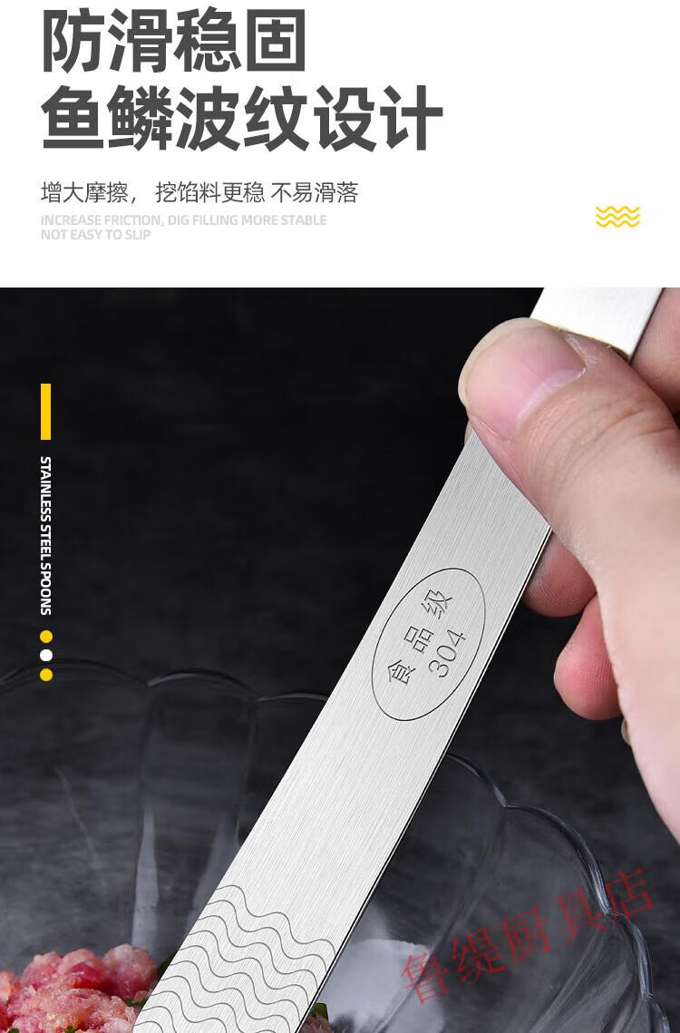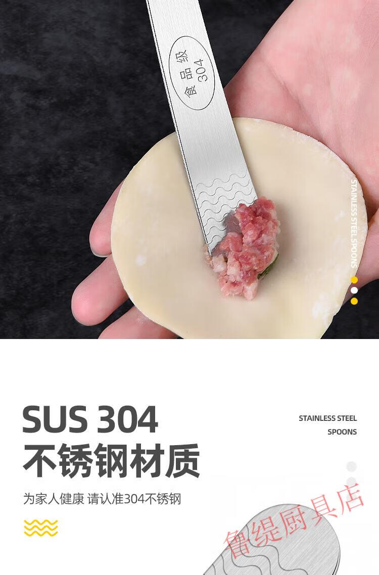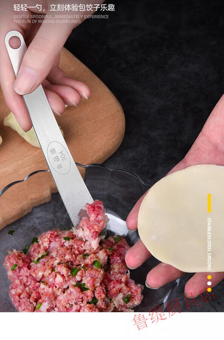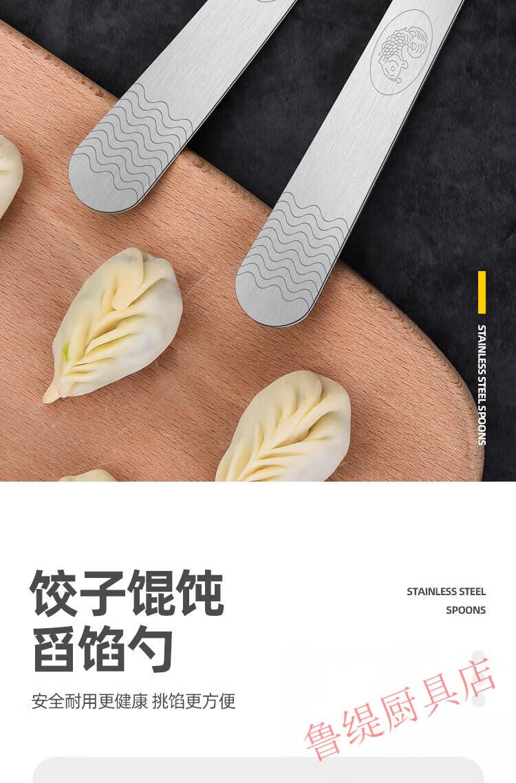 Zwilling German Seiko quality 304 stainless steel dumpling spoon artifact for making dumplings, wontons, wontons, dumplings and buns tool for stirring stuffing, ordinary stainless steel, non-porous, carp pattern, 1 pack