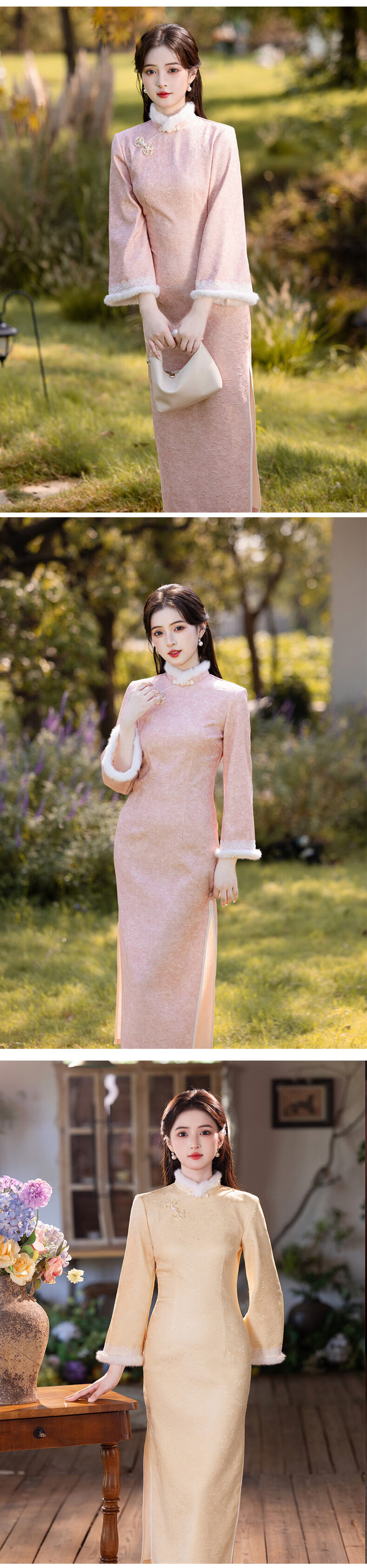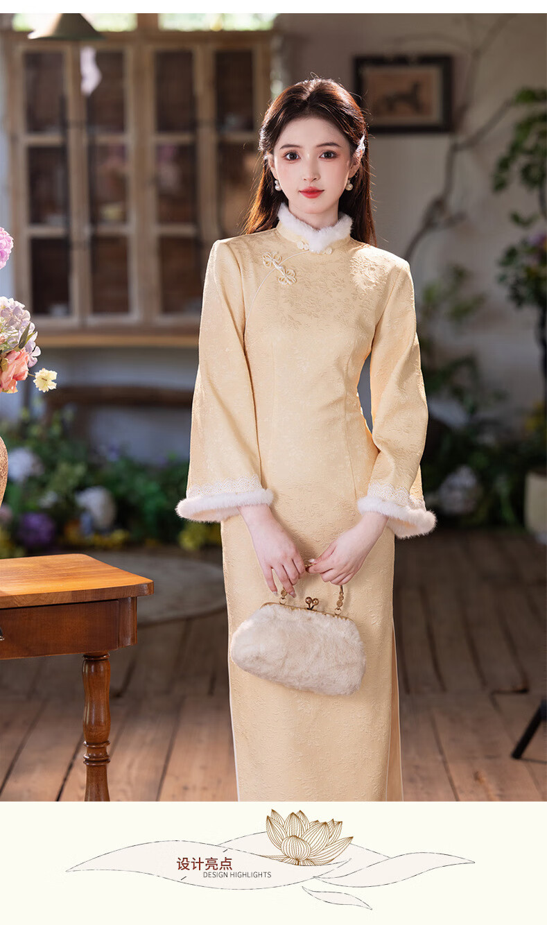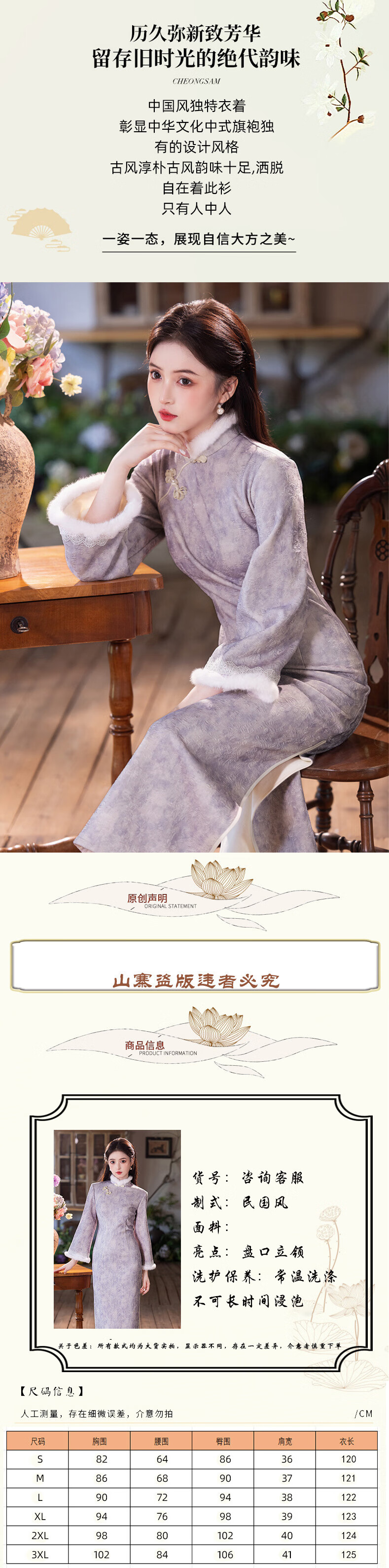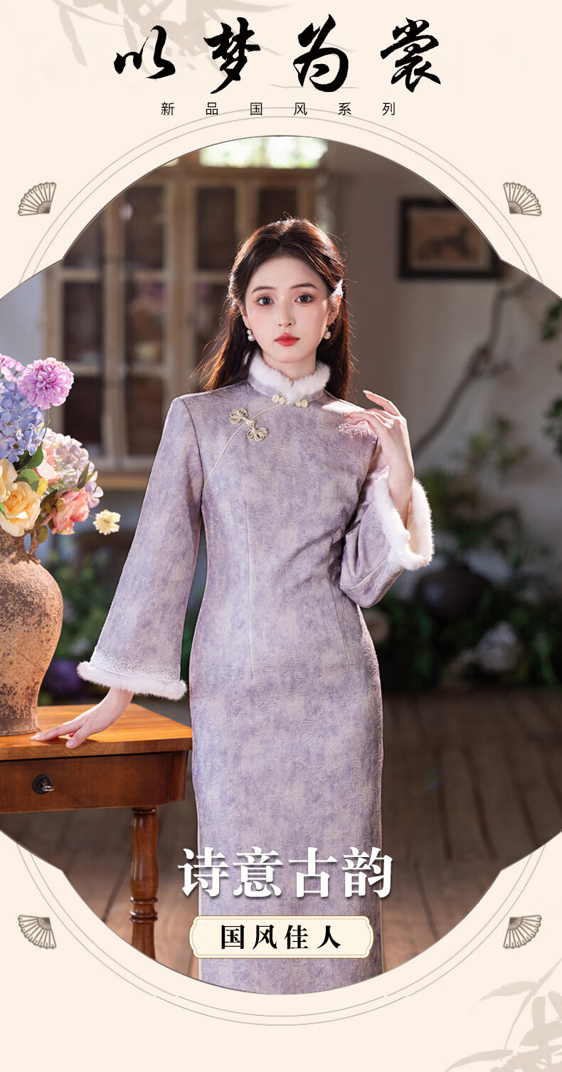 Du Yanzhi 2025 winter new style jacquard composite super soft plus velvet thickened long cheongsam light purple noble and elegant temperament cheongsam light purple plus velvet L 100-110 catties (height standard of 1.6 meters)