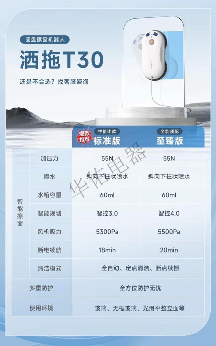 SATUO T30 fully automatic electric intelligent water-spraying window cleaning robot, glass cleaning artifact, window cleaning SATUO T30 new product upgrade to the ultimate version