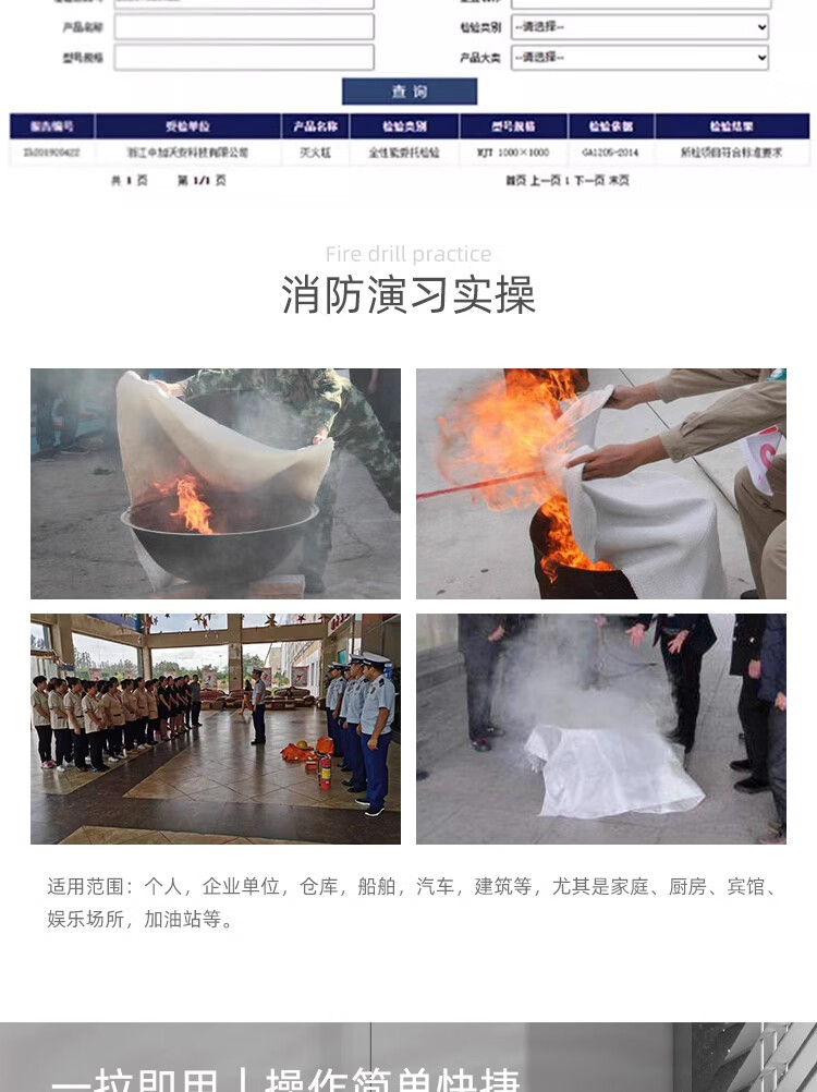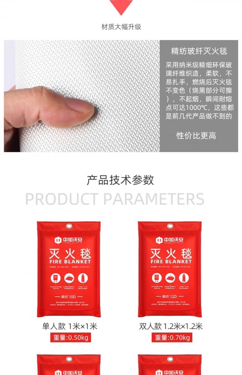 Zhongjia Woan national standard CE certified fire blanket kitchen fire blanket national standard fire blanket hotel high-rise flame retardant escape blanket fire mat 1.2m x 1.2m model EU CE certification
