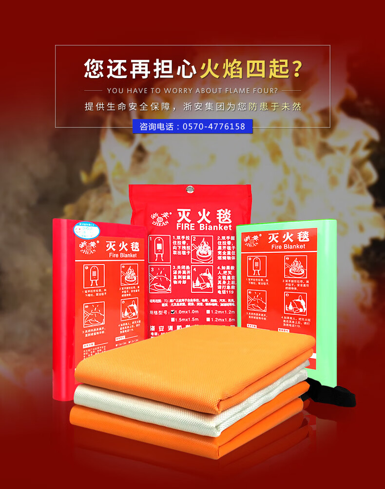 Zhe'an brand fire blanket, fire blanket, silicone fire escape fireproof cloth, fire blanket 1m 1.5m glass 1x1 bag