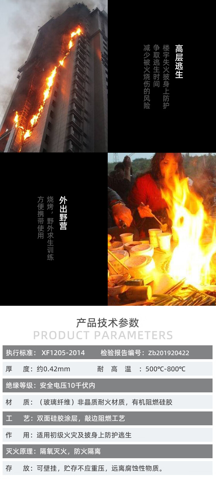 Zhongjia Woan Fire Blanket Home Fire-fighting Certification Kitchen Special Fiberglass Commercial Home Fire-fighting Equipment Not Easy to Prick Silicone 1.2 Meter Fire Blanket CE Certification