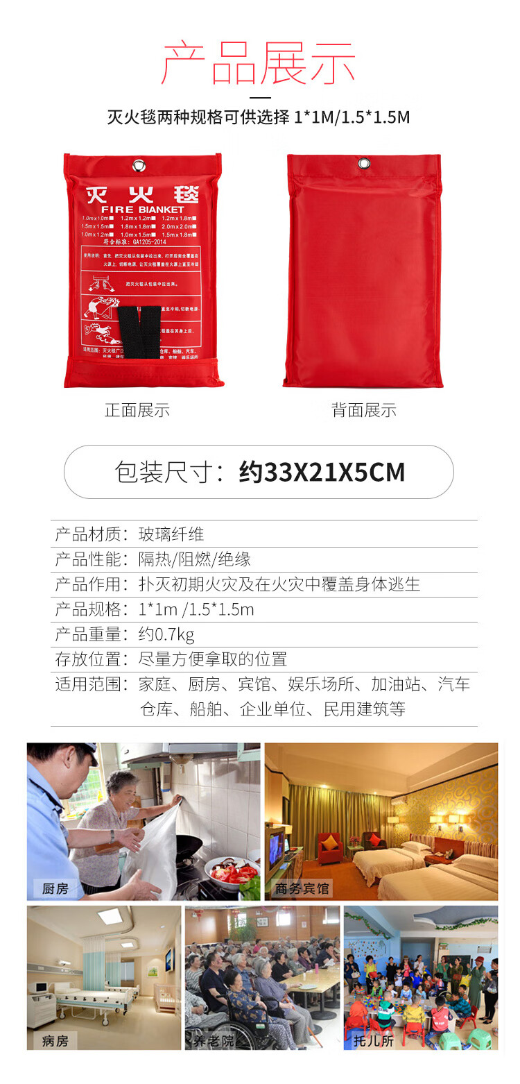 Flame Warrior Fire Blanket Fire Extinguisher Supporting Household Home Kitchen Factory 1.5m/1m Glass Fiber 1*1m