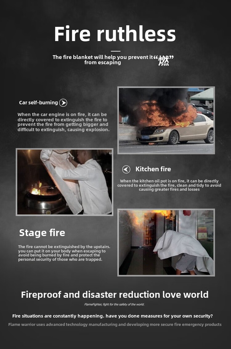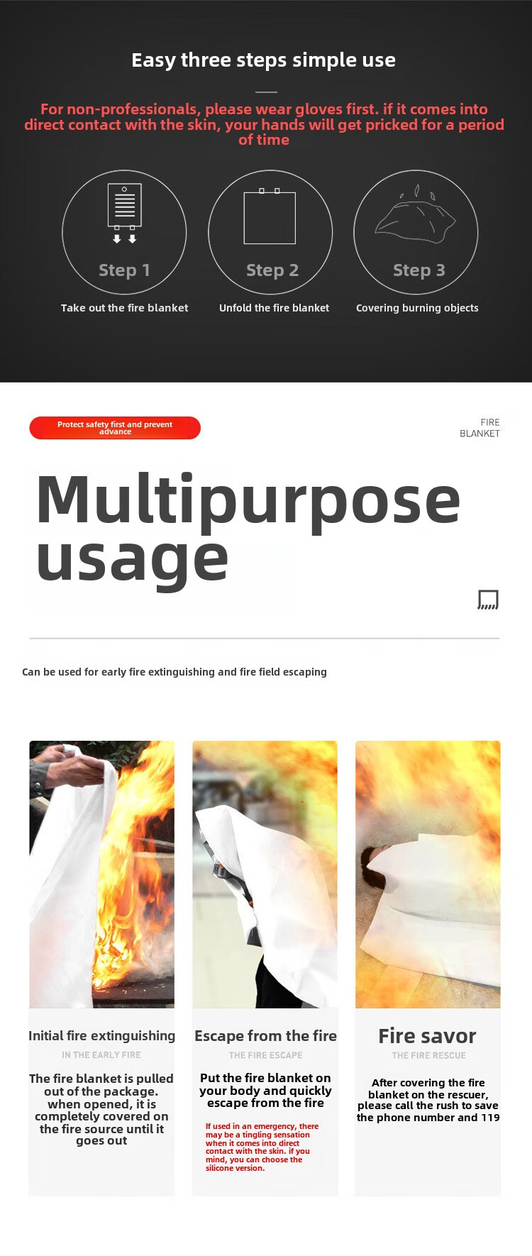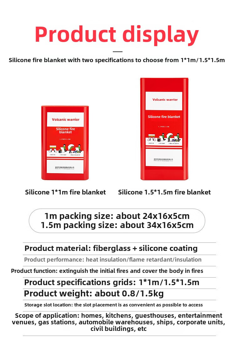 Flame Warrior Fire Blanket Silicone Material Kitchen Outdoor Camping Picnic Fire Emergency Fire Rescue Escape Blanket Hand-Free Silicone 1.5*1.5m (Orange)