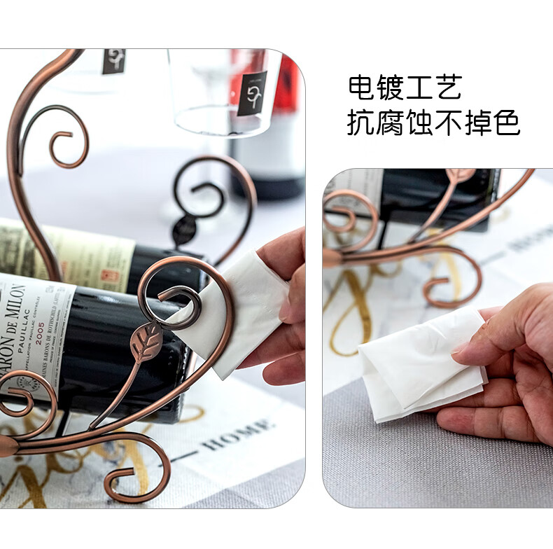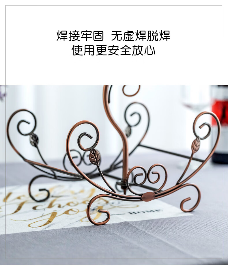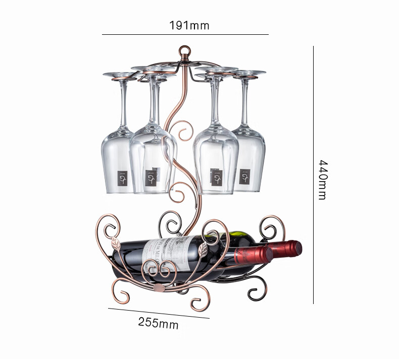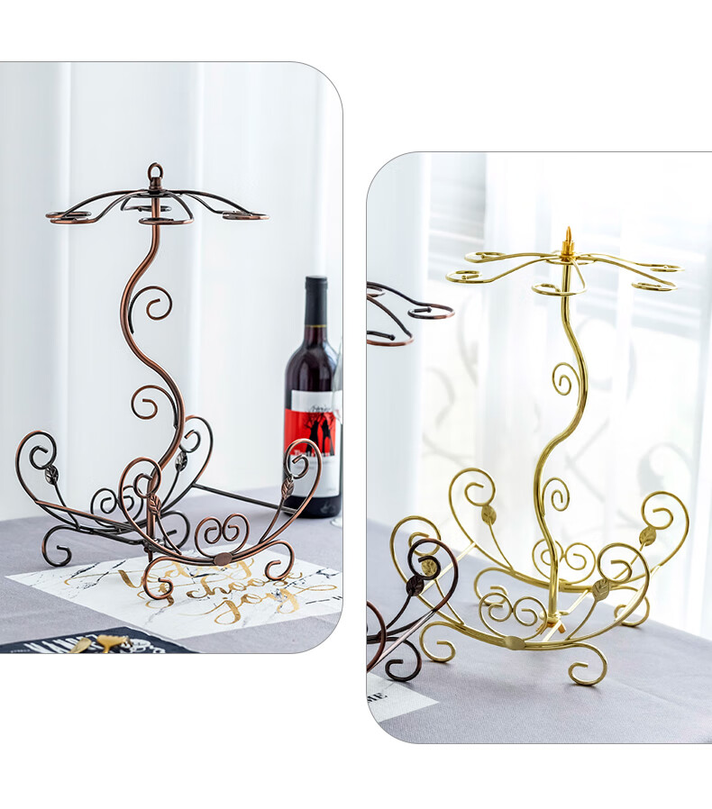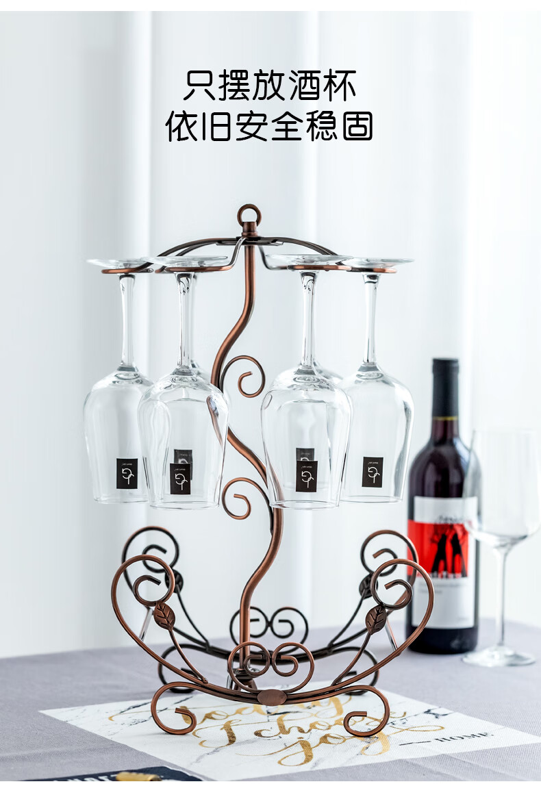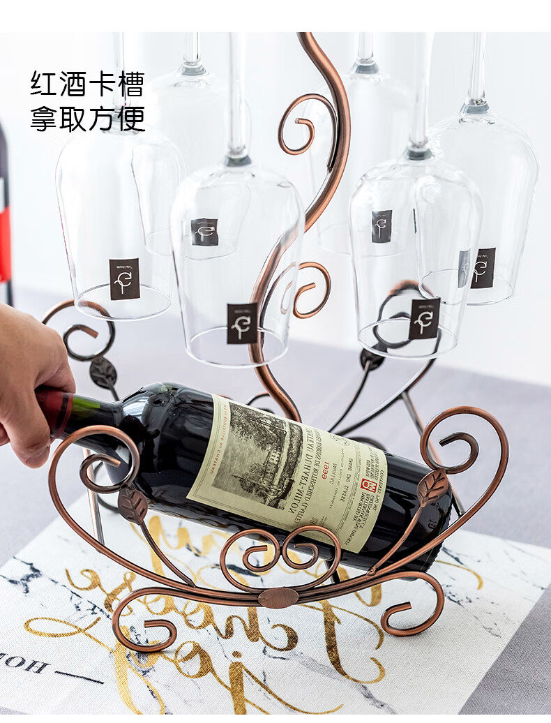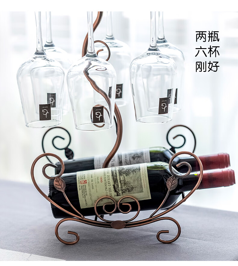 Fantasy creative wine rack, home wine bottle rack, upside-down wine glass rack, European style wine cabinet ornaments, wine rack, small flower boat - gold + 6 180ml wine glasses