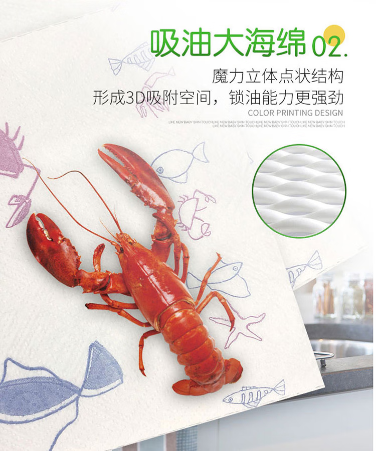 Xinxiangyin kitchen paper towel household disposable kitchen paper thickened roll oil-absorbing and water-locking kitchen paper 2 layers 65 sections * 3 rolls