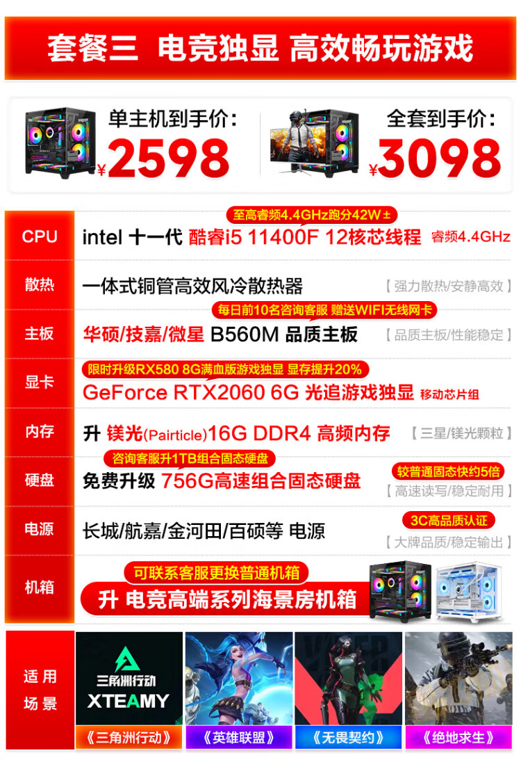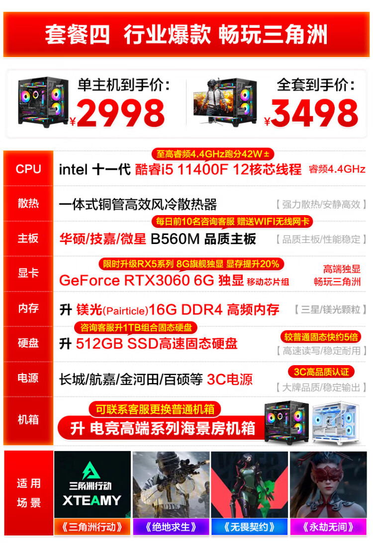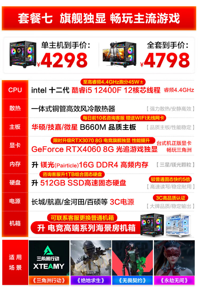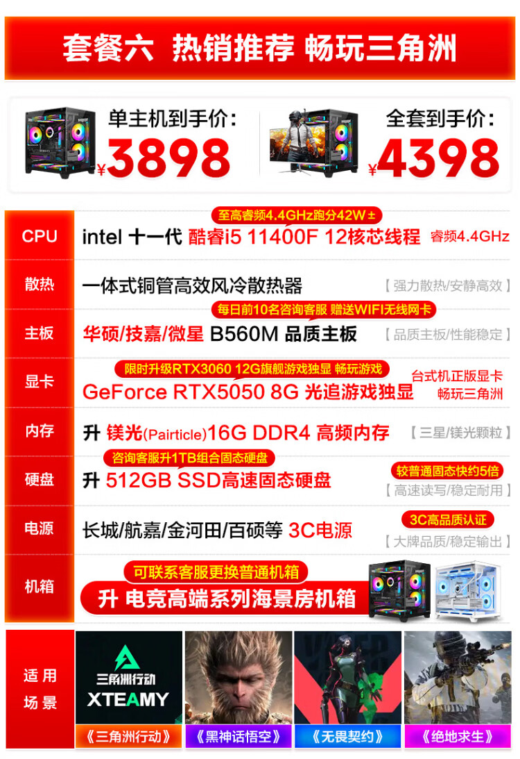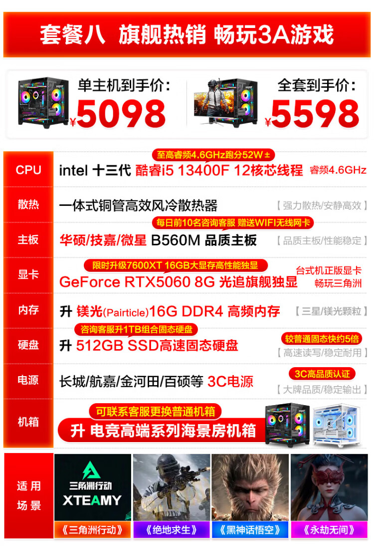 MSI Desktop Core i5 13400F RTX3060/3070/4060/5060 Delta Tile Game Assembly Computer Host Second-hand Complete Set Single Host Free Keyboard and Mouse Set Eight i5 13400F/1TB/RTX5060