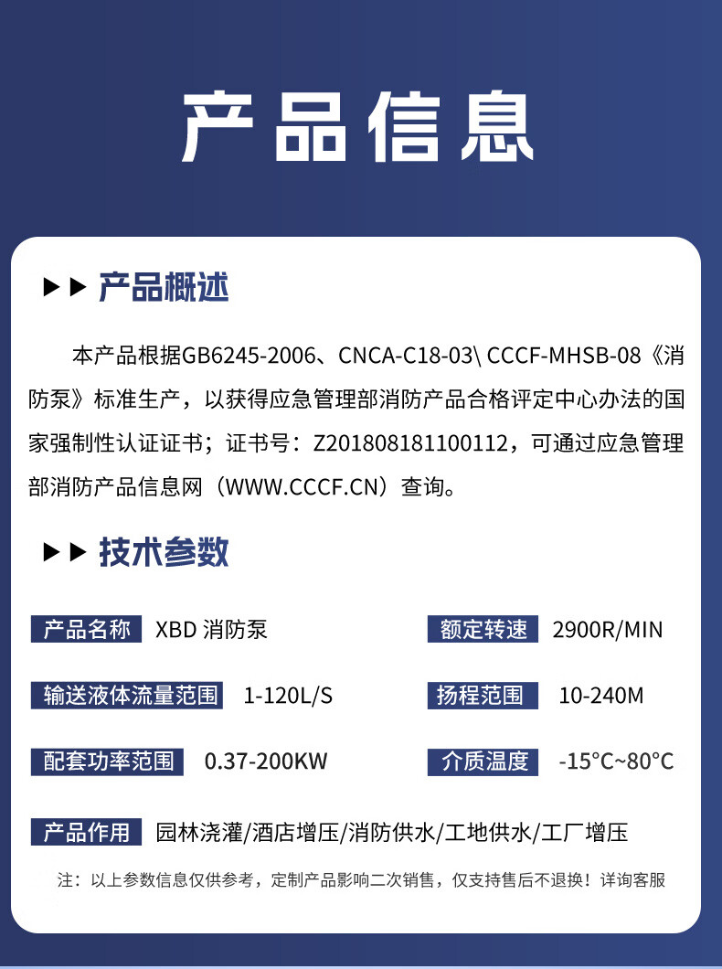 XBD vertical single-stage fire pump indoor fire hydrant pump automatic spray pump booster stabilizer pump outdoor fire hydrant XBD7.5/35G-HXL