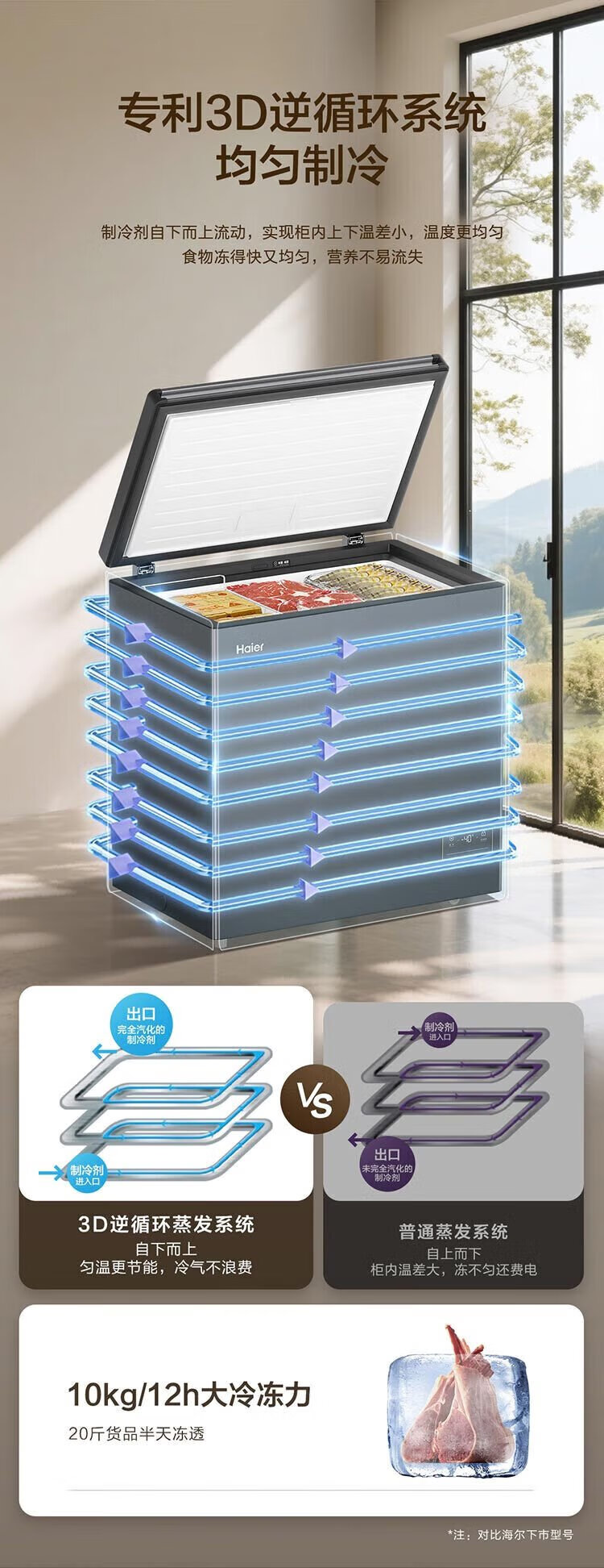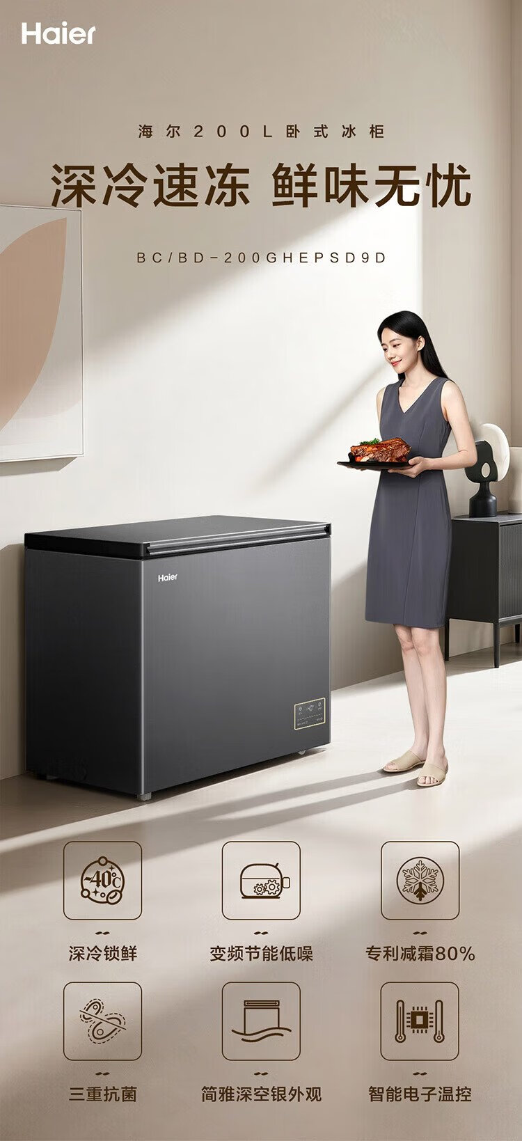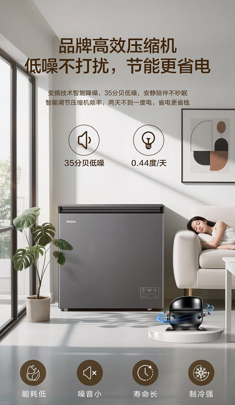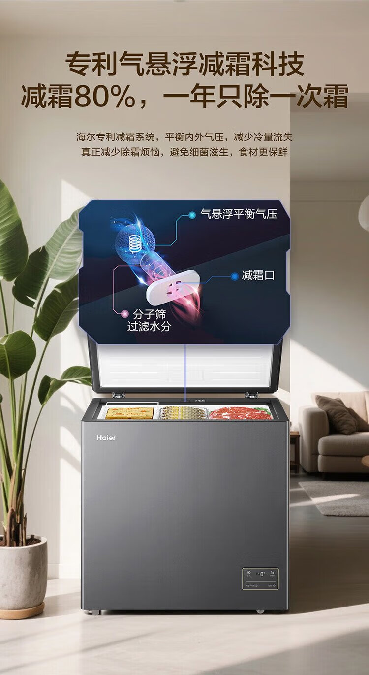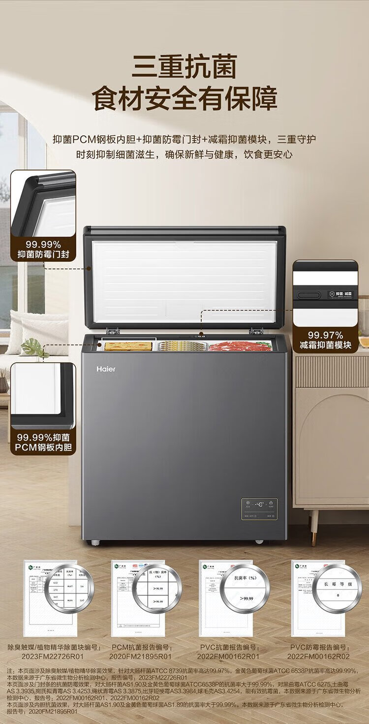 Haier Freezer Home Commercial Large Capacity Small Refrigerator Small 100/200/300 Liter Small Freezer Level 1 Energy Efficiency Energy Saving Full Refrigerator Conversion Freezer Frost Reduction 80%丨-30 Cryogenic Quick Freezing 100L