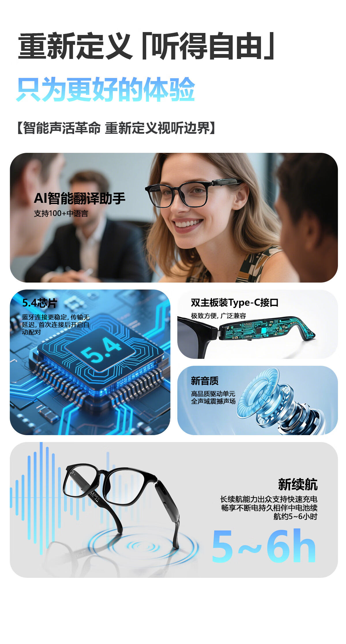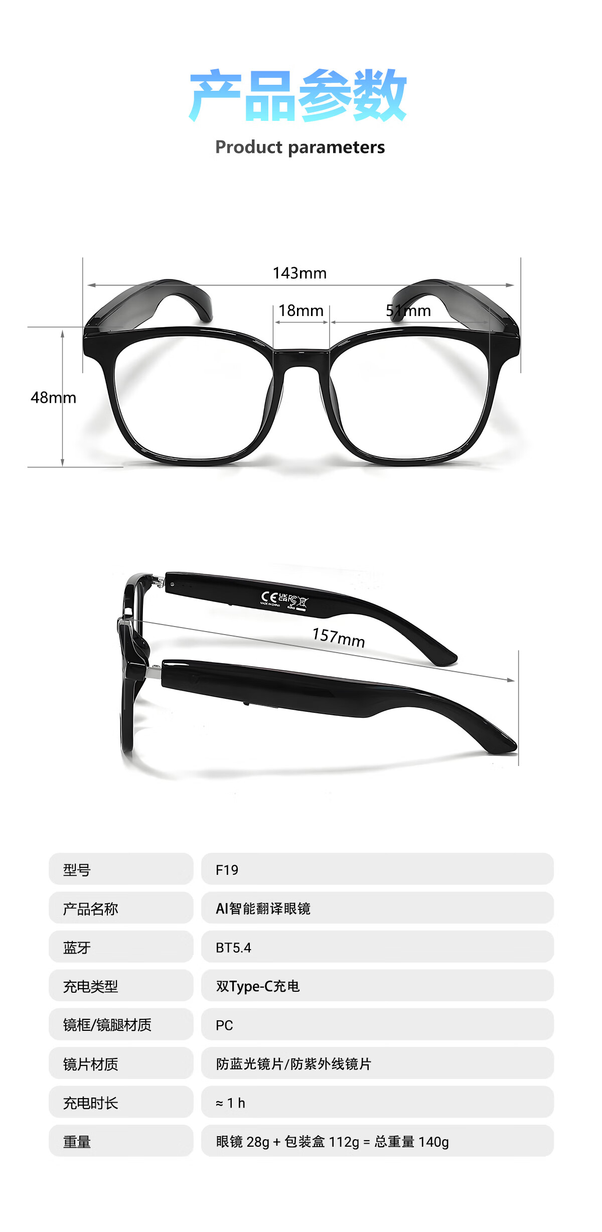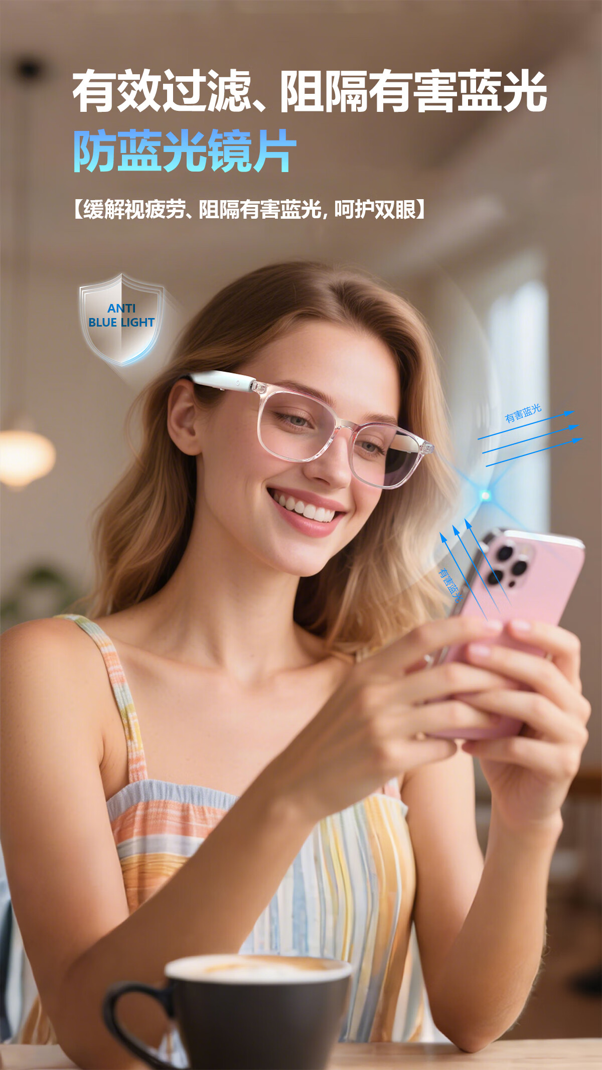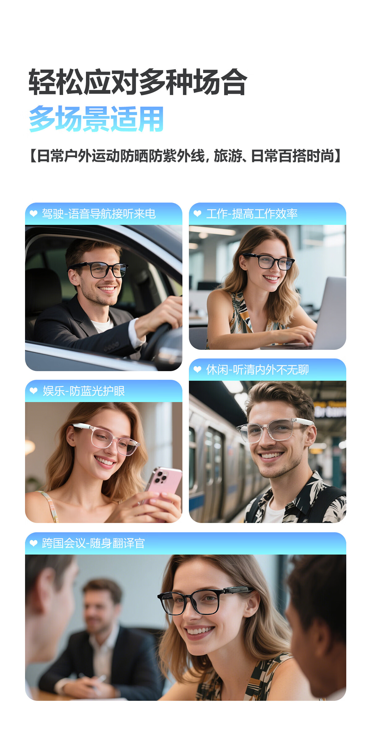 Smart AI Audio Glasses Bluetooth Call Listening to Music Outdoor Travel AI Translation Anti-Blue Light Multifunctional Glasses F19 Translucent Pink Frame-Anti-Blue Light