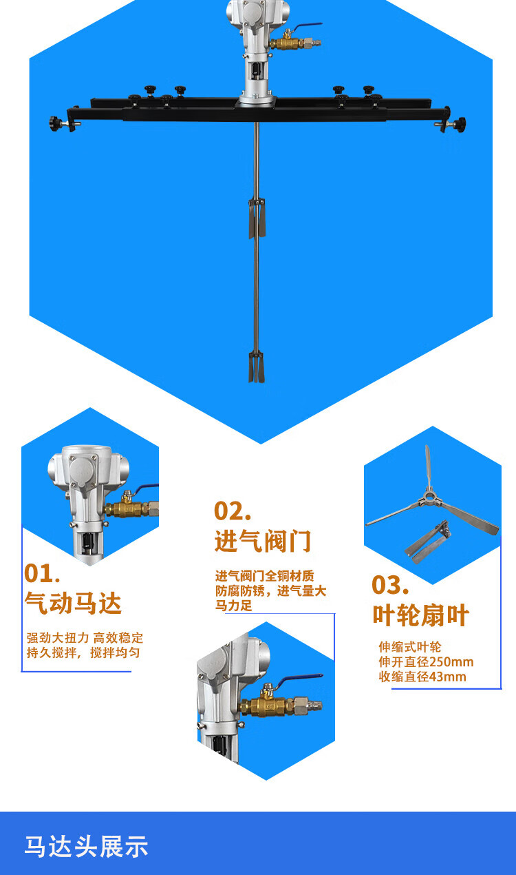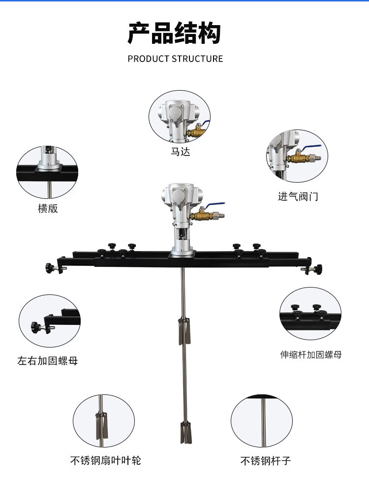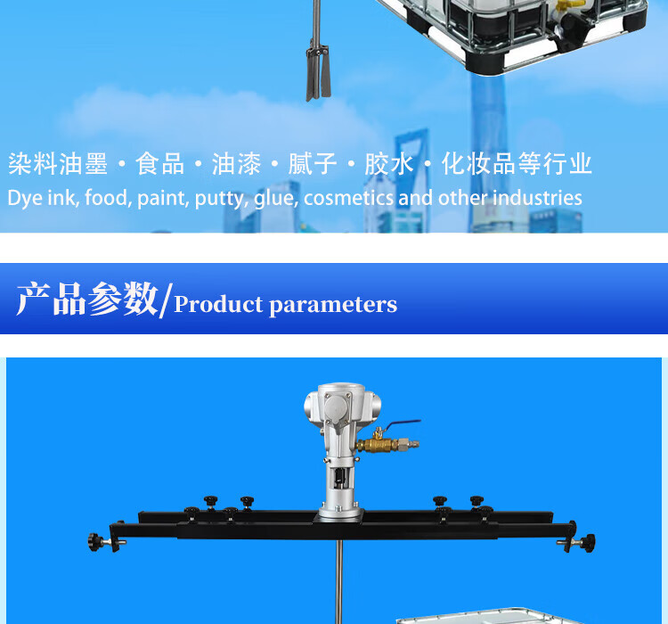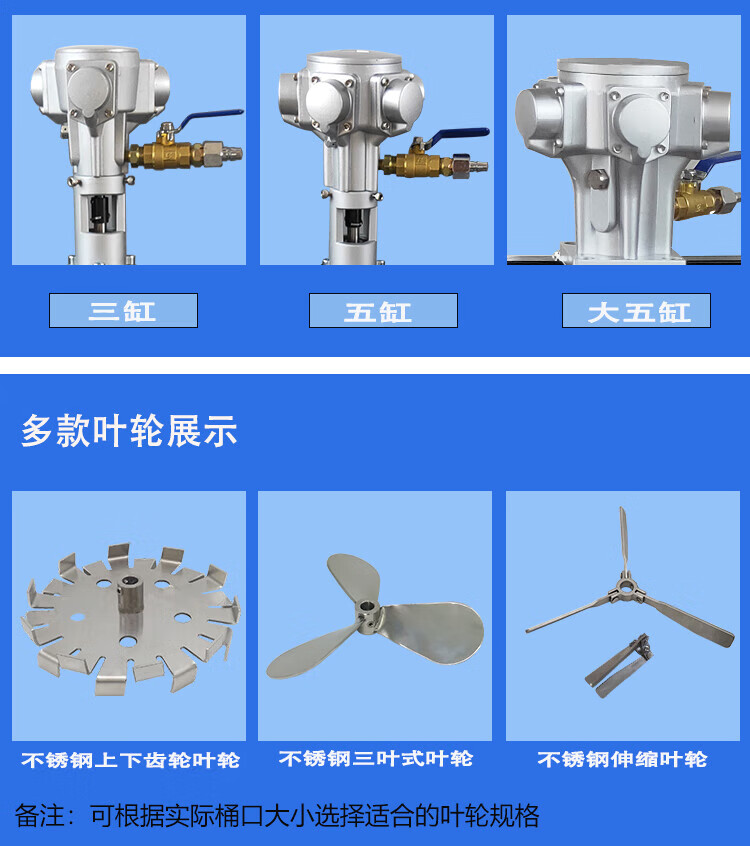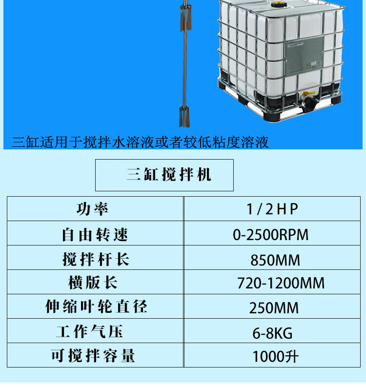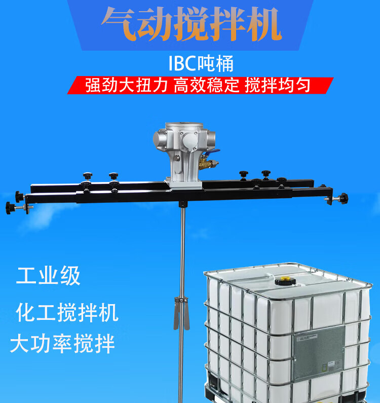Guanrong IBC ton barrel pneumatic mixer 1000L paint coating large five-cylinder ton barrel with reducer stainless steel bracket cart model with 1 three-blade impeller