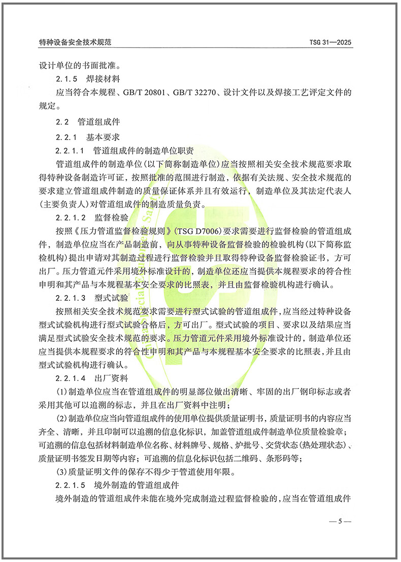 Genuine spot 2025 TSG 31-2025 Industrial Pipeline Safety Technical Regulations replaces TSG D0001-2009 Pressure Pipeline Safety Technical Supervision Industrial Pipeline TSG D7005-2018