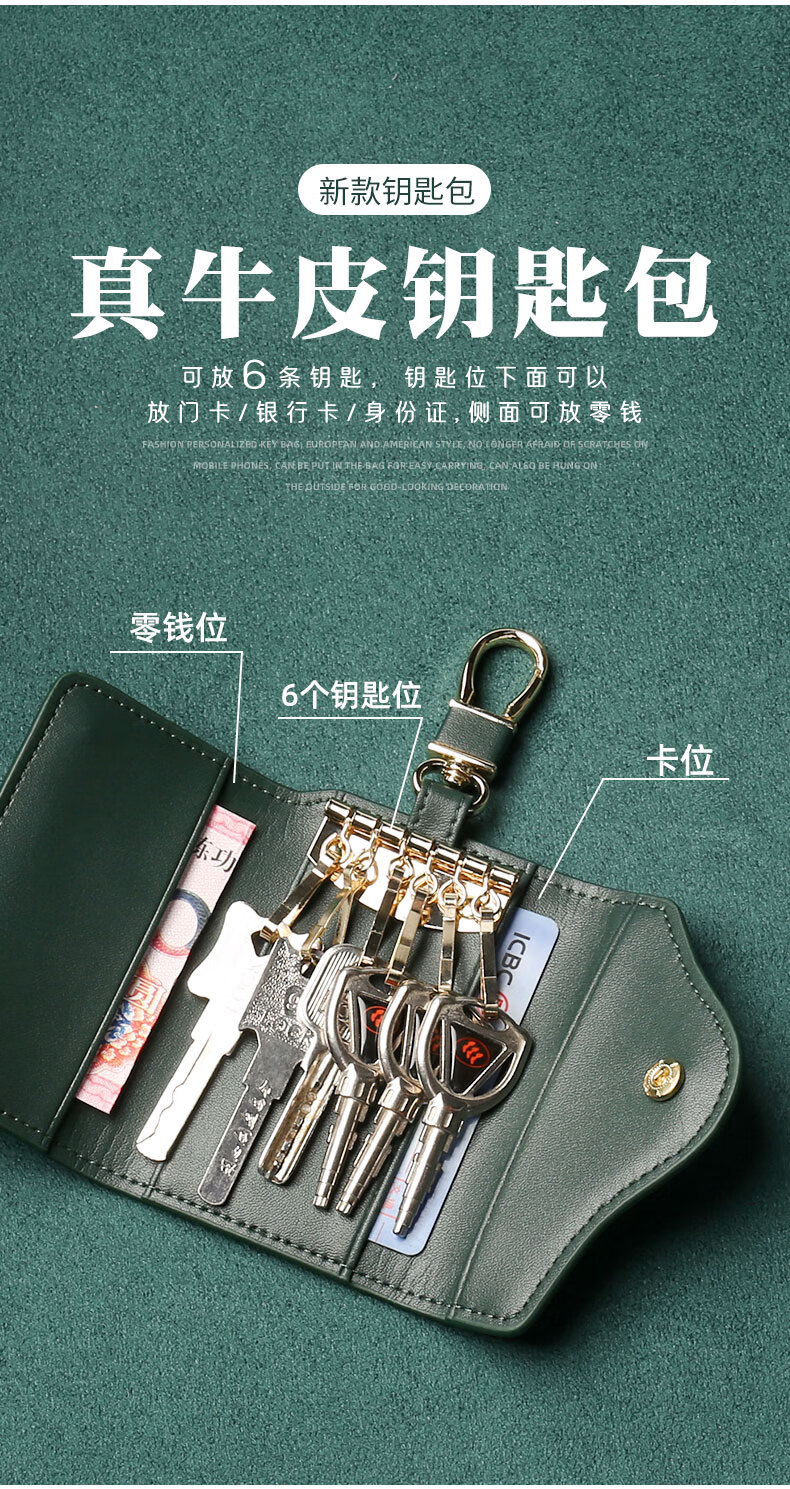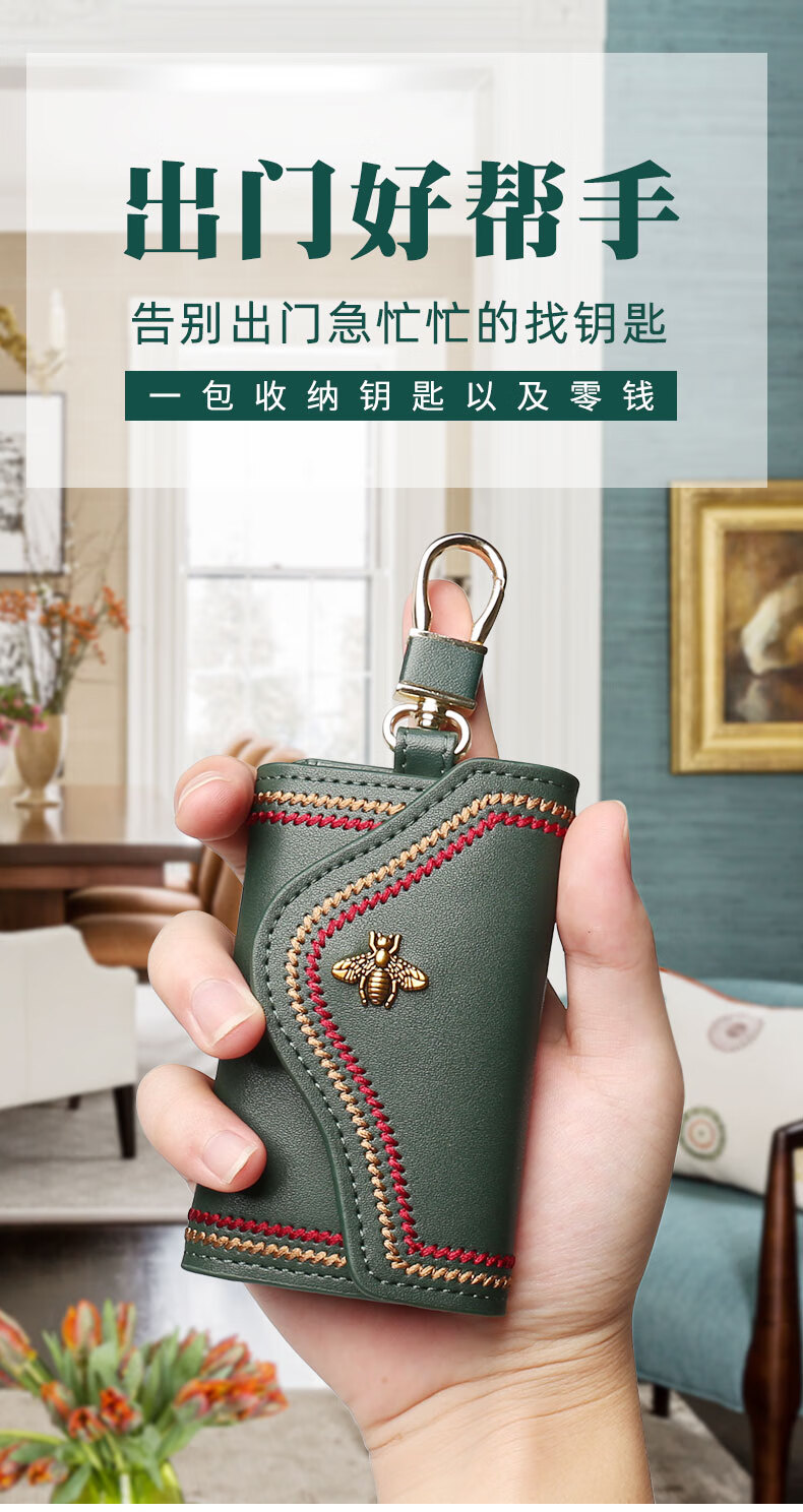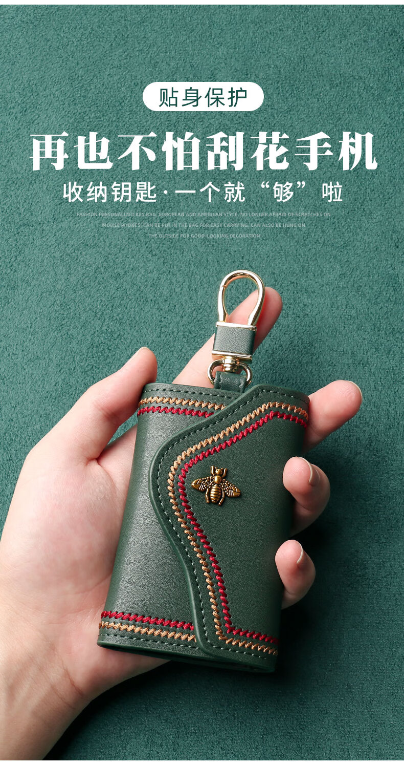 Kangaroo luxury leather key bag card holder two-in-one men and women compact 2025 new Korean mini storage key dark green little bee