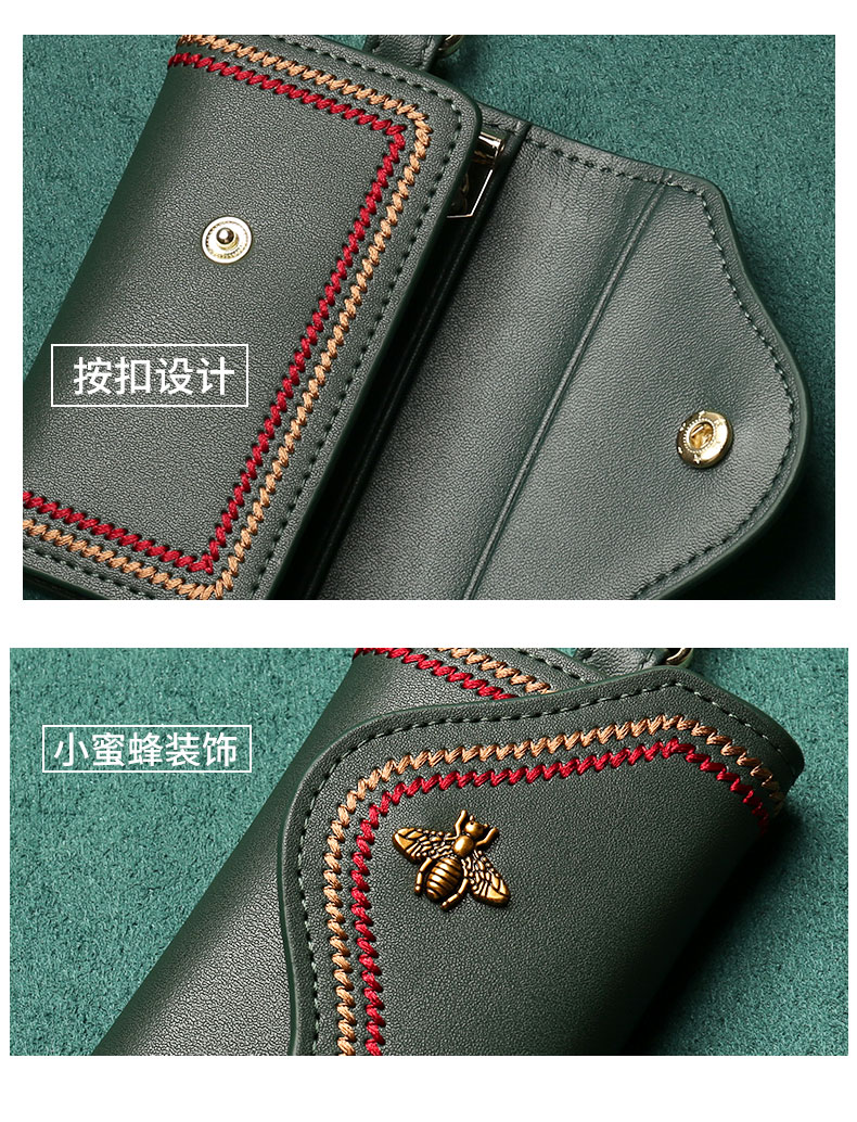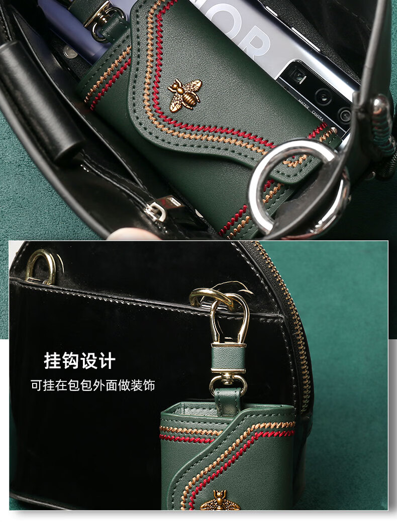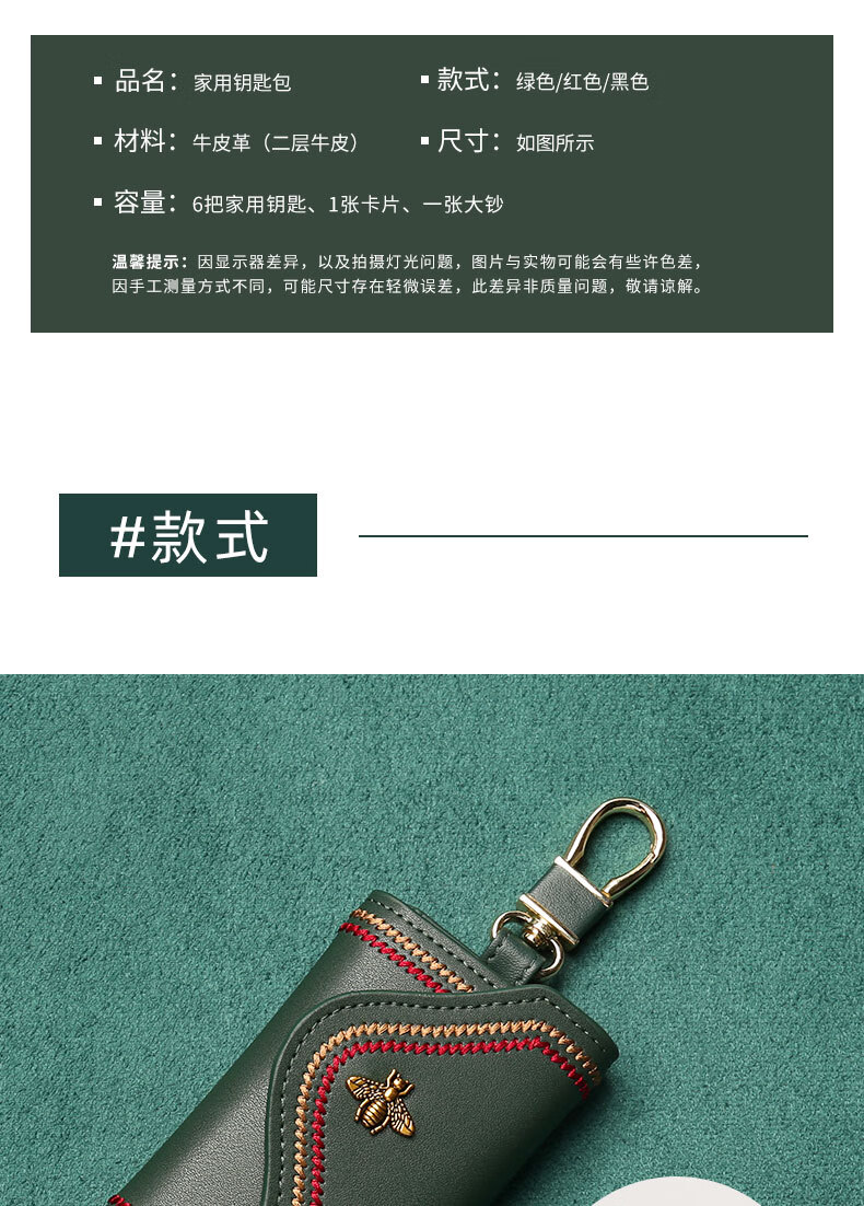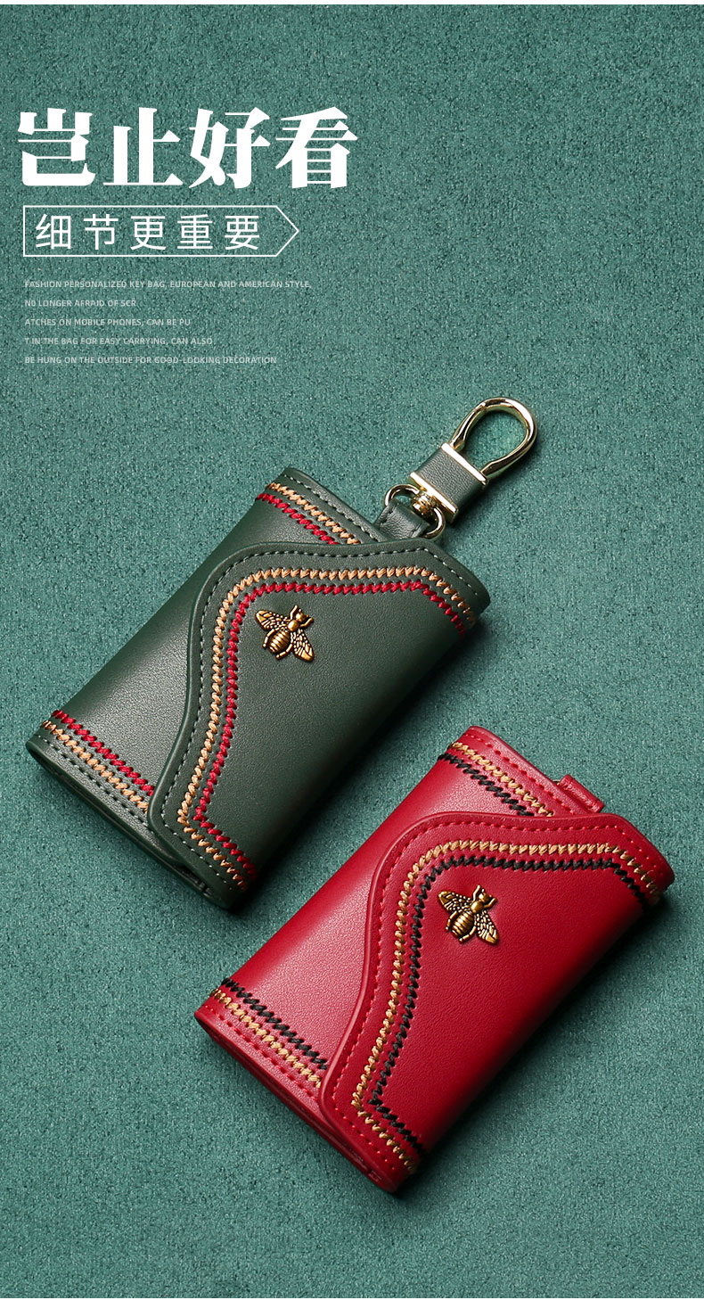 Kangaroo luxury leather key bag card holder two-in-one men and women compact 2025 new Korean mini storage key dark green little bee