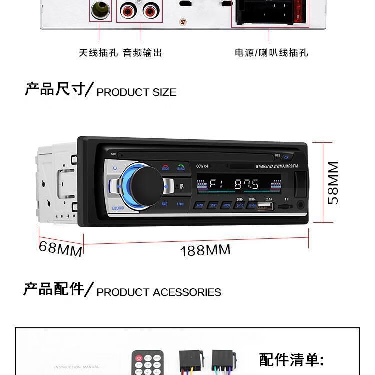 Wuling Rongguang universal 12V car MP3 Bluetooth player plug-in card U disk radio replacement CD audio DVD Wuling Rongguang 6407 lossless modification (with gaps) official standard configuration