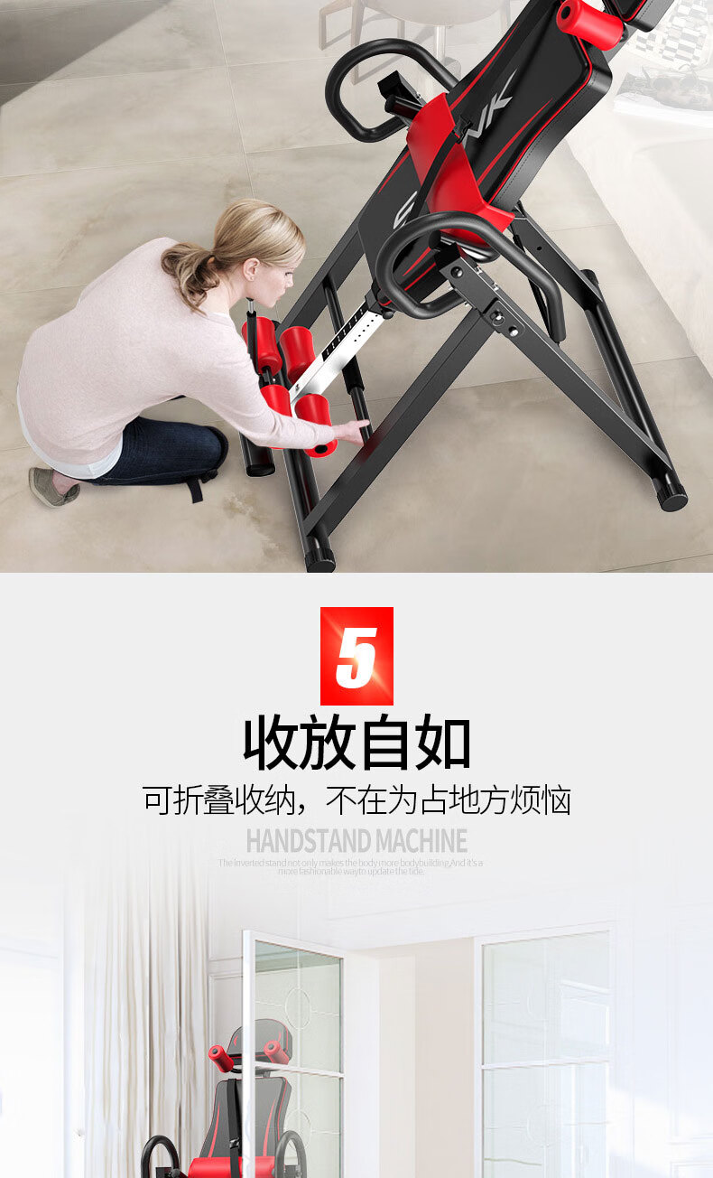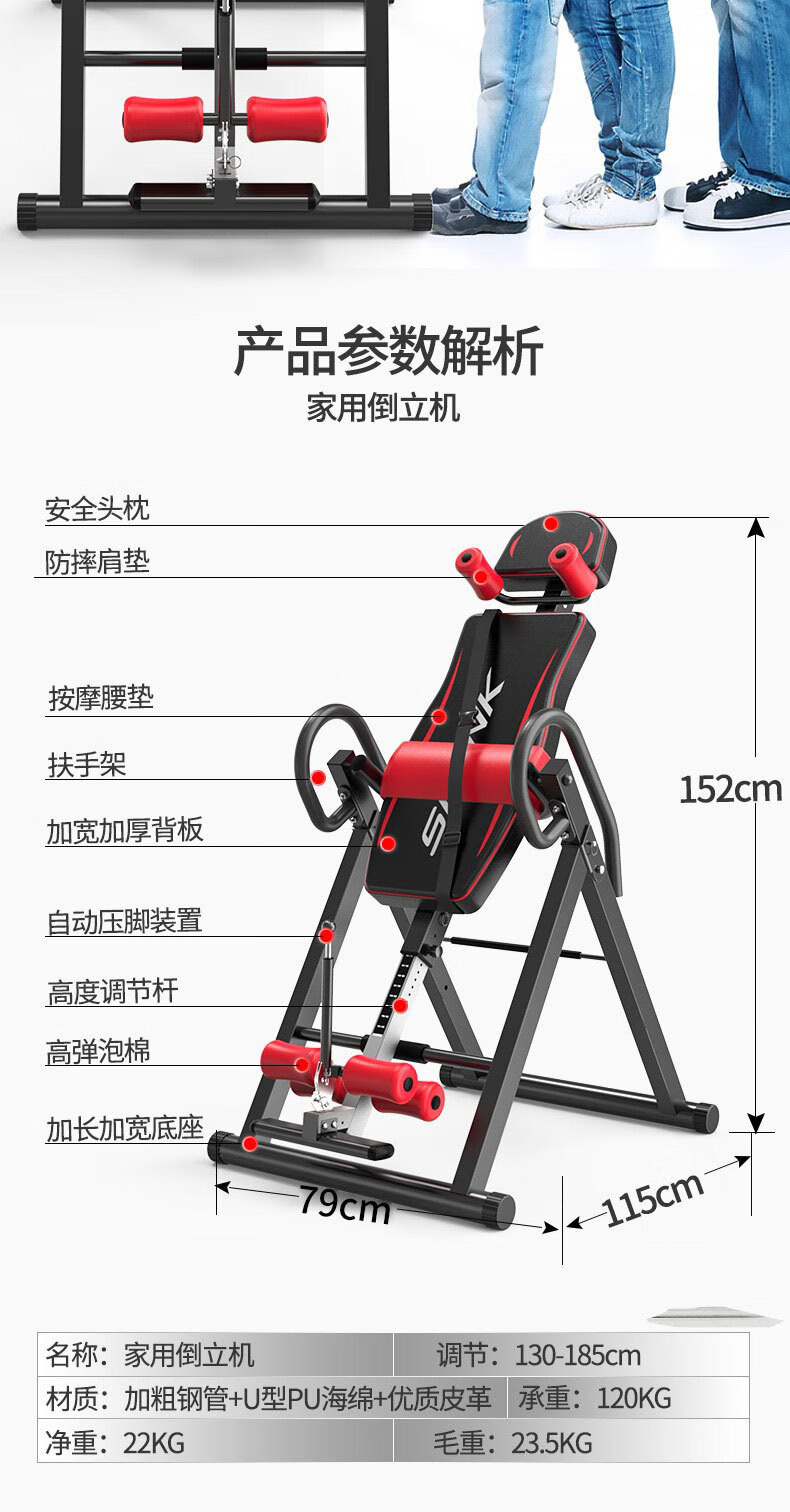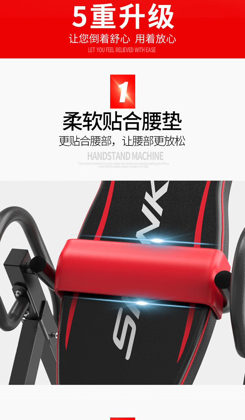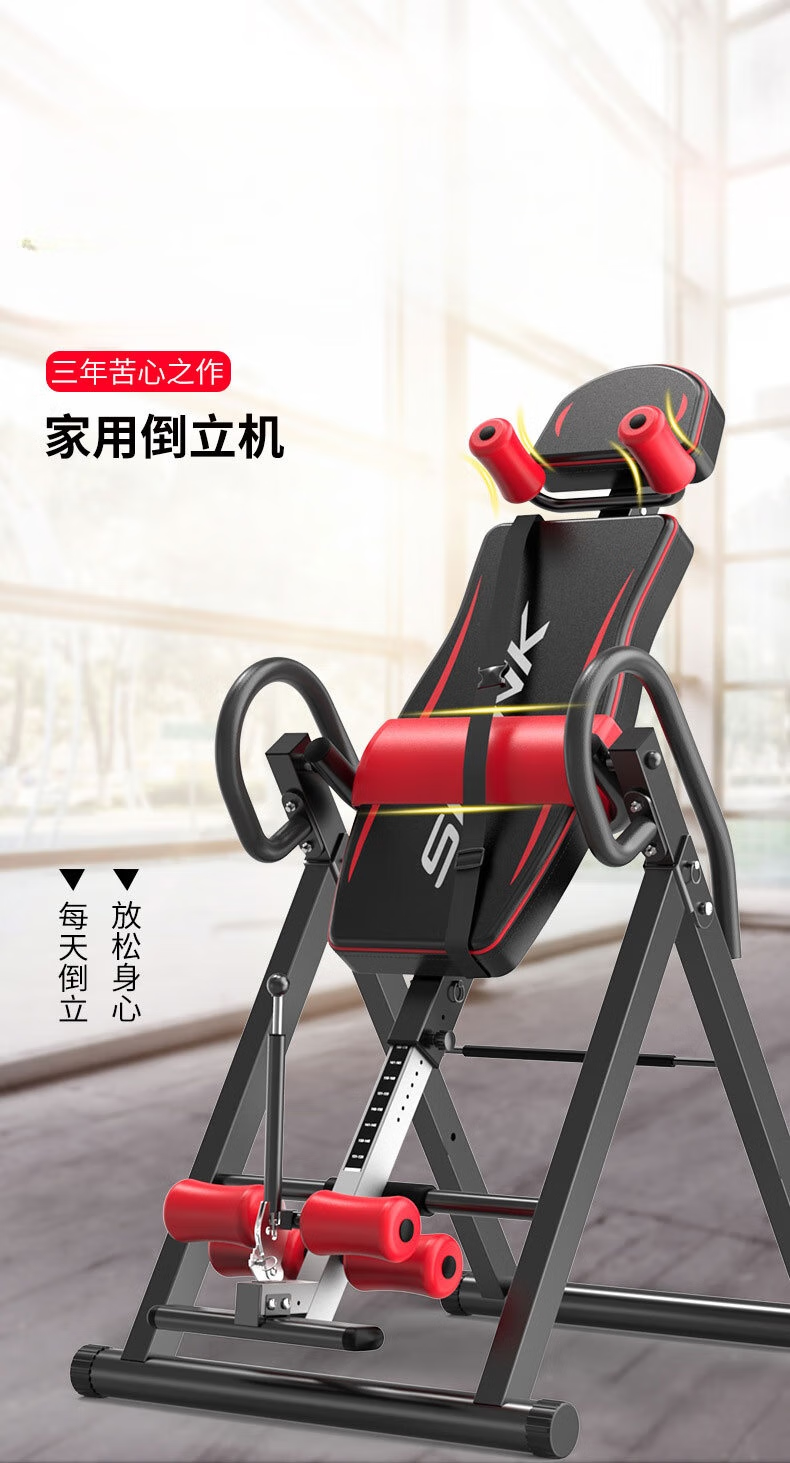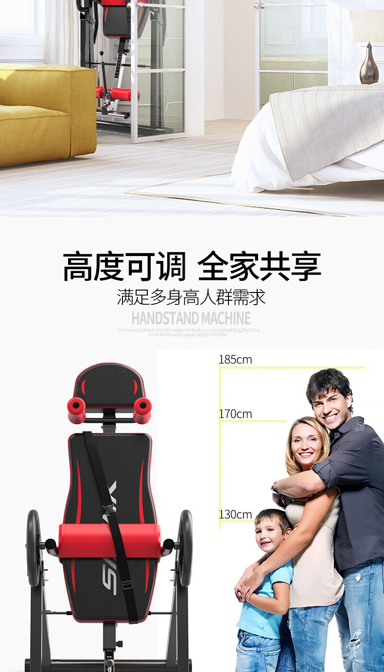 He Jiagong inversion machine auxiliary inversion artifact household inversion artifact inversion machine fitness equipment inversion device flagship model red and black (bold square tube + stable shoulder support丨 memory waist support 1