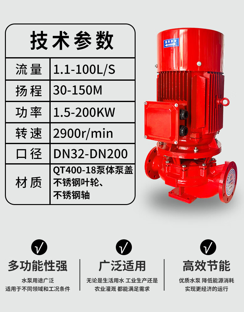 Fire water pump XBD vertical single-stage fire pump booster voltage stabilizing equipment fire hydrant spray pump pipeline centrifugal pump XBD8.0/80W-JXL