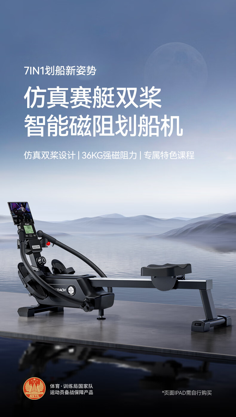 MERACH Super Fat Burning Scull Magnetic Resistance Simulation Rowing Machine Home Fitness Equipment Indoor Intelligent Rowing Machine Scull Simulation Rowing Machine - Black