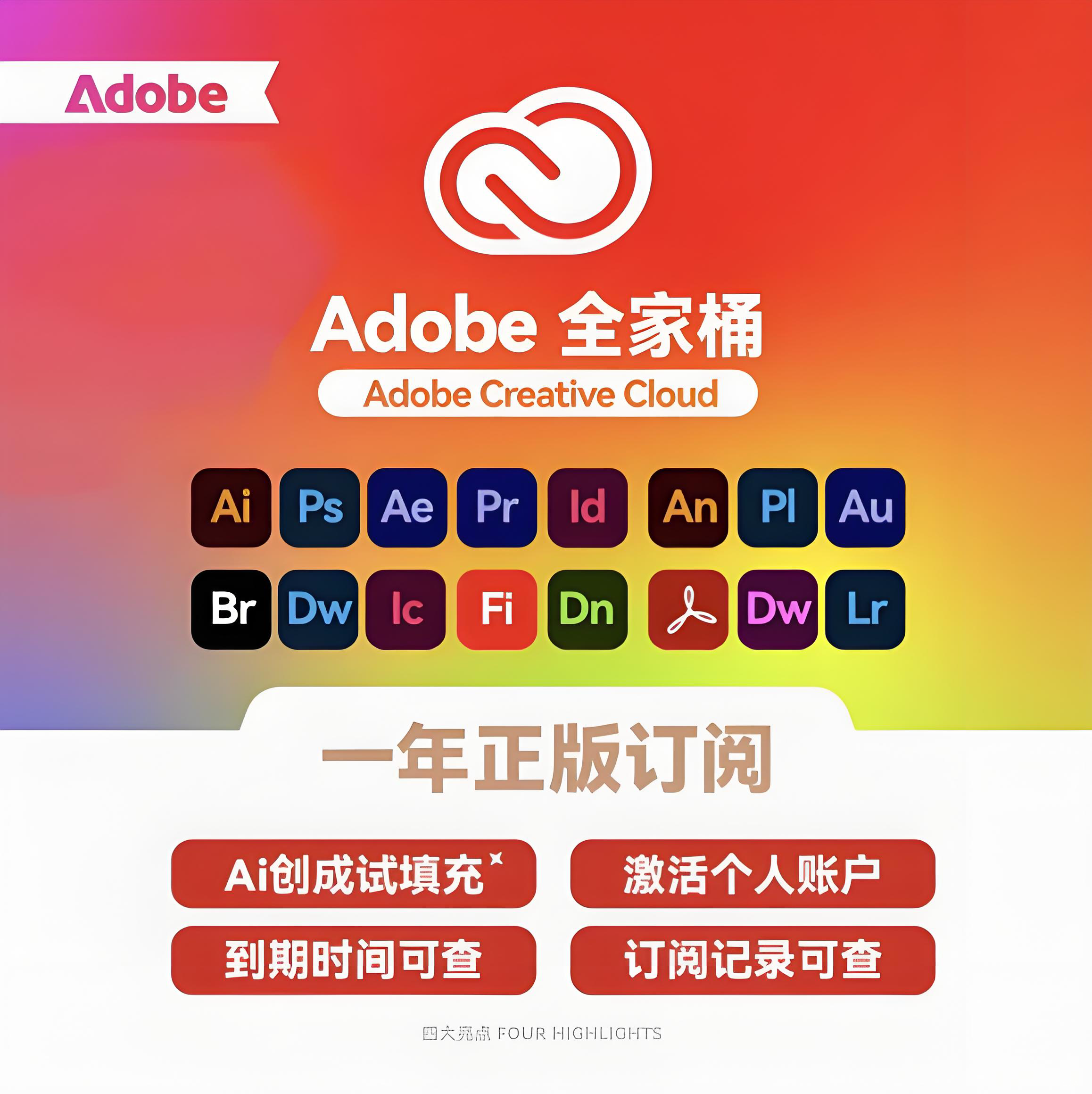 2025 genuine Adobe Creative Cloud Family Bucket software activation subscription PS AI subscription annual fee Family Bucket subscription one year