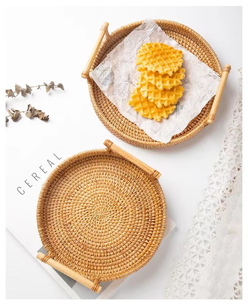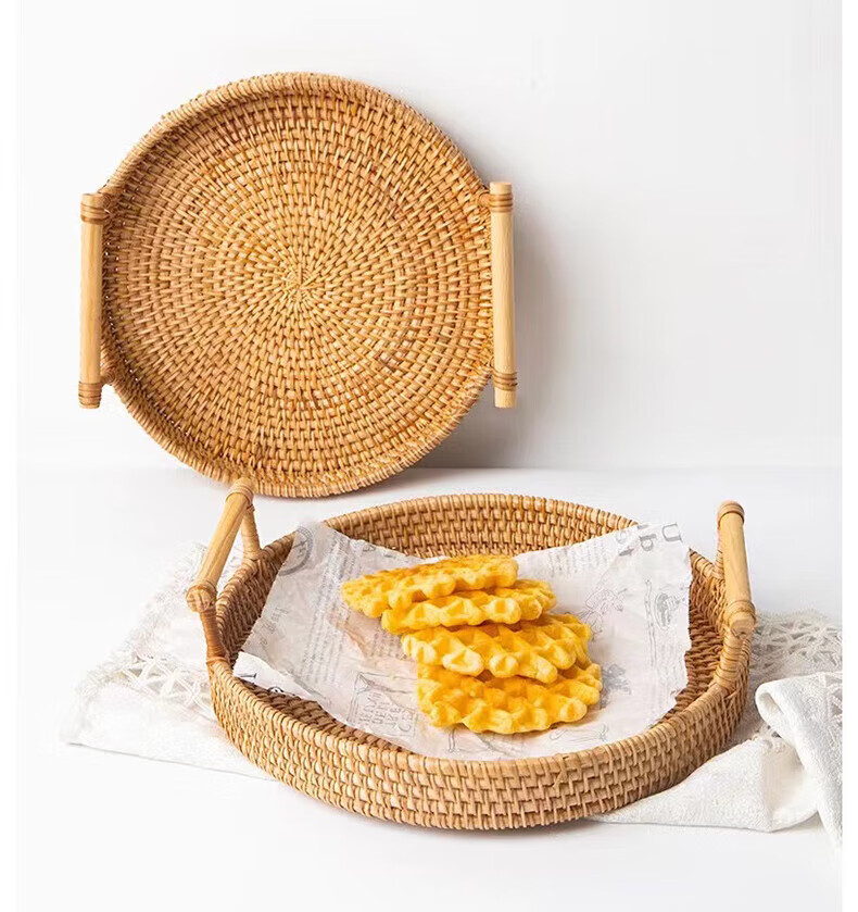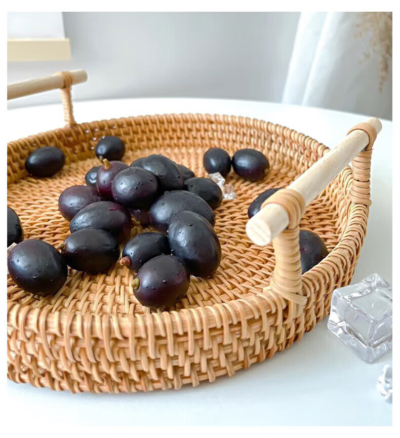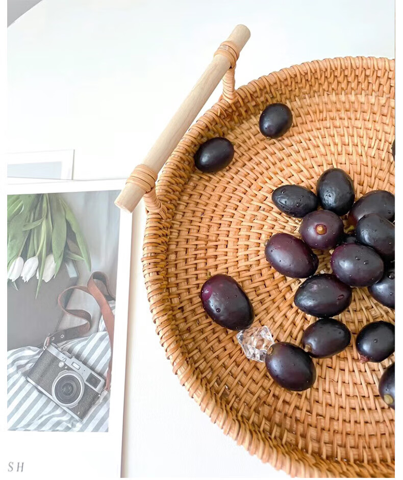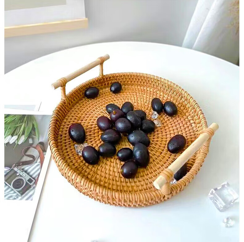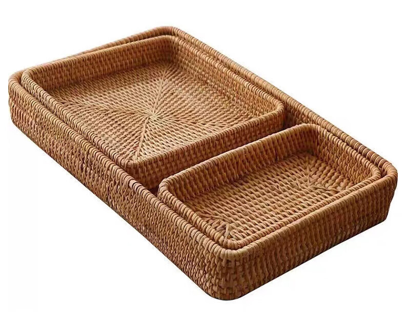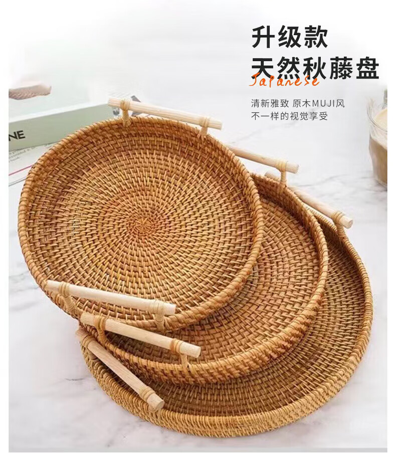 CLCEY rattan storage basket bamboo fruit plate Japanese bread basket steamed bread basket living room fruit basket household handmade tray multi-purpose storage three-piece set