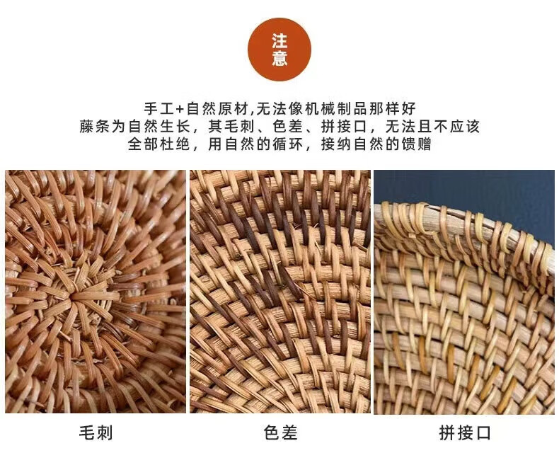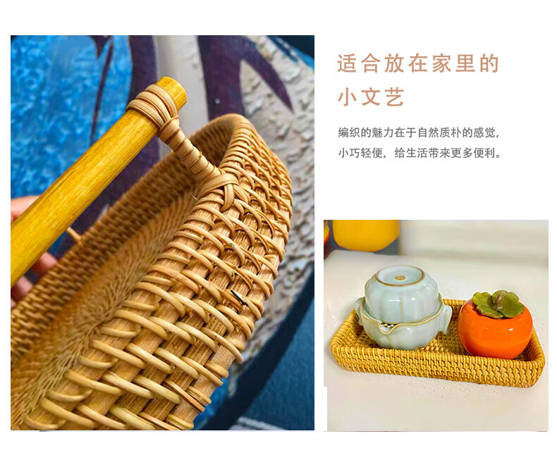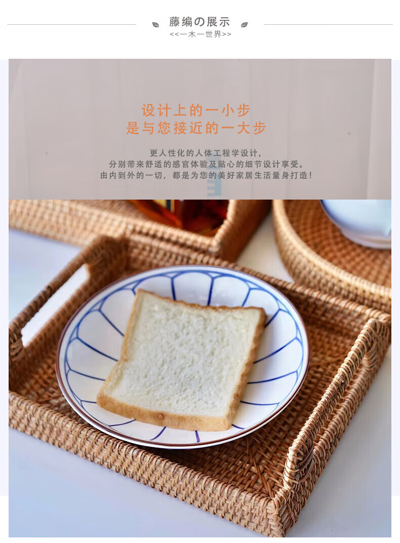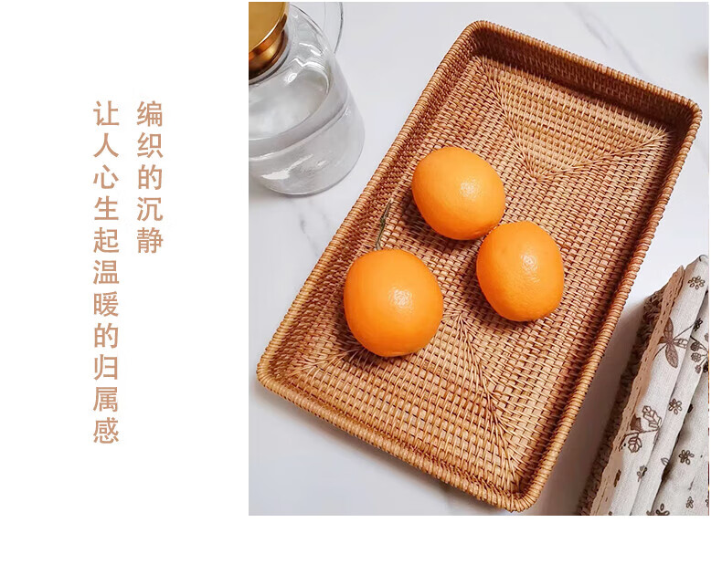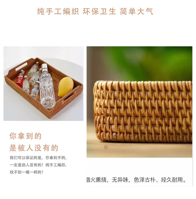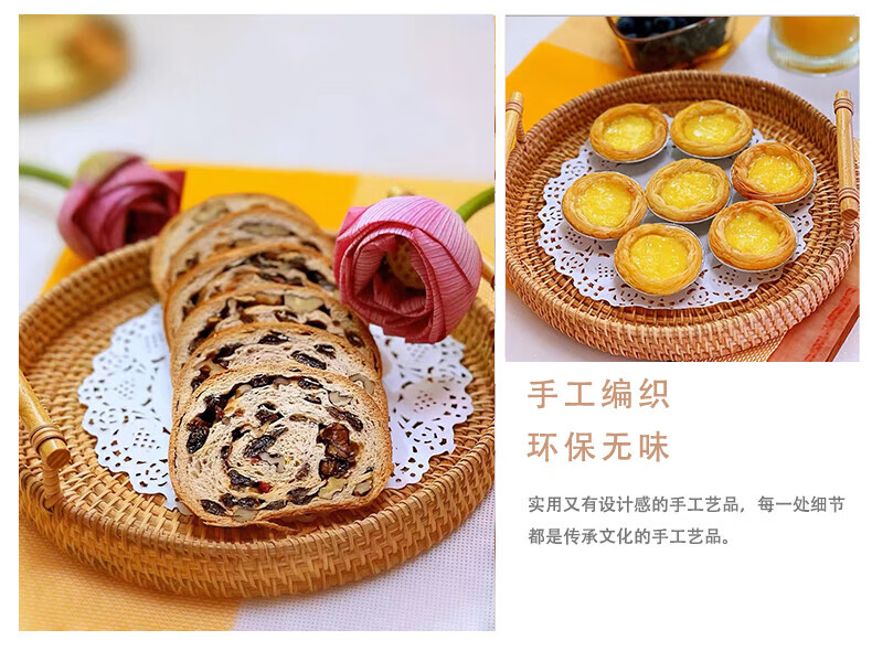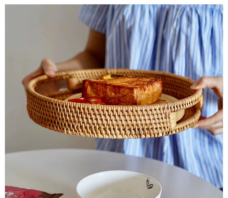 CLCEY rattan storage basket bamboo fruit plate Japanese bread basket steamed bread basket living room fruit basket household handmade tray multi-purpose storage three-piece set