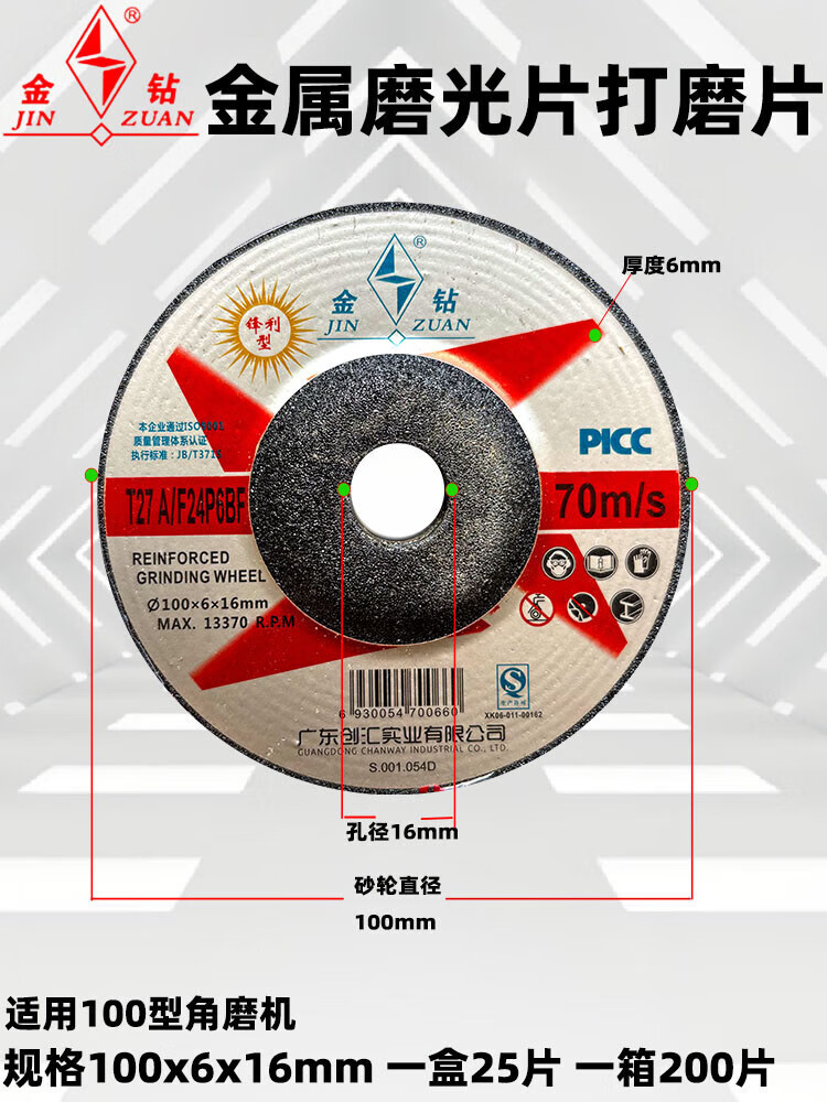 Gold diamond polishing disc, resin grinding wheel disc, angle grinding disc, grinding disc *16mm, special for angle grinder, gold diamond polishing disc 100*6*16 (50 pieces)