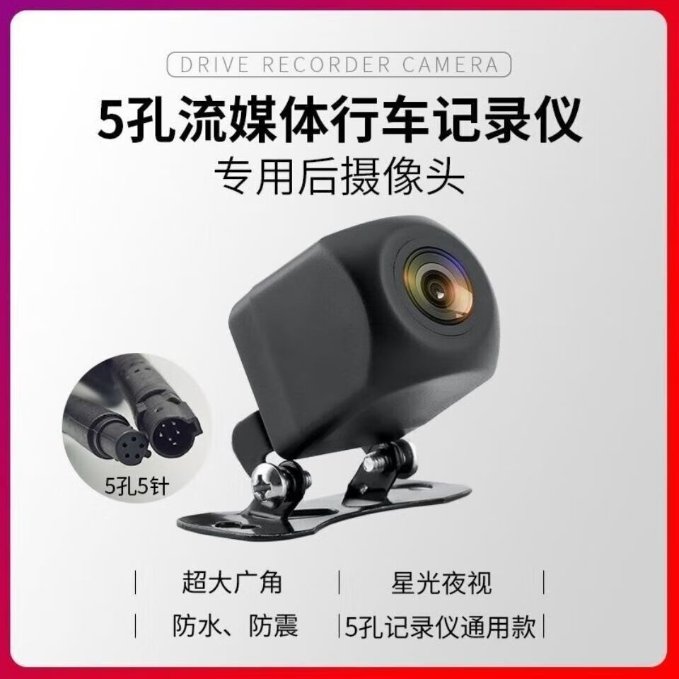 Universal car 5-hole streaming media recorder rear camera starlight night vision HD night vision waterproof reversing image 5-hole streaming media rear camera without video cable