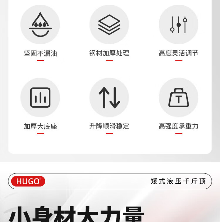 HUGO low jack vertical hydraulic transverse hydraulic 10/20T low jack manual hydraulic car jack 3.2T self height 16.8cm