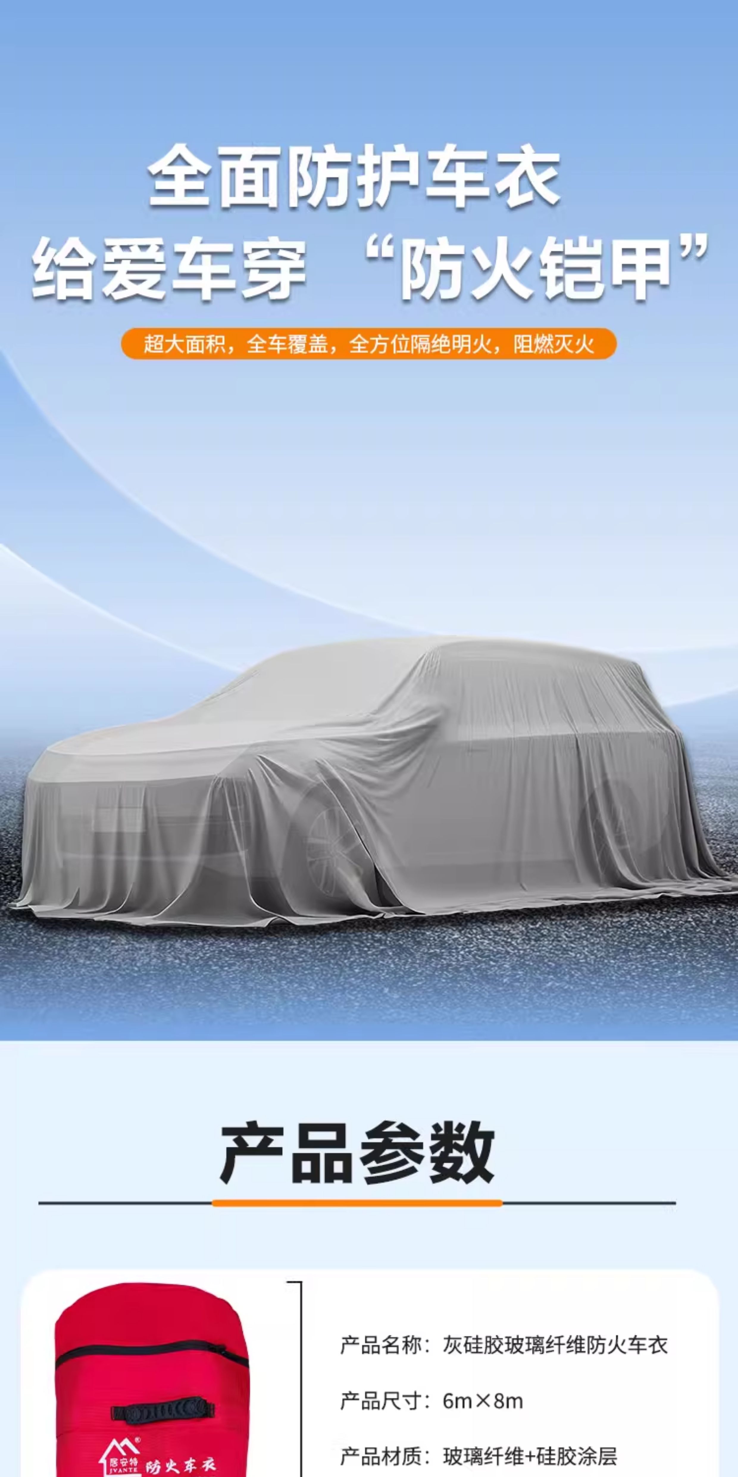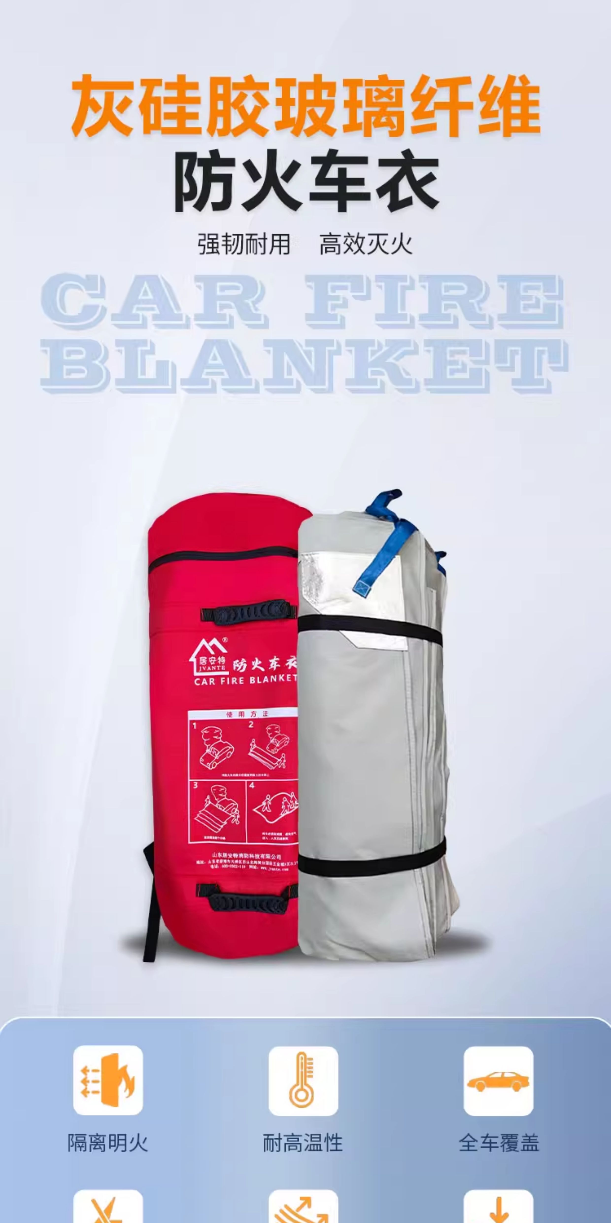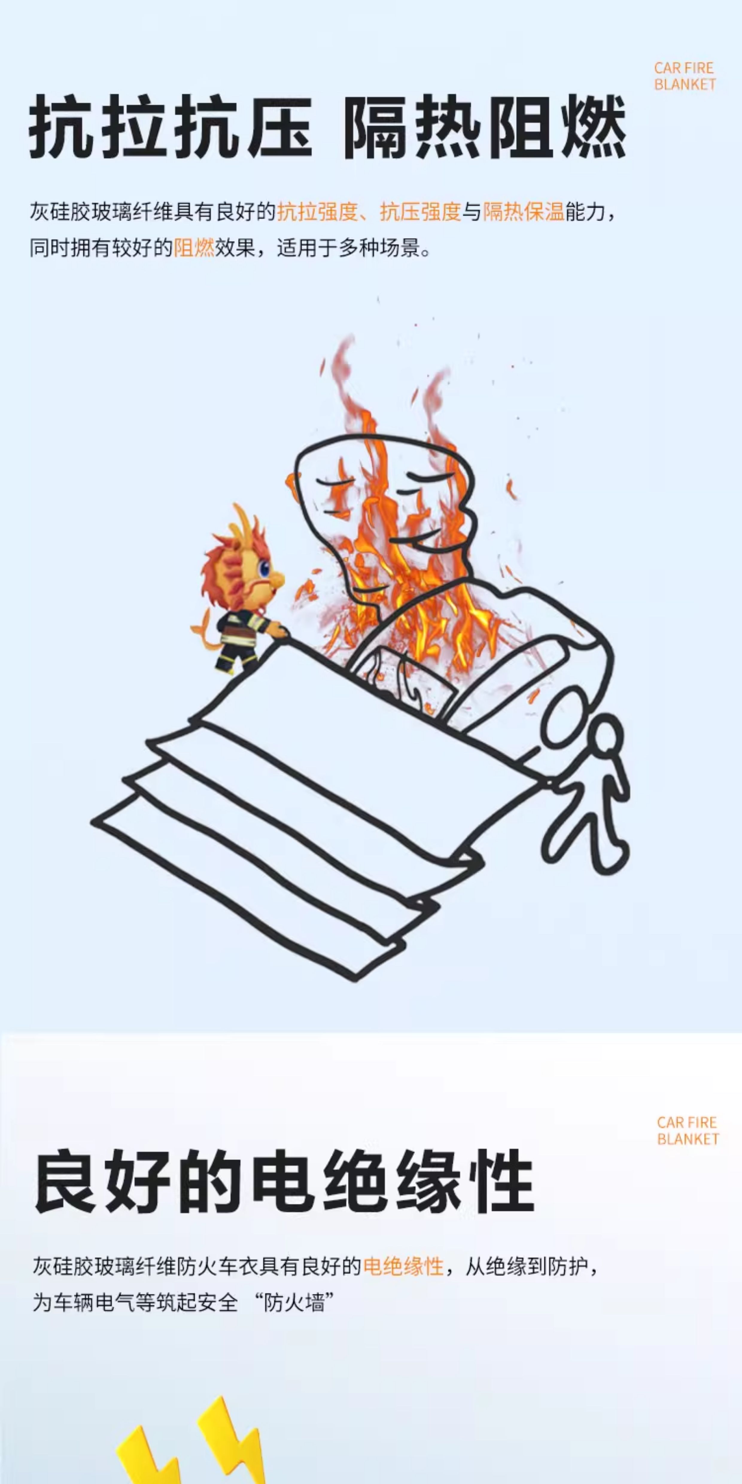 Ju'ant high temperature resistant thickened gray silicone fire extinguishing blanket anti-train jacket new energy vehicle special high silica carbon fiber car jacket gray silicone 6*8m