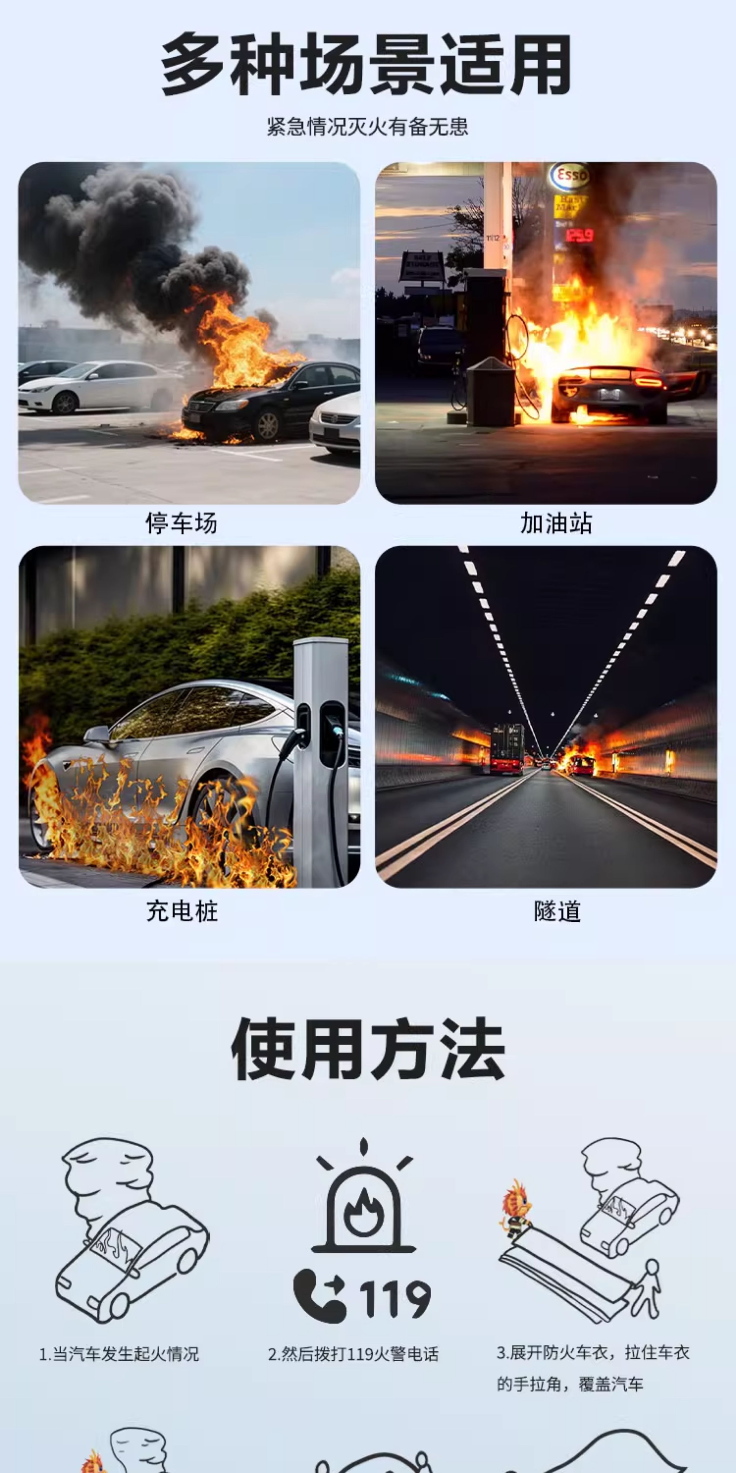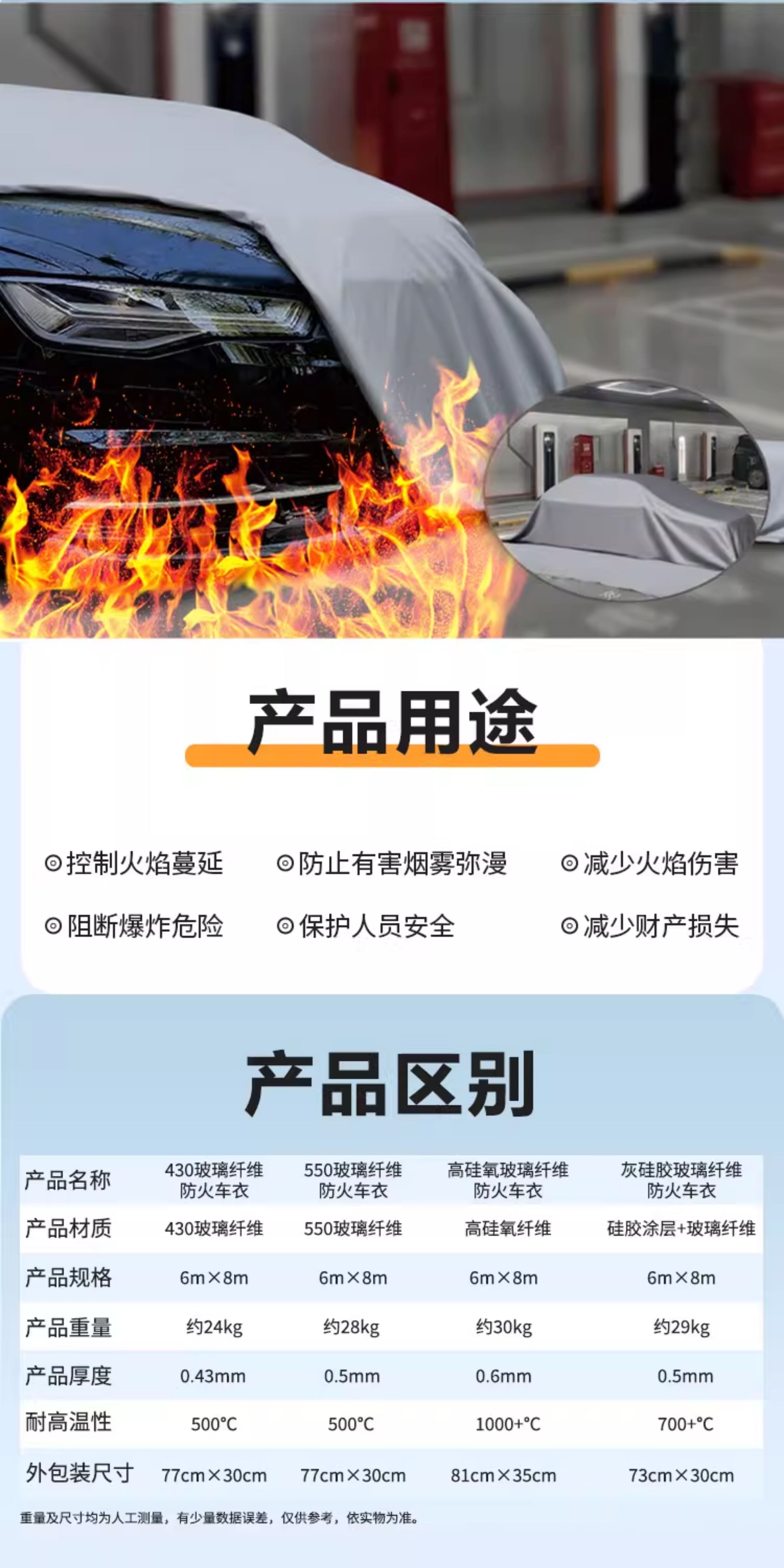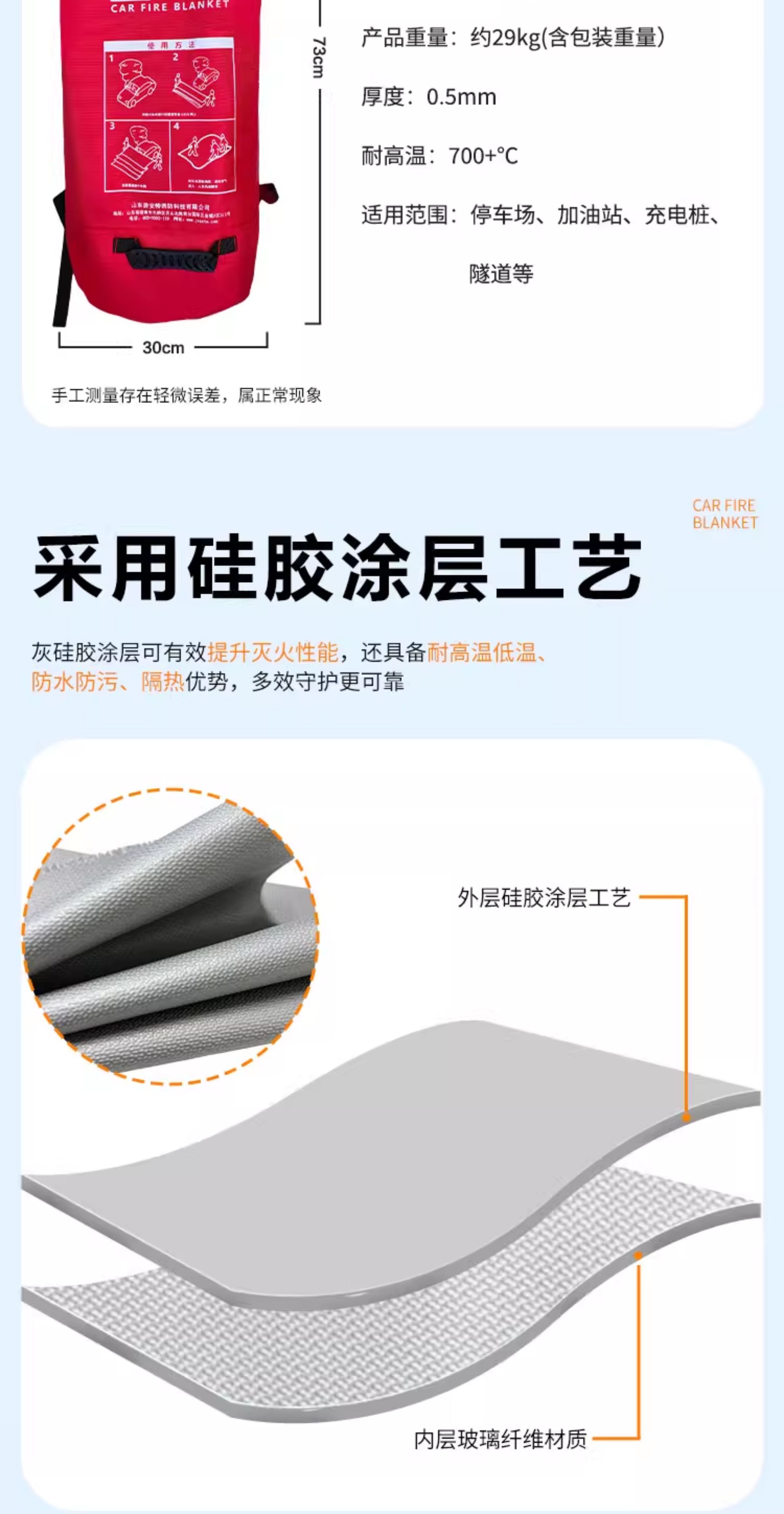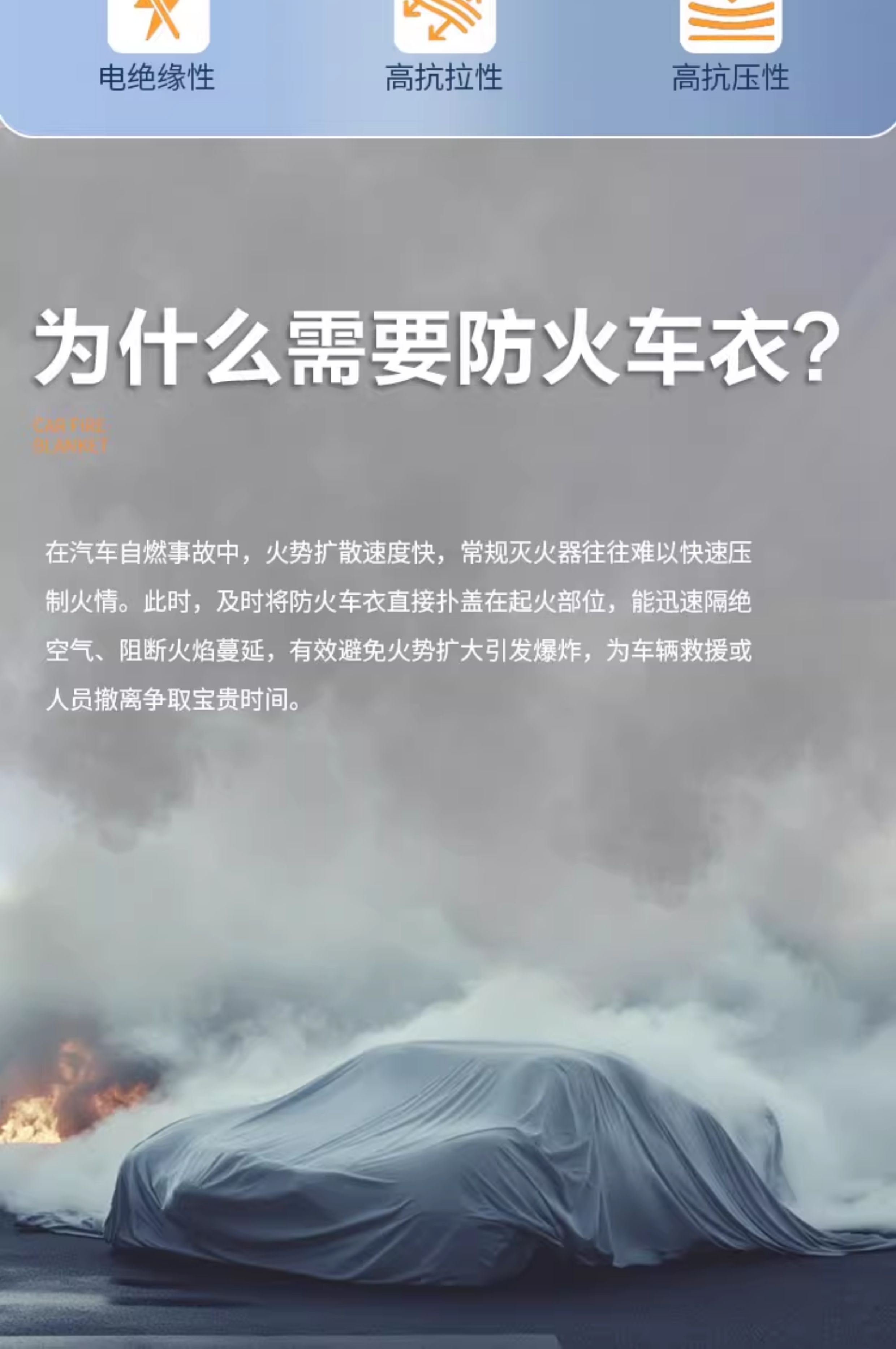 Ju'ant high temperature resistant thickened gray silicone fire extinguishing blanket anti-train jacket new energy vehicle special high silica carbon fiber car jacket gray silicone 6*8m