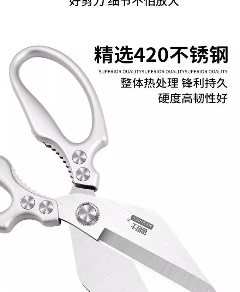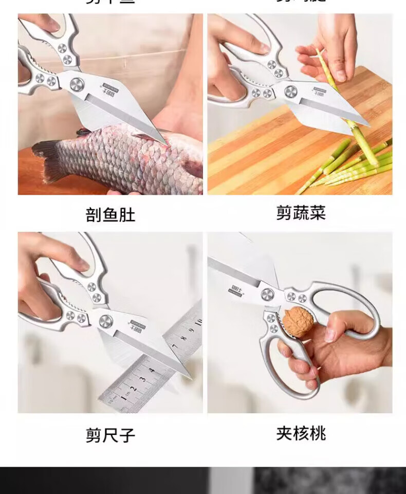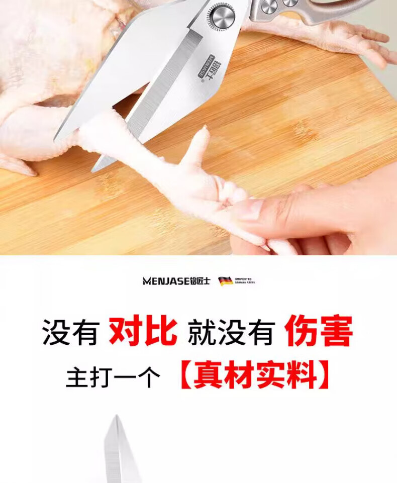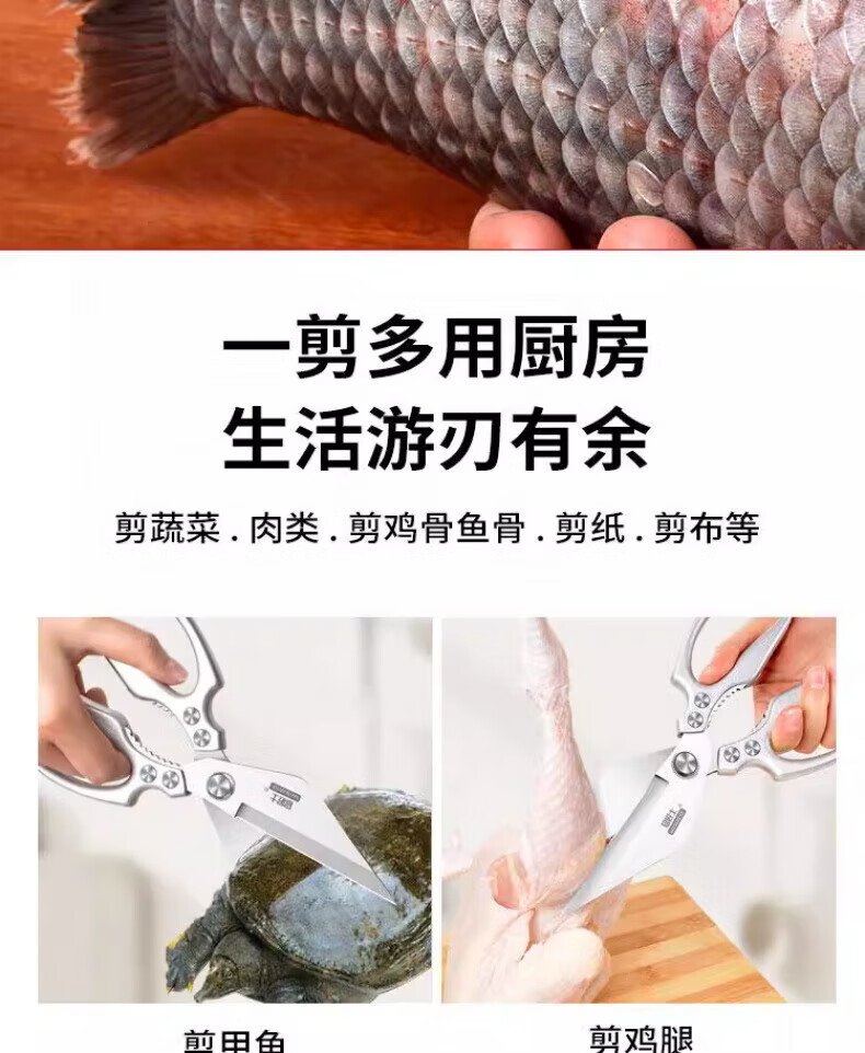 JCZS German large-head labor-saving stainless steel new kitchen scissors for chicken, fish, broiler and chicken bones, strong household kitchen scissors 2025 new large-head powerful kitchen scissors, all metal