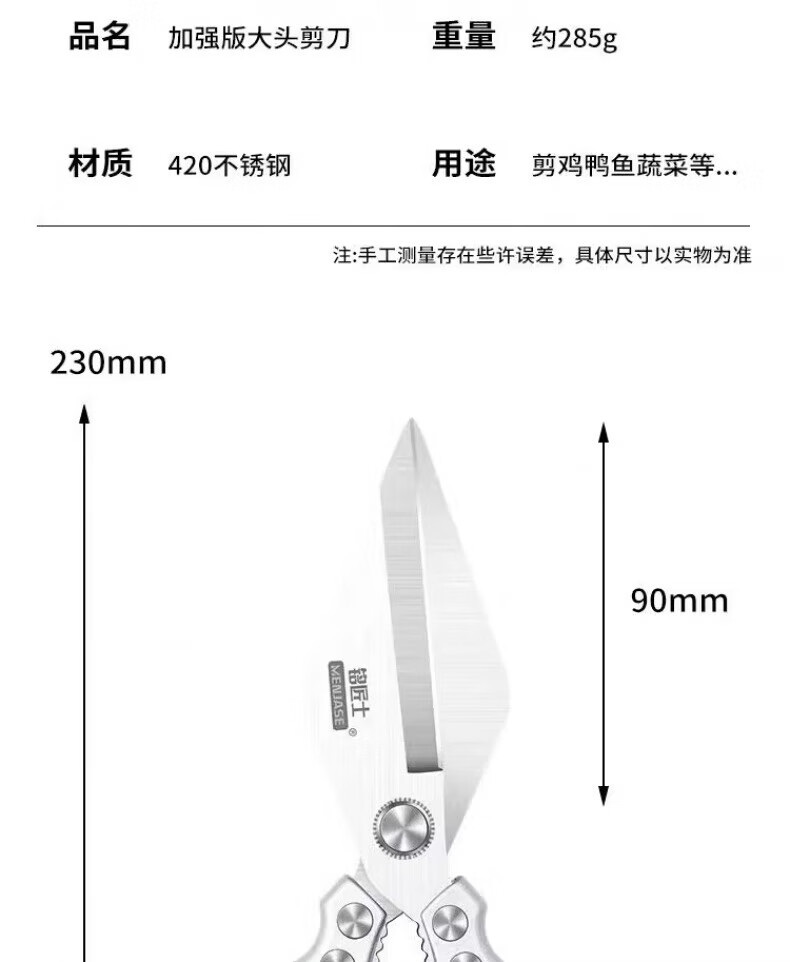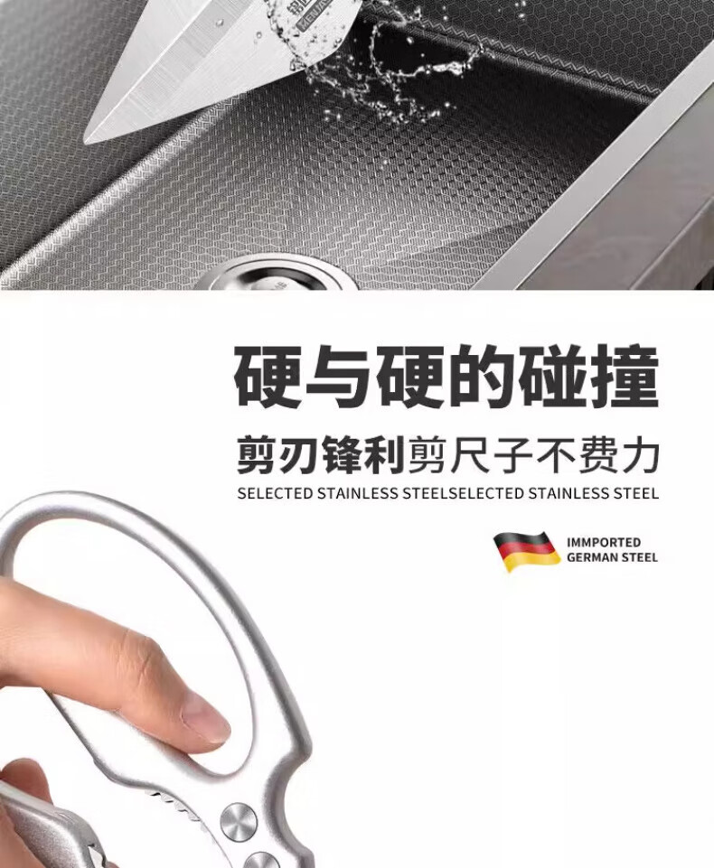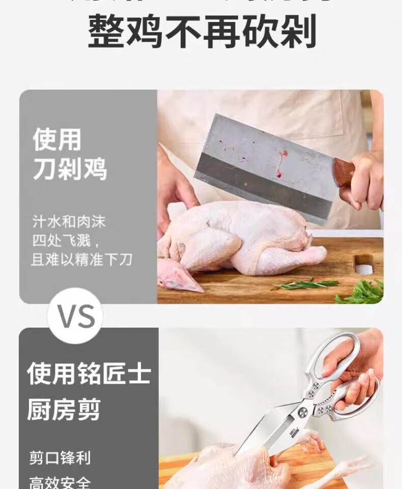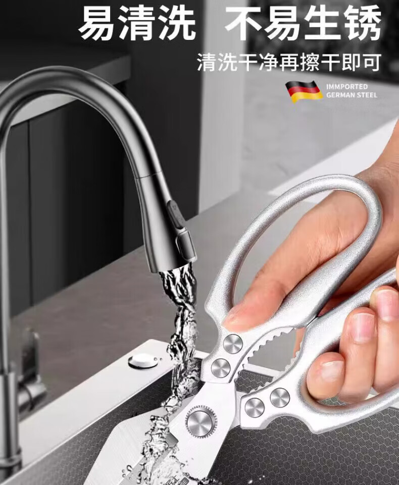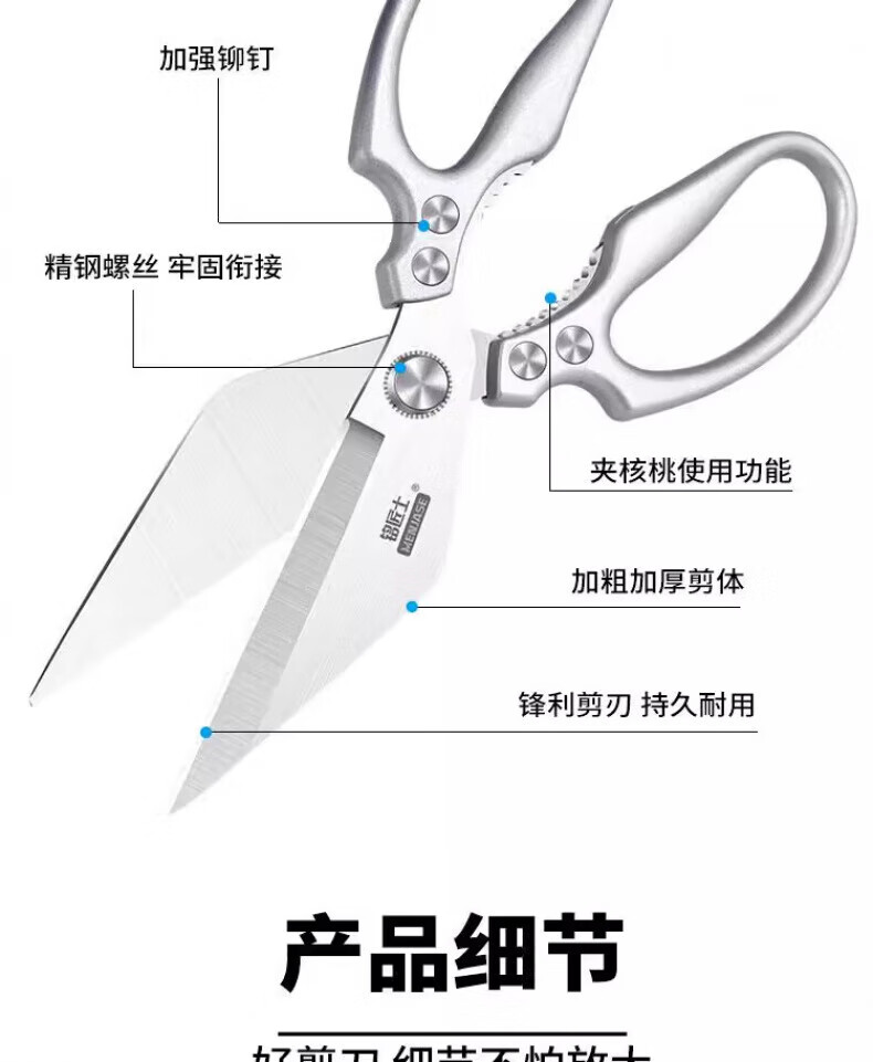 JCZS German large-head labor-saving stainless steel new kitchen scissors for chicken, fish, broiler and chicken bones, strong household kitchen scissors 2025 new large-head powerful kitchen scissors, all metal