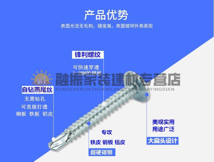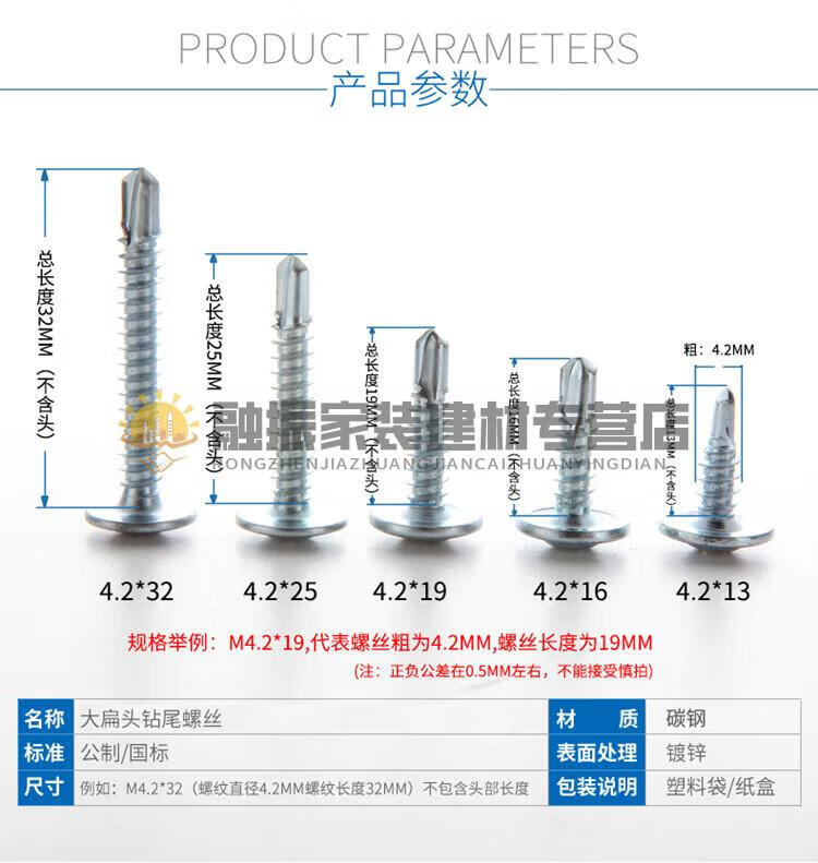 Jingeyu national standard cross large flat head drill tail wire self-tapping self-drilling dovetail nail screw large round head washer screw M4.2SN27 4.2*50 50 catties about 6300 bits