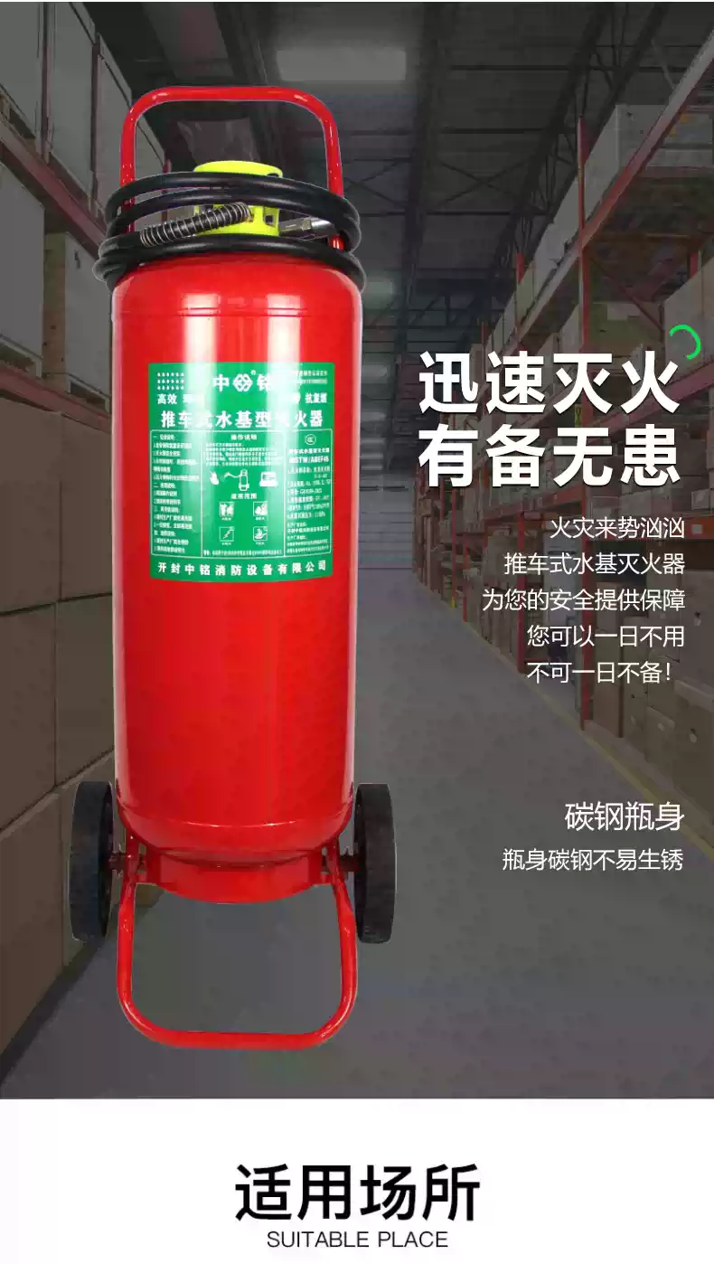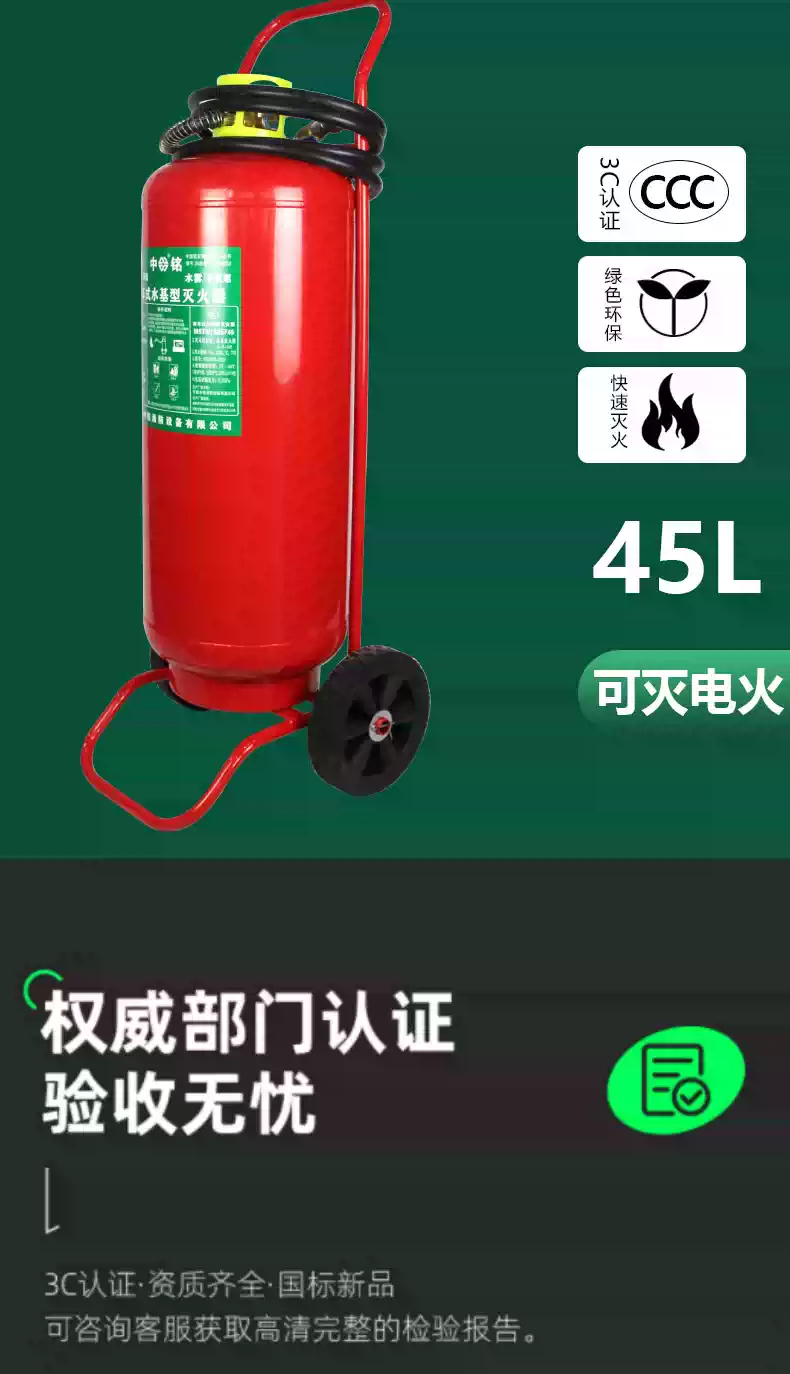 Water-based trolley-type fire extinguisher MSTZ25L/45L65L low-temperature antifreeze water system fire extinguishing fire charging pile 45L water-based green bottle 2024 December date