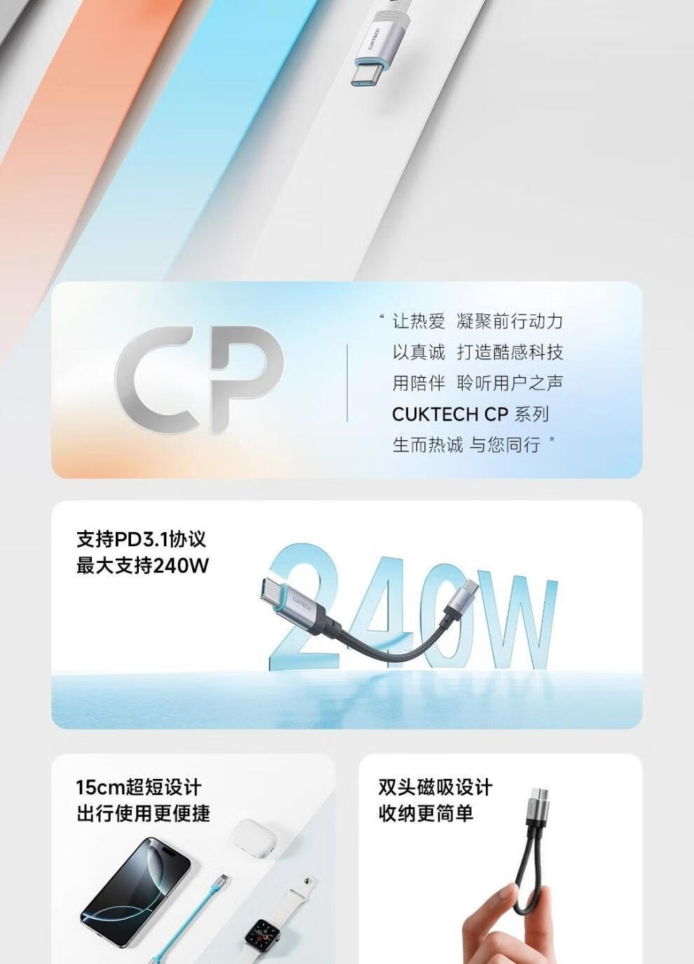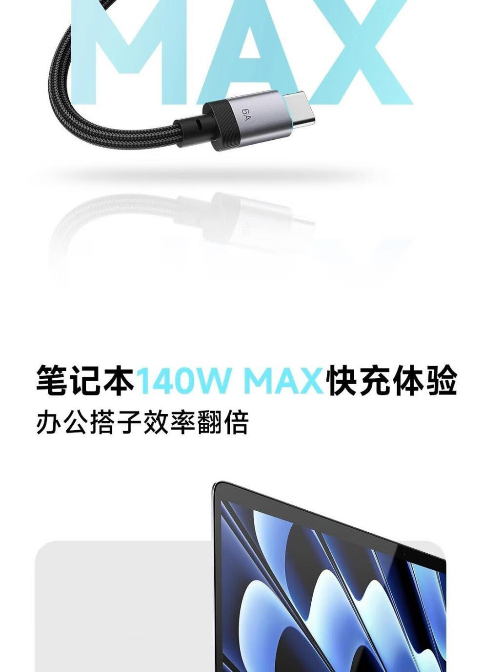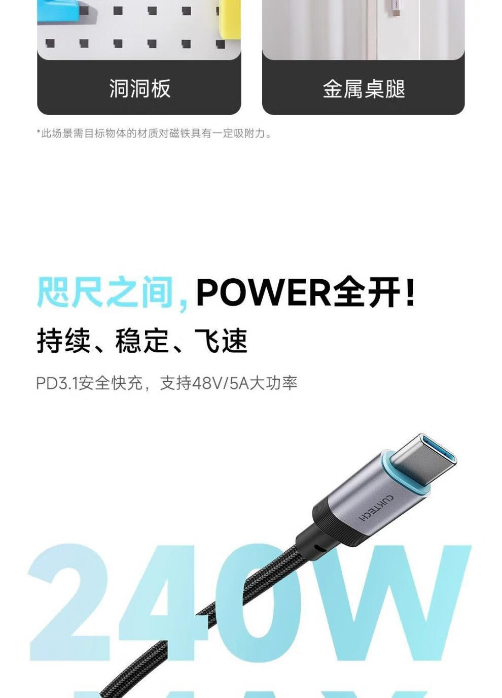 CUKTECH 240W data cable 6A fast charging cable magnetic cable suitable for Apple 16 Xiaomi Huawei magnetic port + 48 spindle braid + 6A high power one pack black